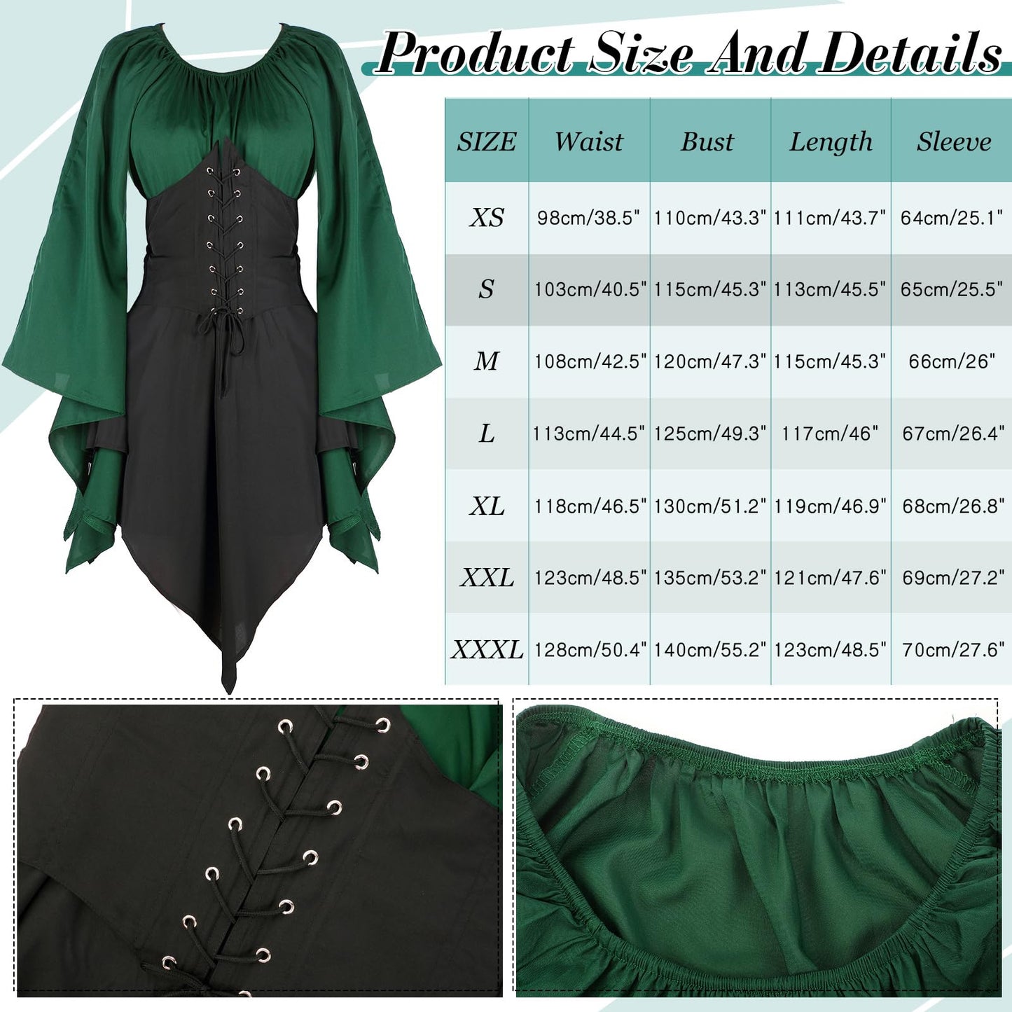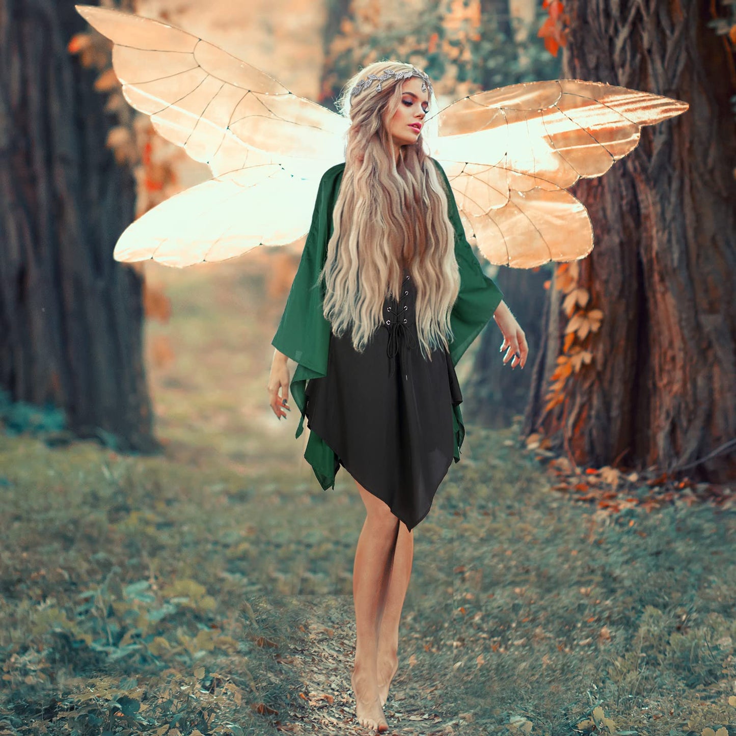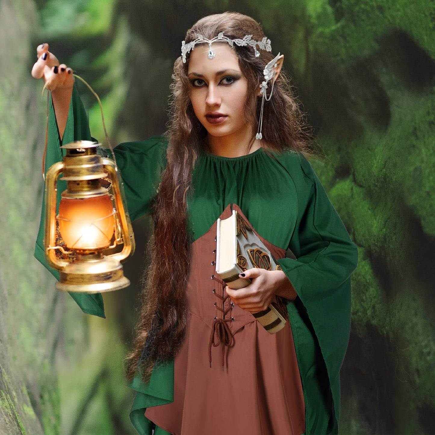 4 Pcs Women Elf Costume Renaissance Traditional Irish Dress Fairy Costume Elf Ear Cuffs for Women Halloween Cosplay Party Green, Brown 2X-Large