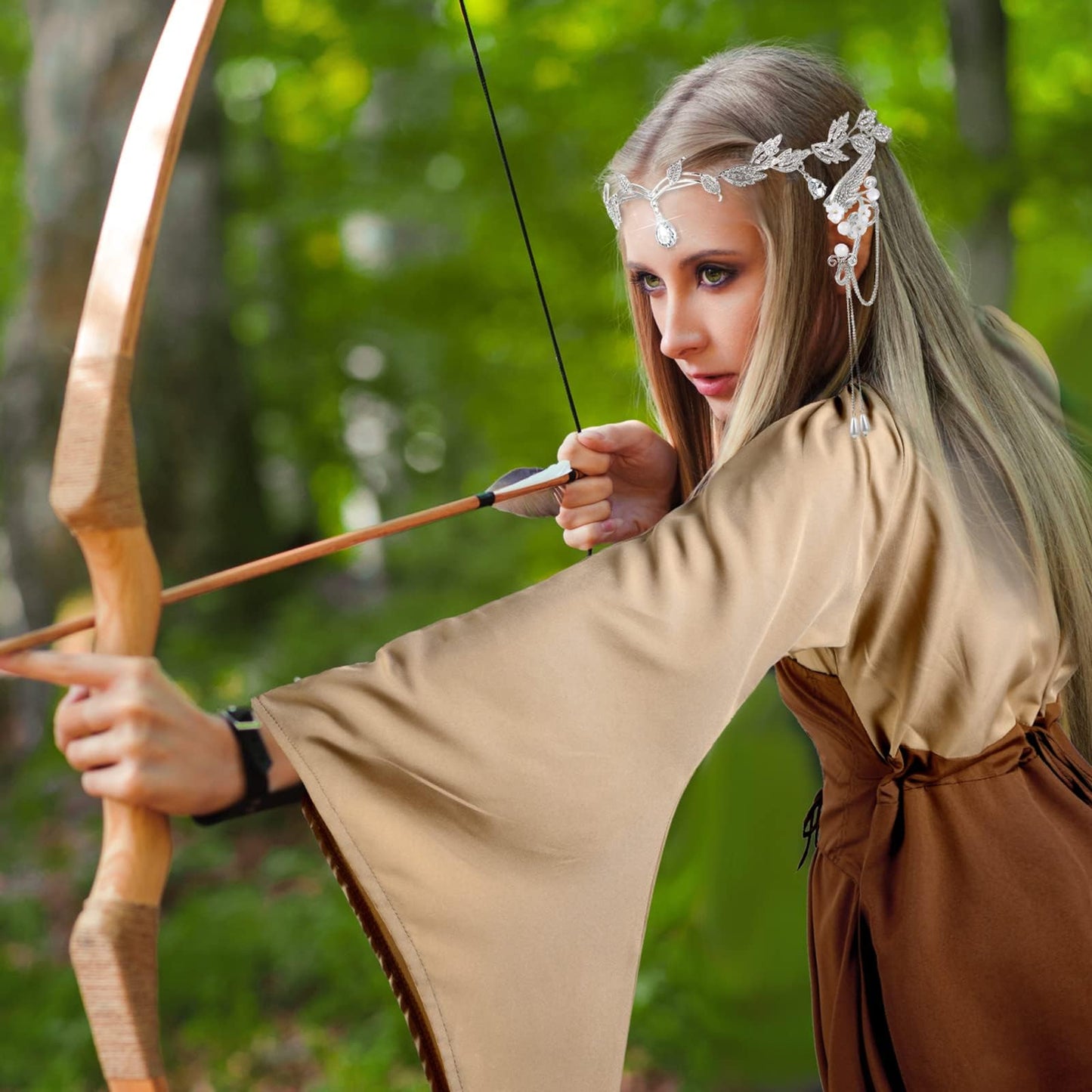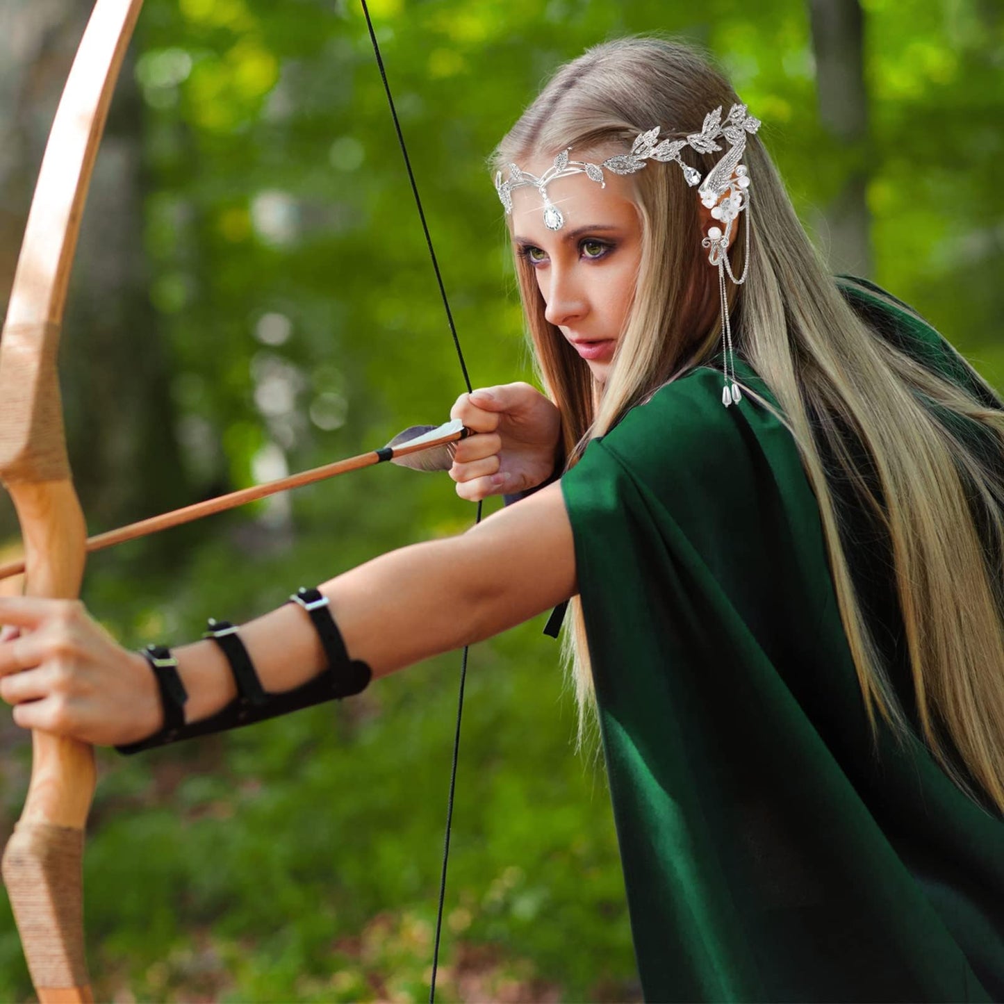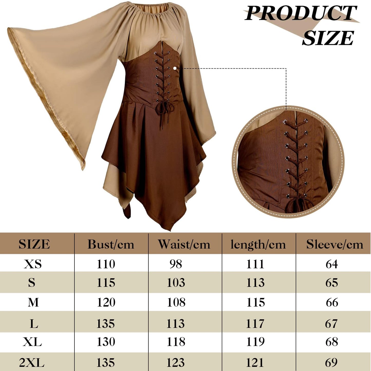 4 Pcs Women Elf Costume Renaissance Traditional Irish Dress Fairy Costume Elf Ear Cuffs for Women Halloween Cosplay Party Green, Brown 2X-Large