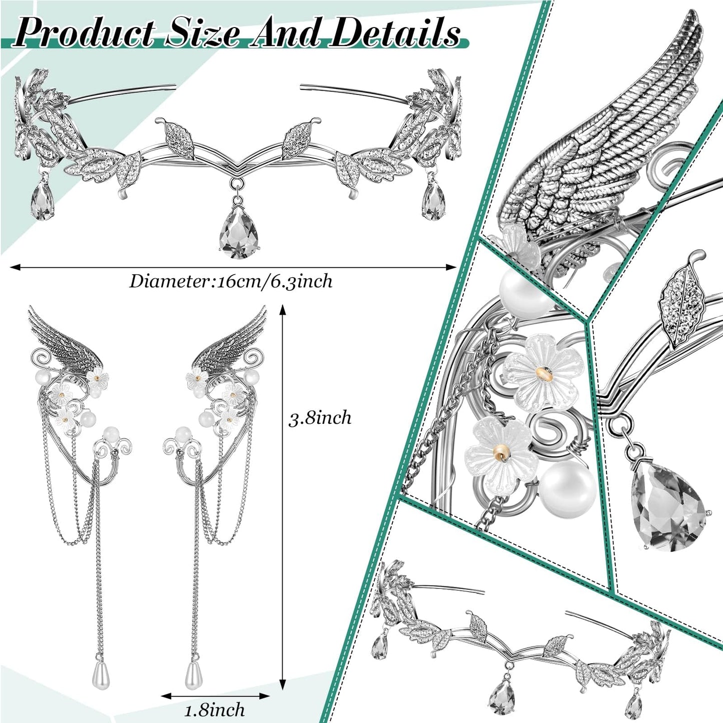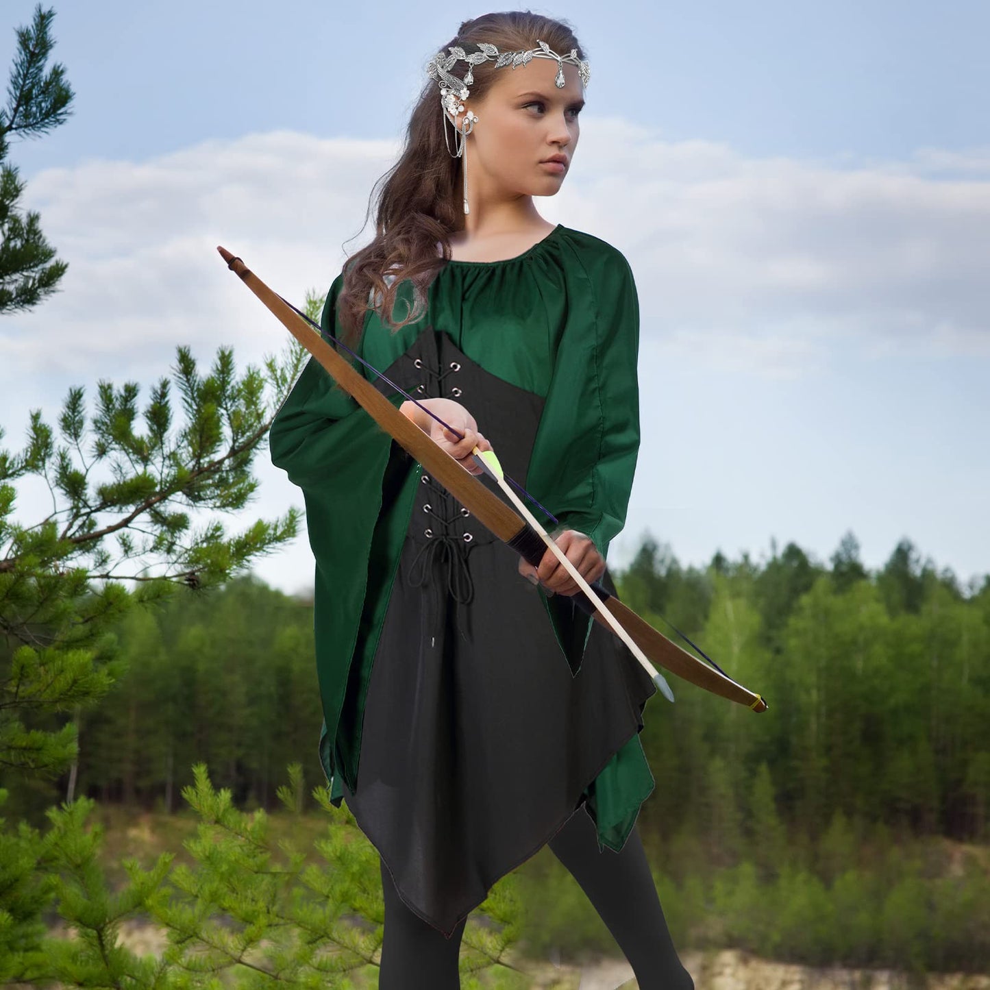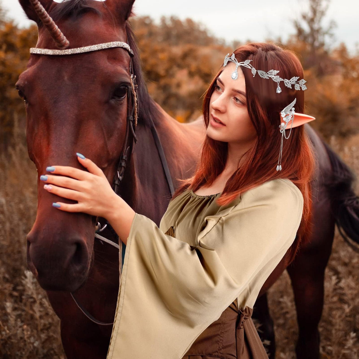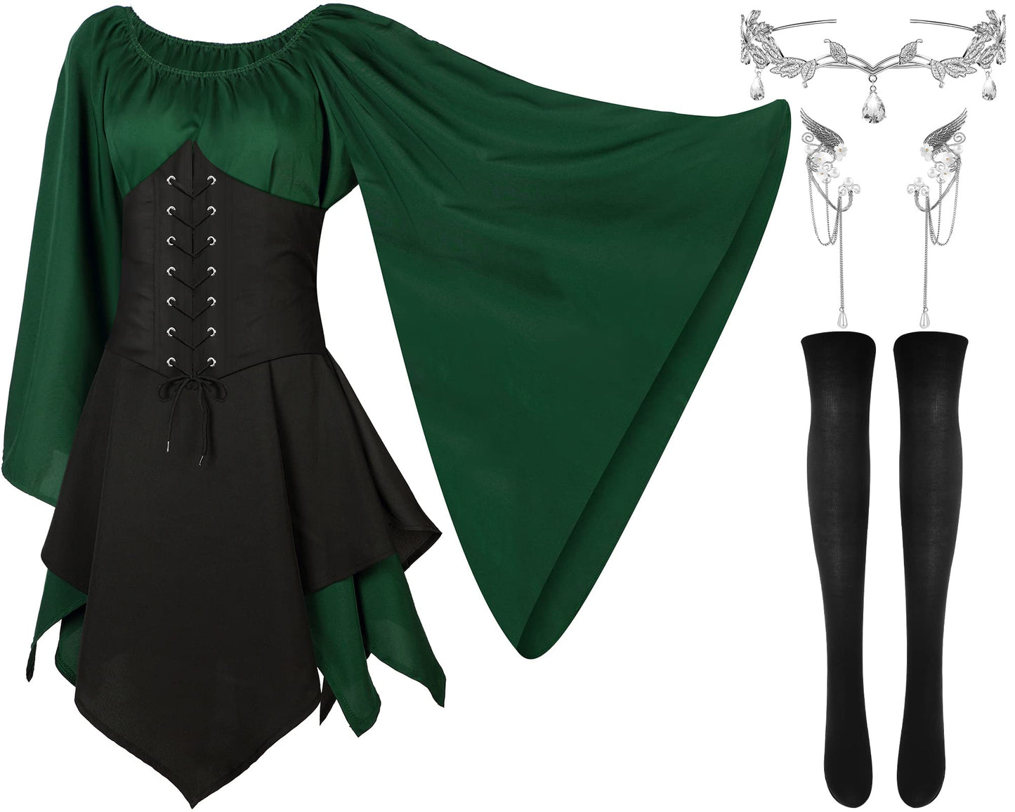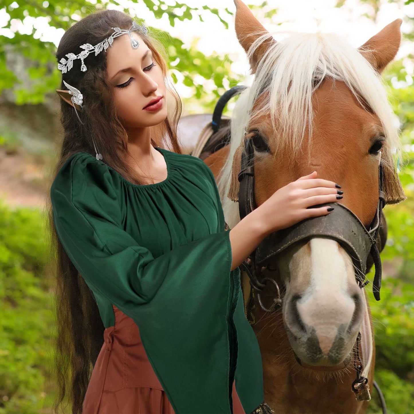 4 Pcs Women Elf Costume Renaissance Traditional Irish Dress Fairy Costume Elf Ear Cuffs for Women Halloween Cosplay Party