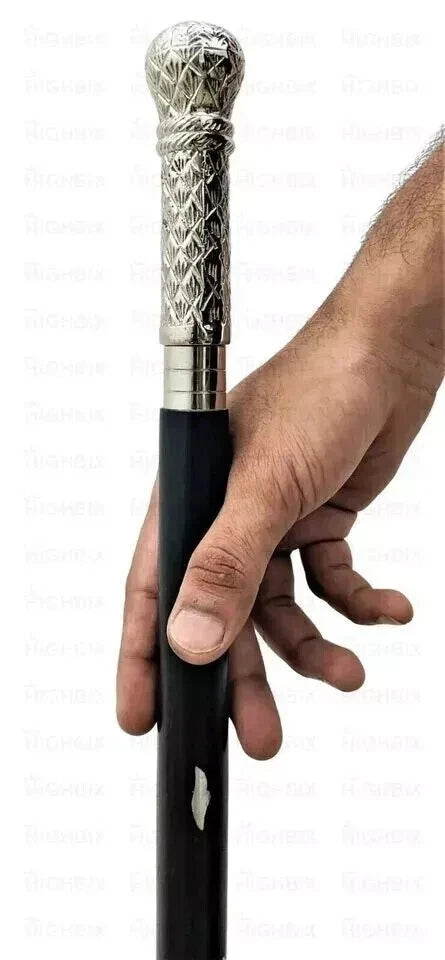 Cane Walking Stick Carved Wooden Handmade Long Round Knob Designer Head Handle