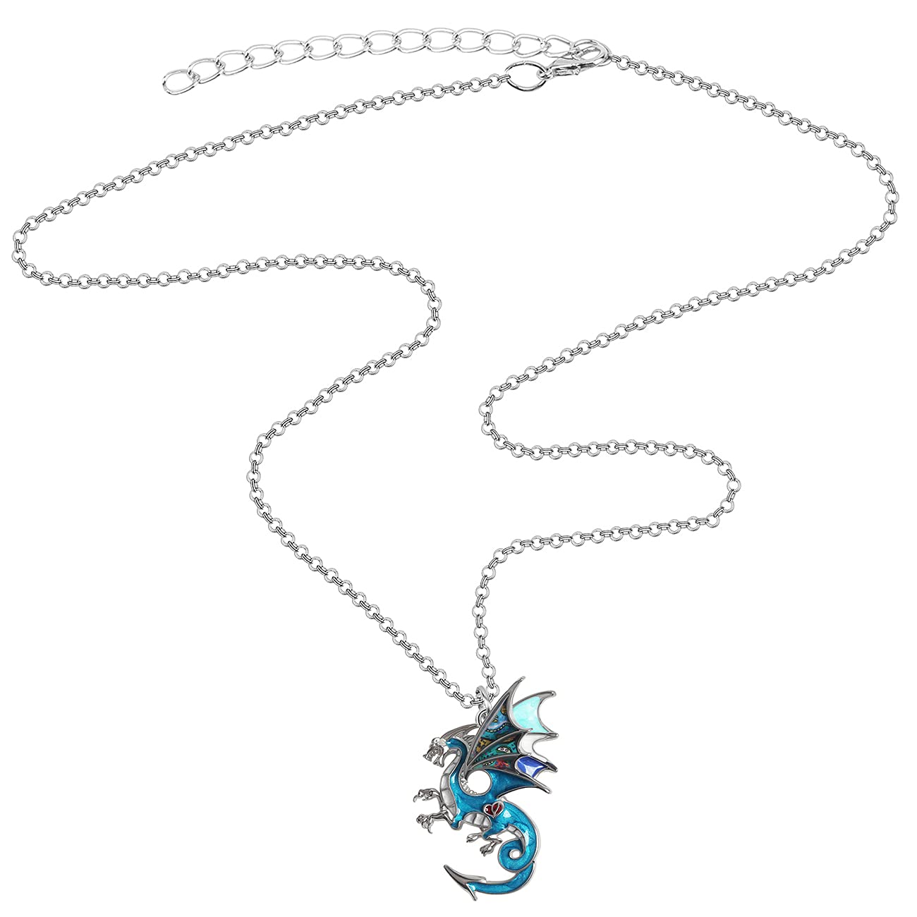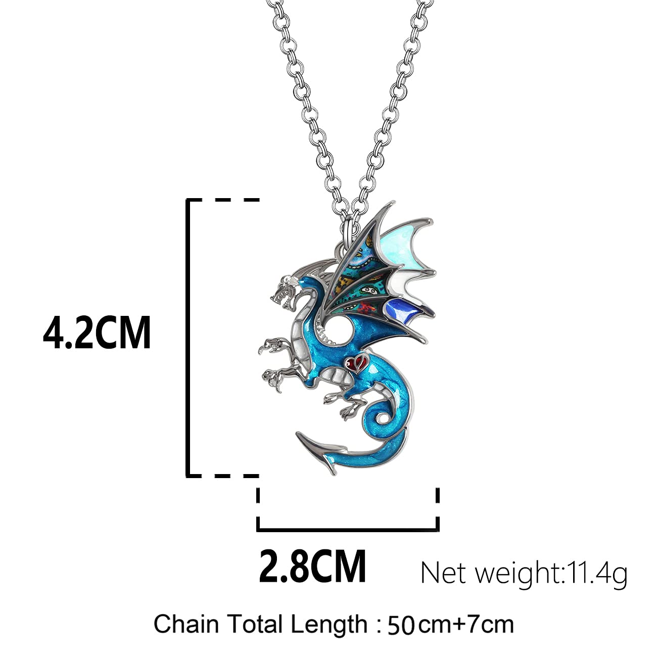 Enamel Alloy Dragon Pendant Necklace - Fantasy Dinosaur Charm Gift for Women - Blue