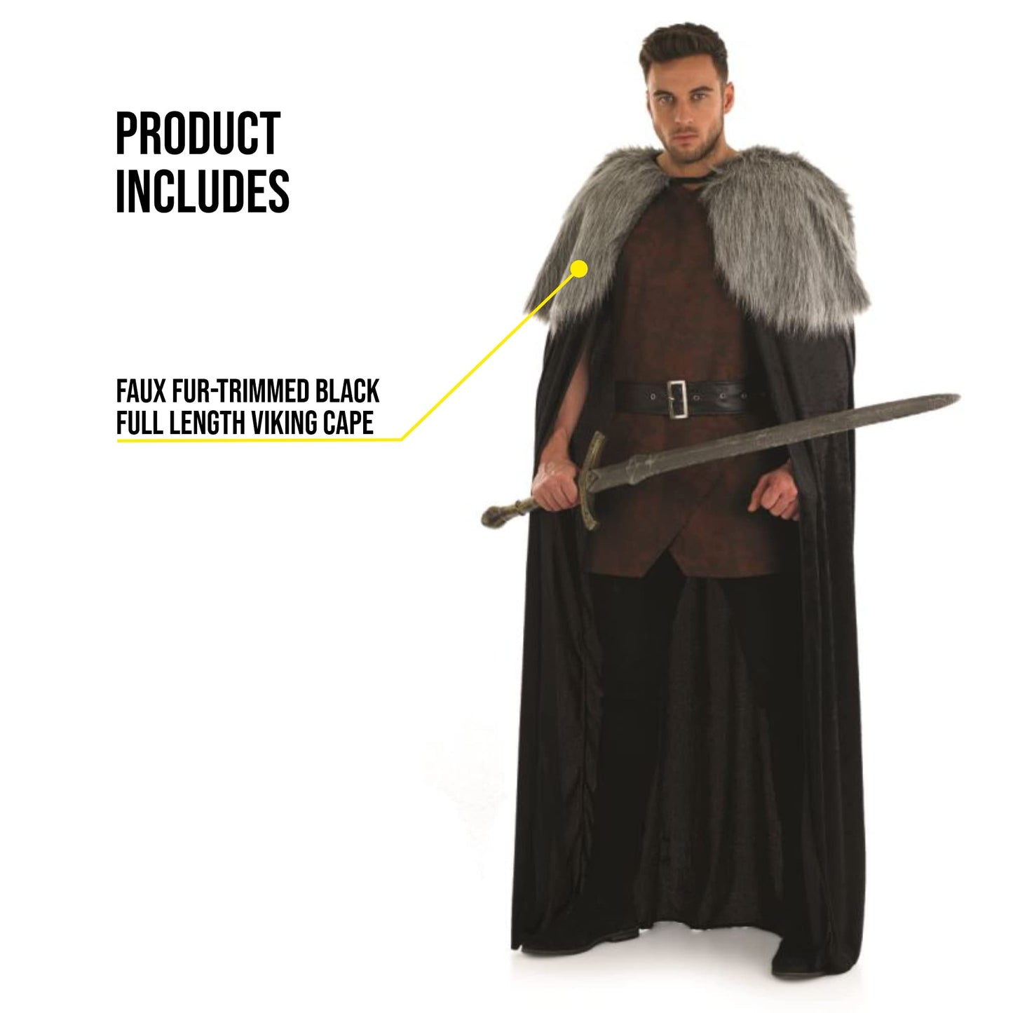 Mens medieval costume includes faux fur-trimmed, black, full length Viking cape.Available in one size fits all.High quality material and comfortable for a variety of body types.Founded in 2009 by 3 friends with a passion for costumes, we now have 100s of designs all manufactured to the highest standards of quality, fit and design. We have offices in the US, UK and Europe.Perfect mens halloween costumes adult, halloween costumes men, halloween outfits men, easy mens halloween costume, mens halloween costumes, adult halloween costumes for men, men halloween costumes adults.