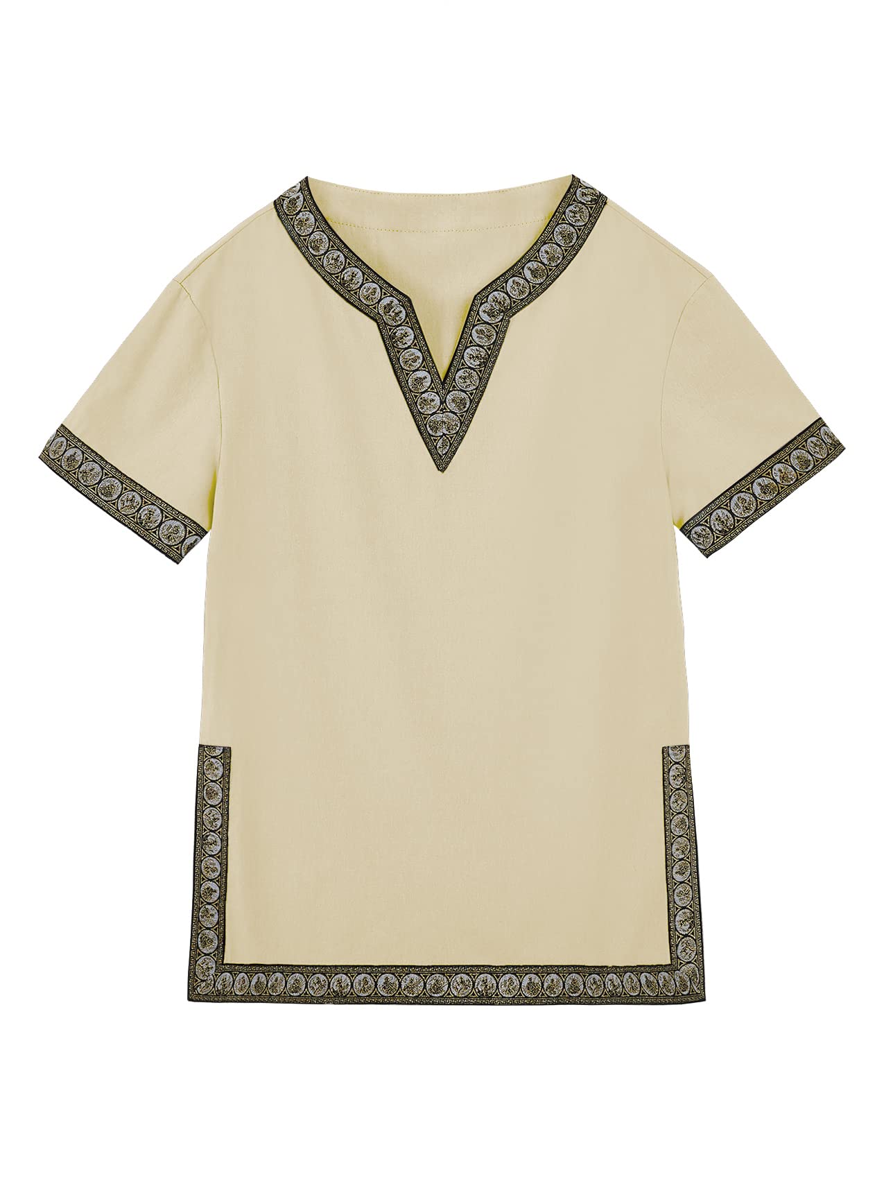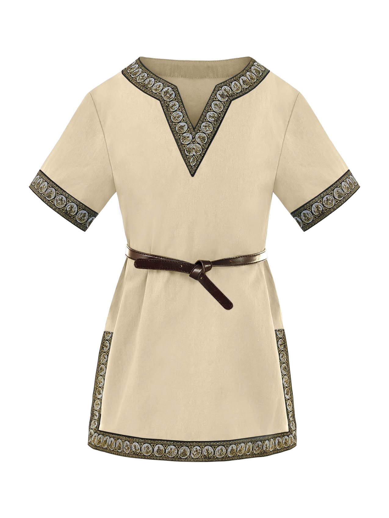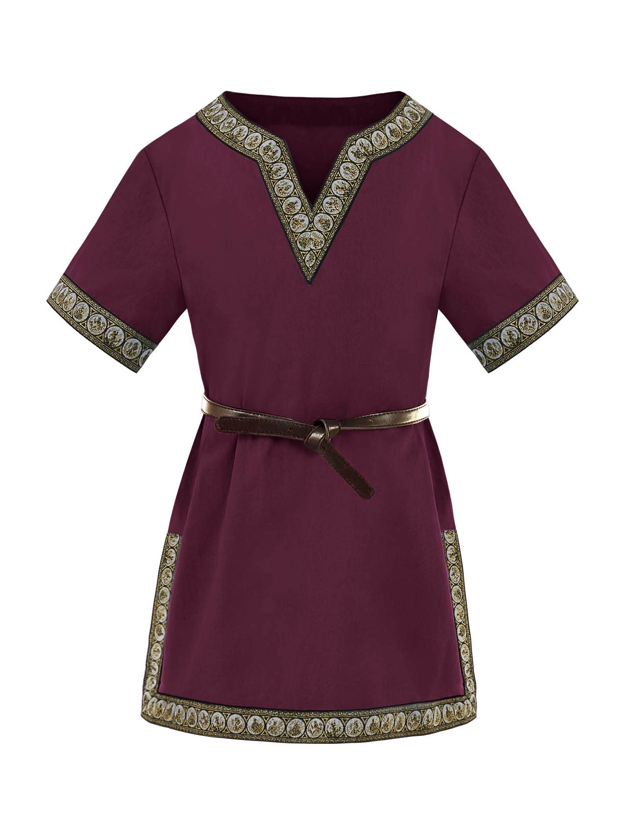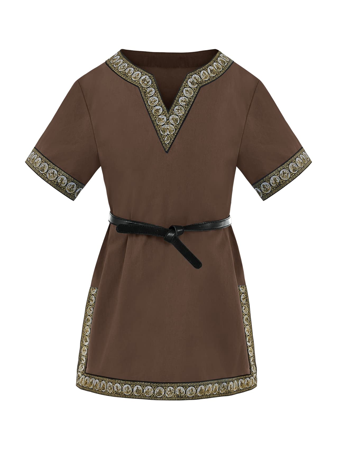 Gafeng Kids Medieval Knight Costume Tunic Renaissance V Neck Shirt Viking Vintage Warrior Halloween Tops