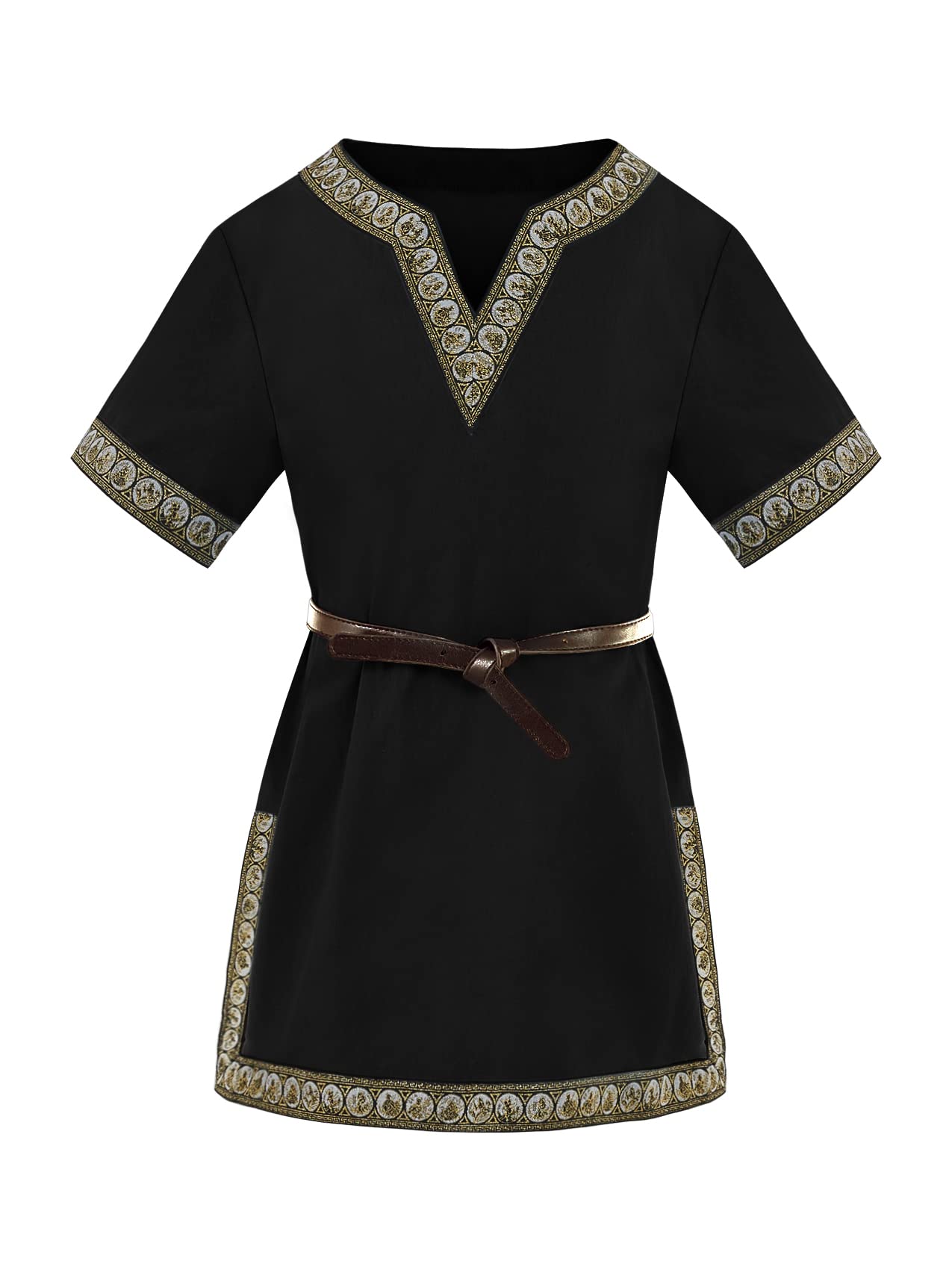 Gafeng Kids Medieval Knight Costume Tunic Renaissance V Neck Shirt Viking Vintage Warrior Halloween Tops Black 10-12 Years