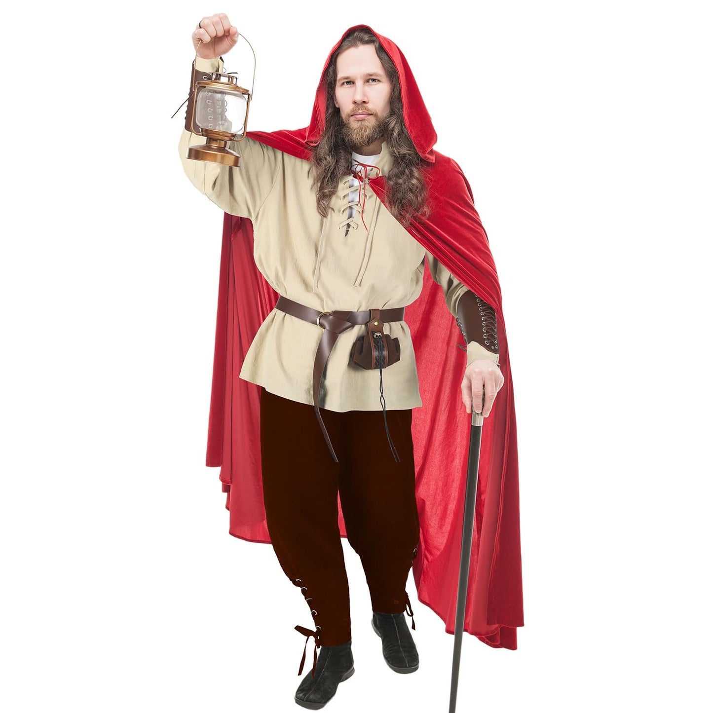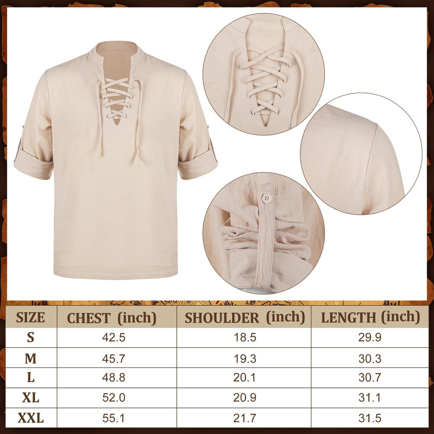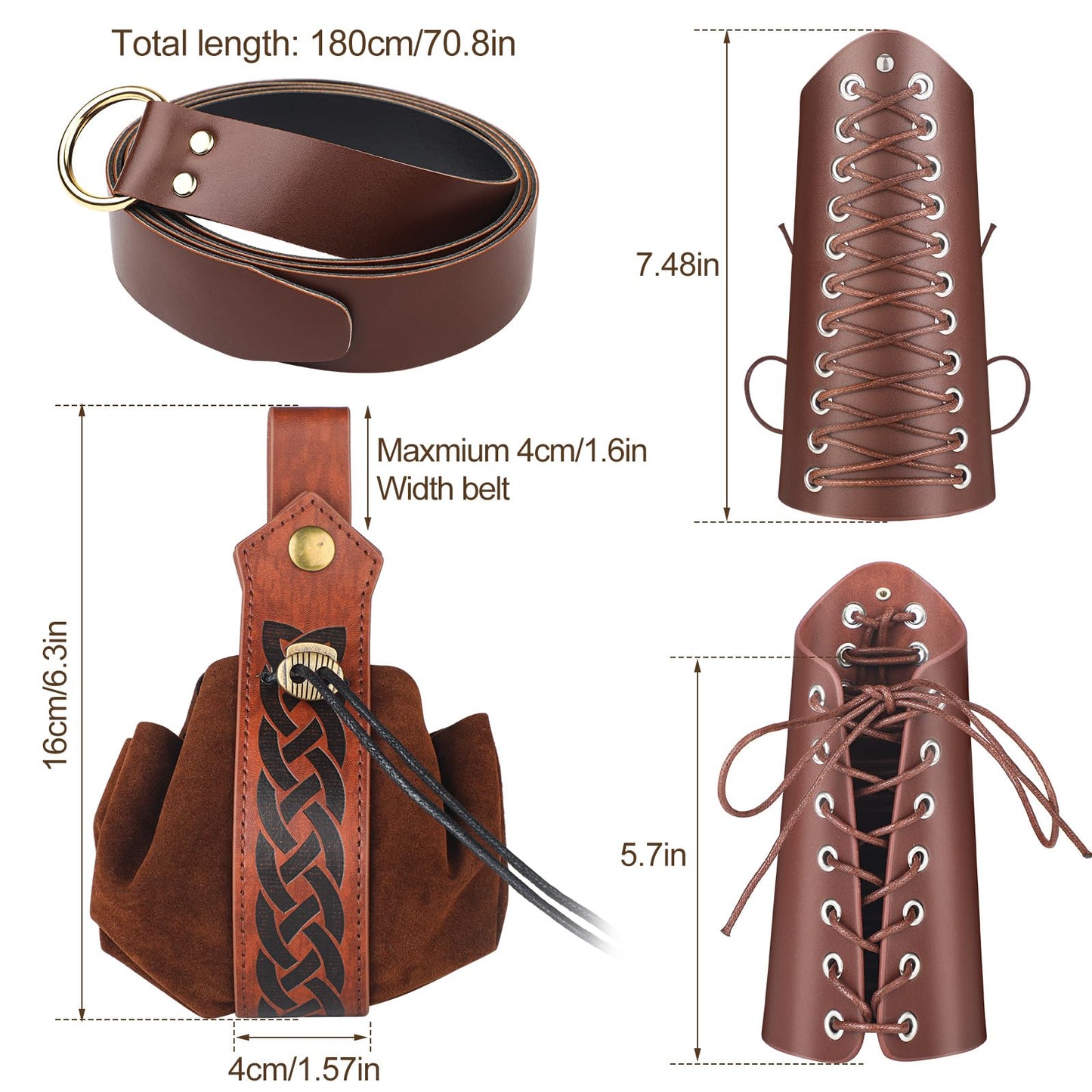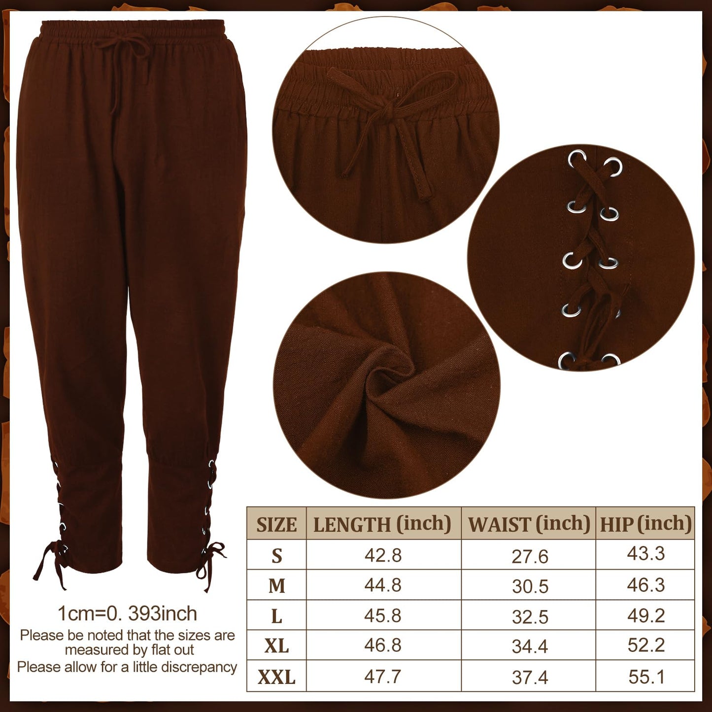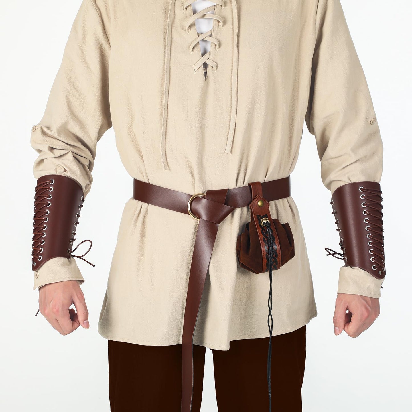 Jeyiour Men's Renaissance Costume Set Medieval Shirt Pirate Outfit Cosplay Viking Ankle Pants Belt Pouch Armband Beige, Brown Large