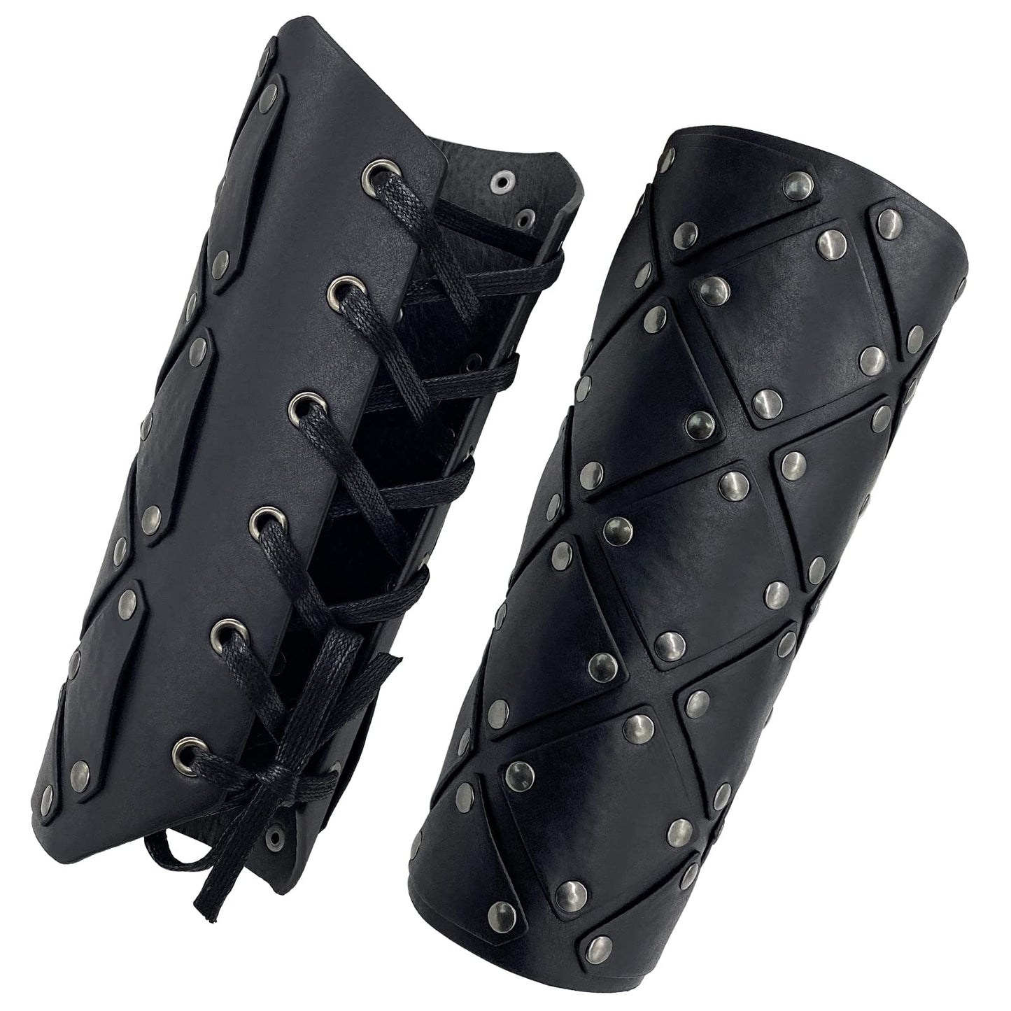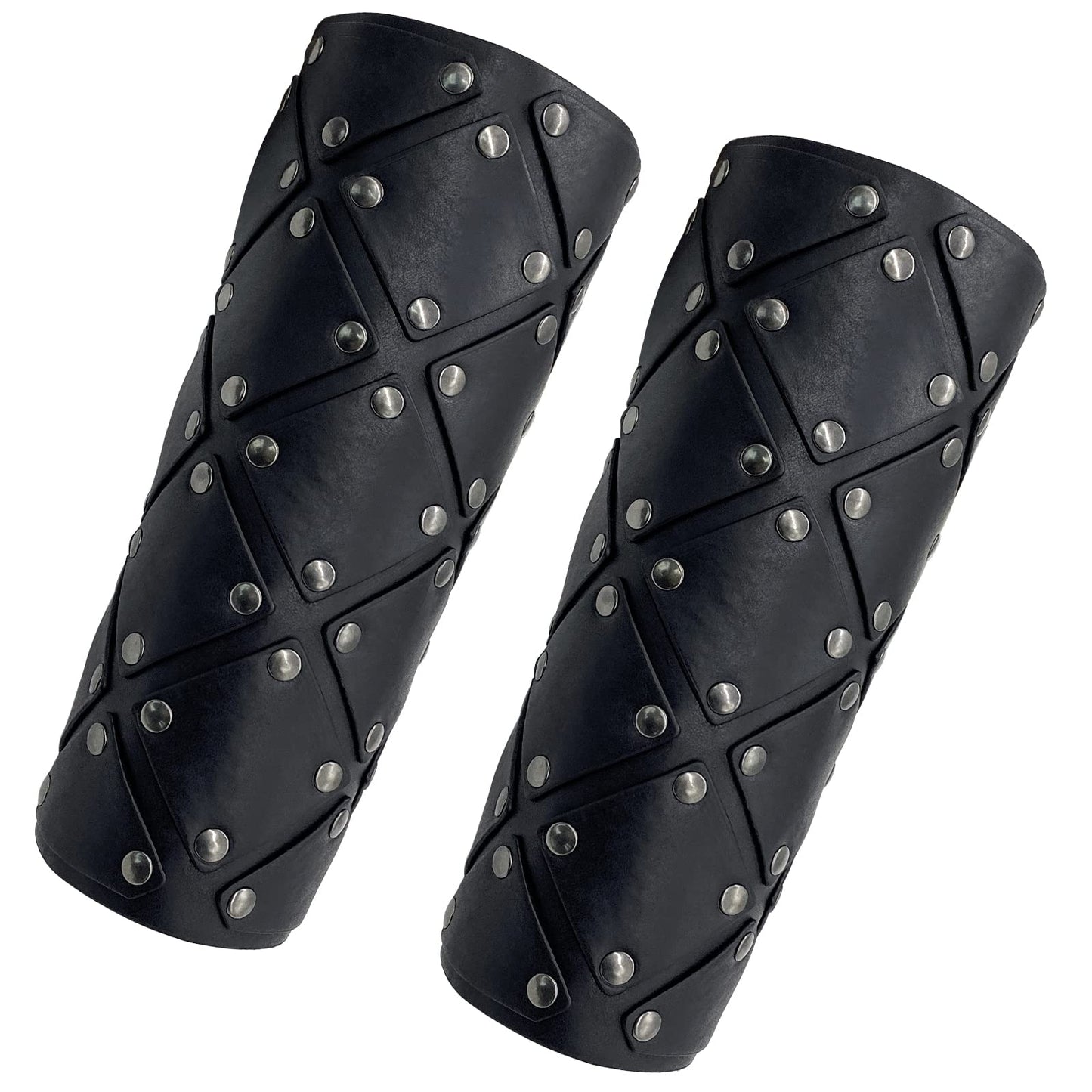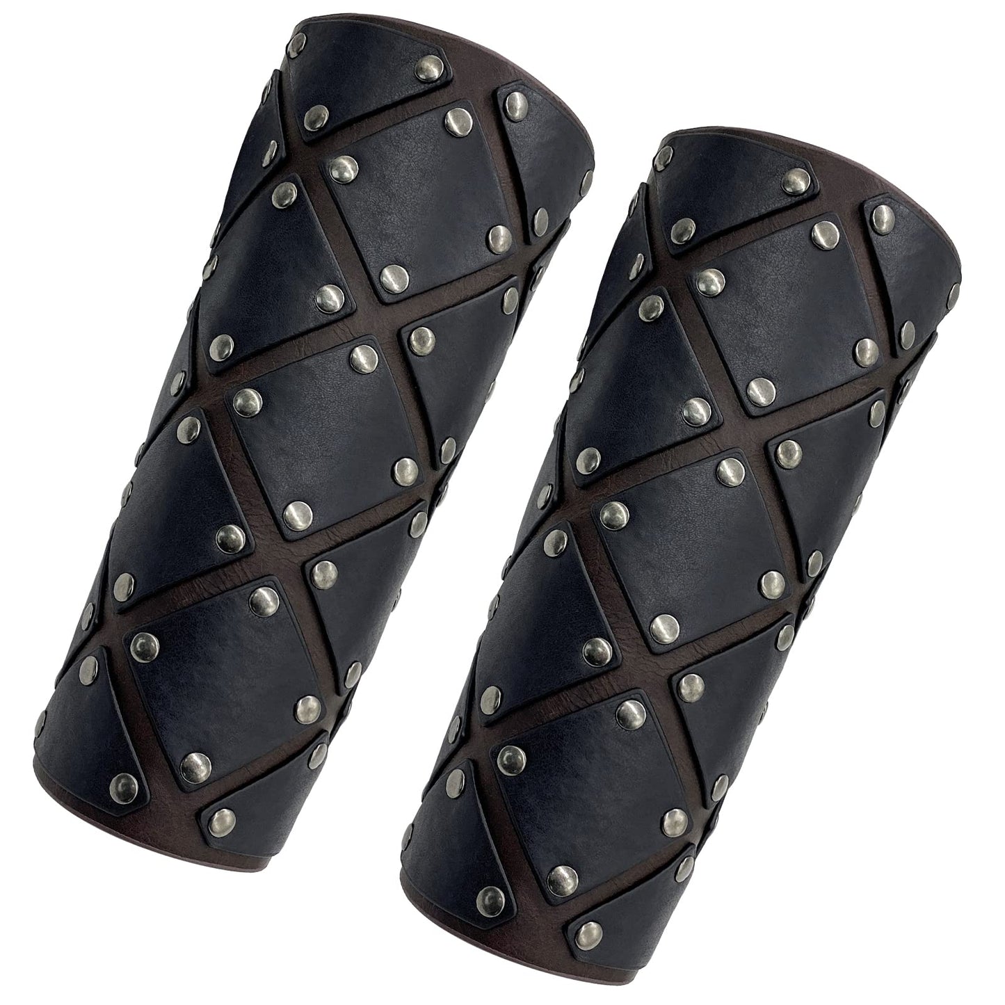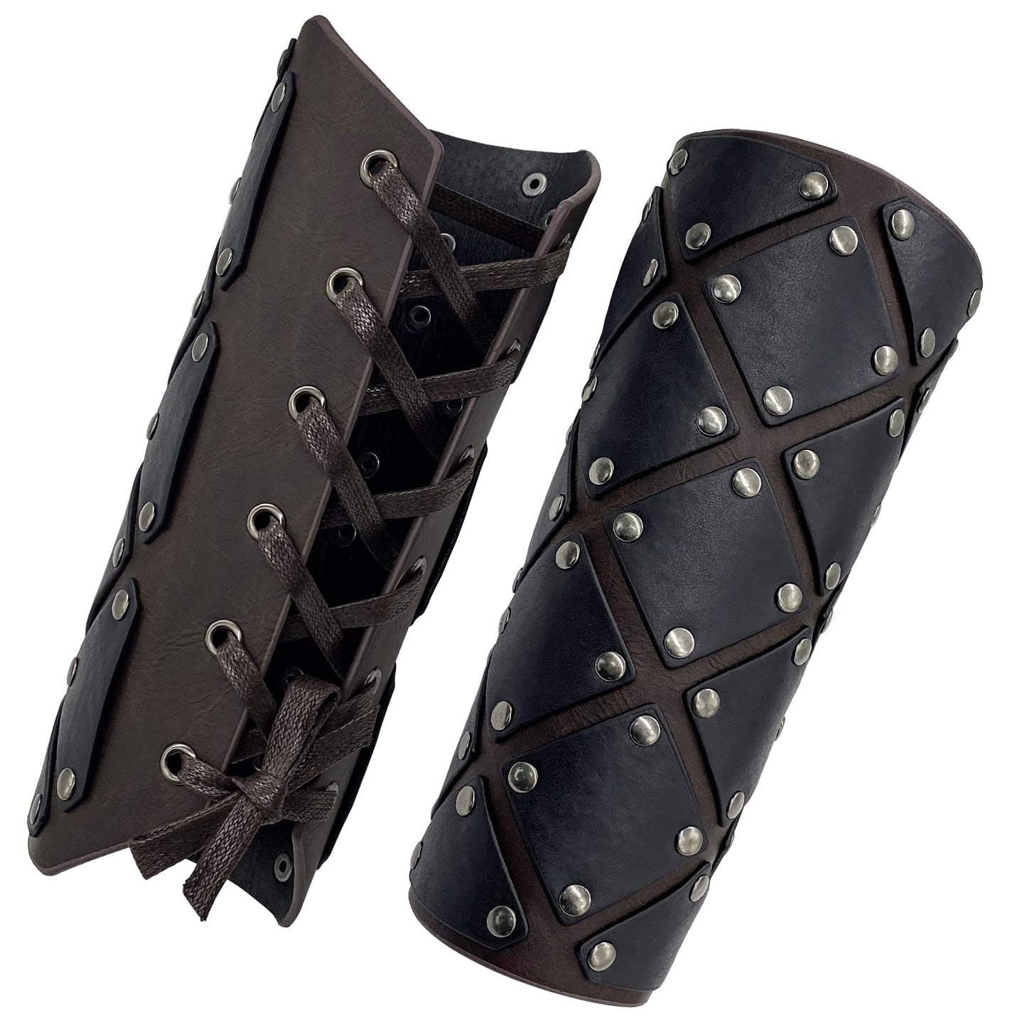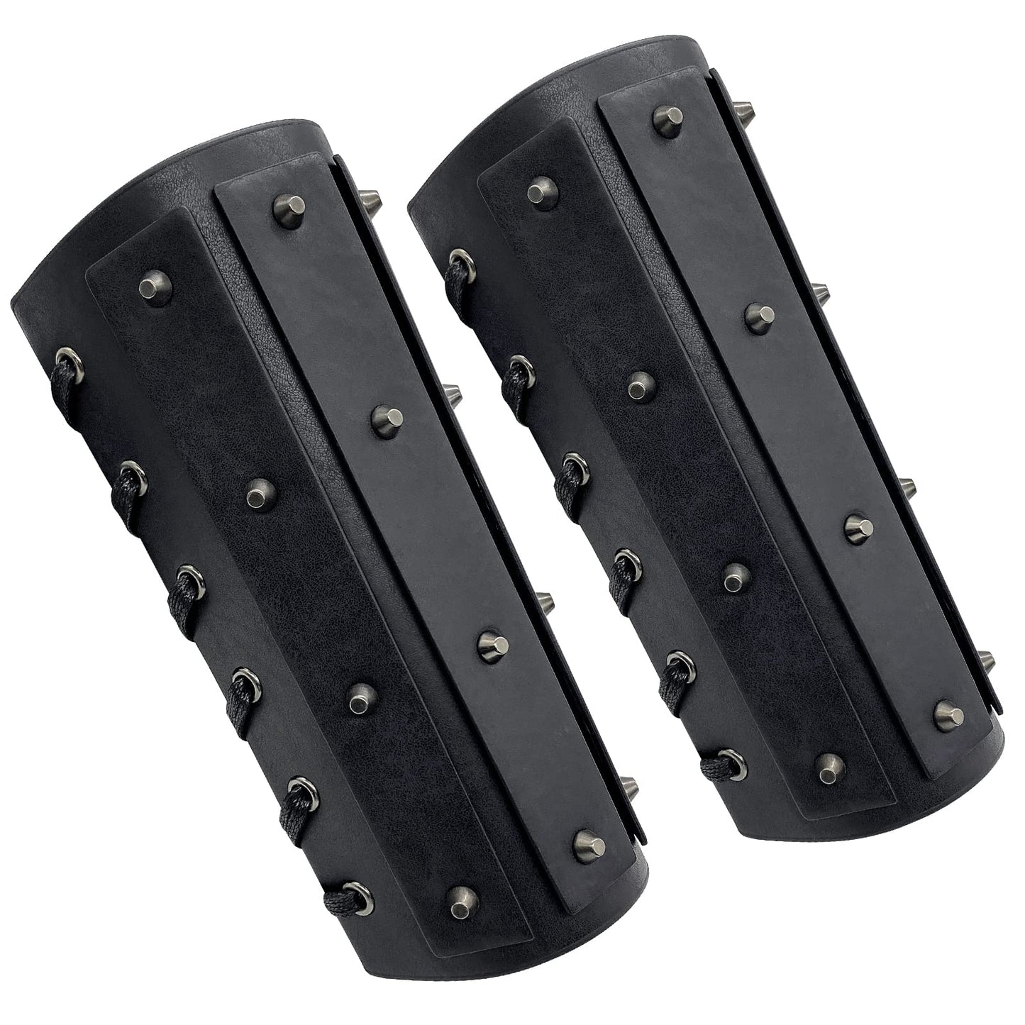 Leather Gauntlet Wristband Medieval Bracers Viking Wrist Guards Archery Guards Bracers Wide Arm Armor Cuff for Women Men 2PCS