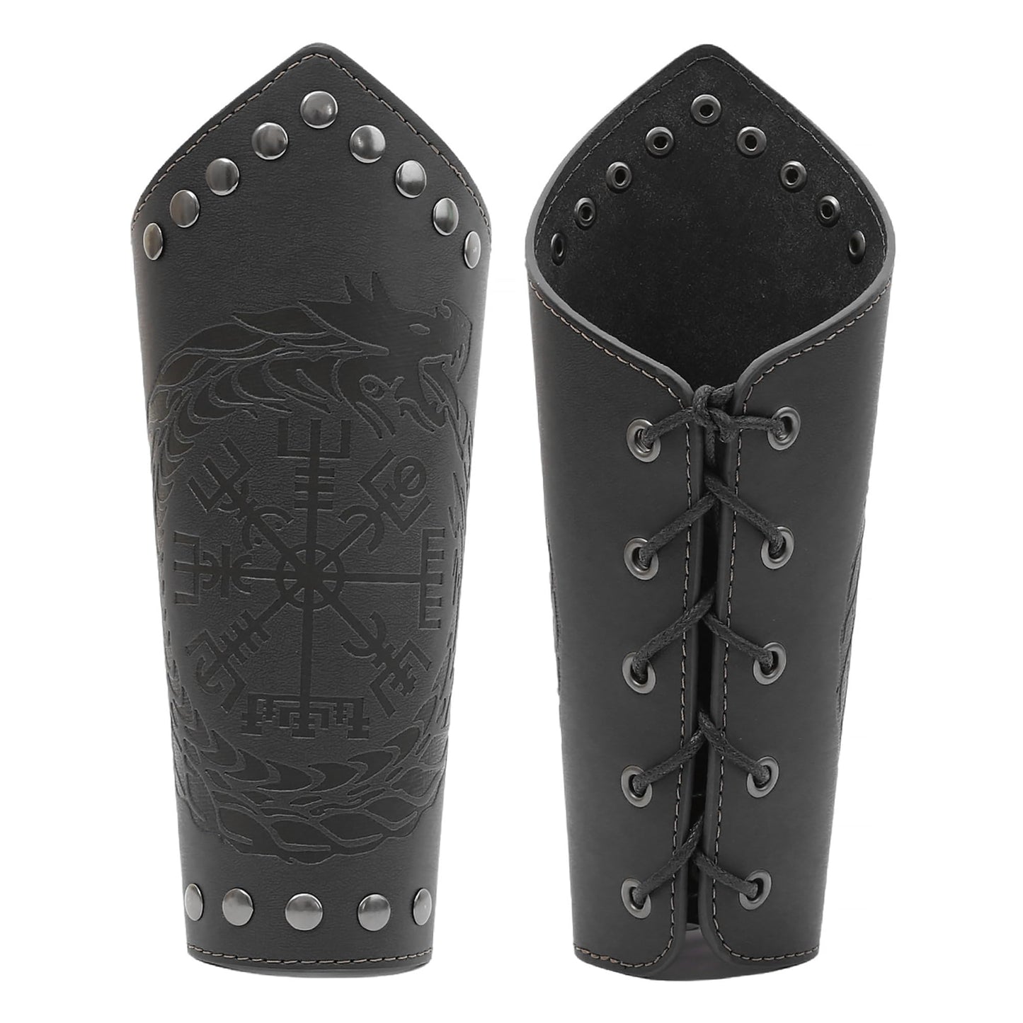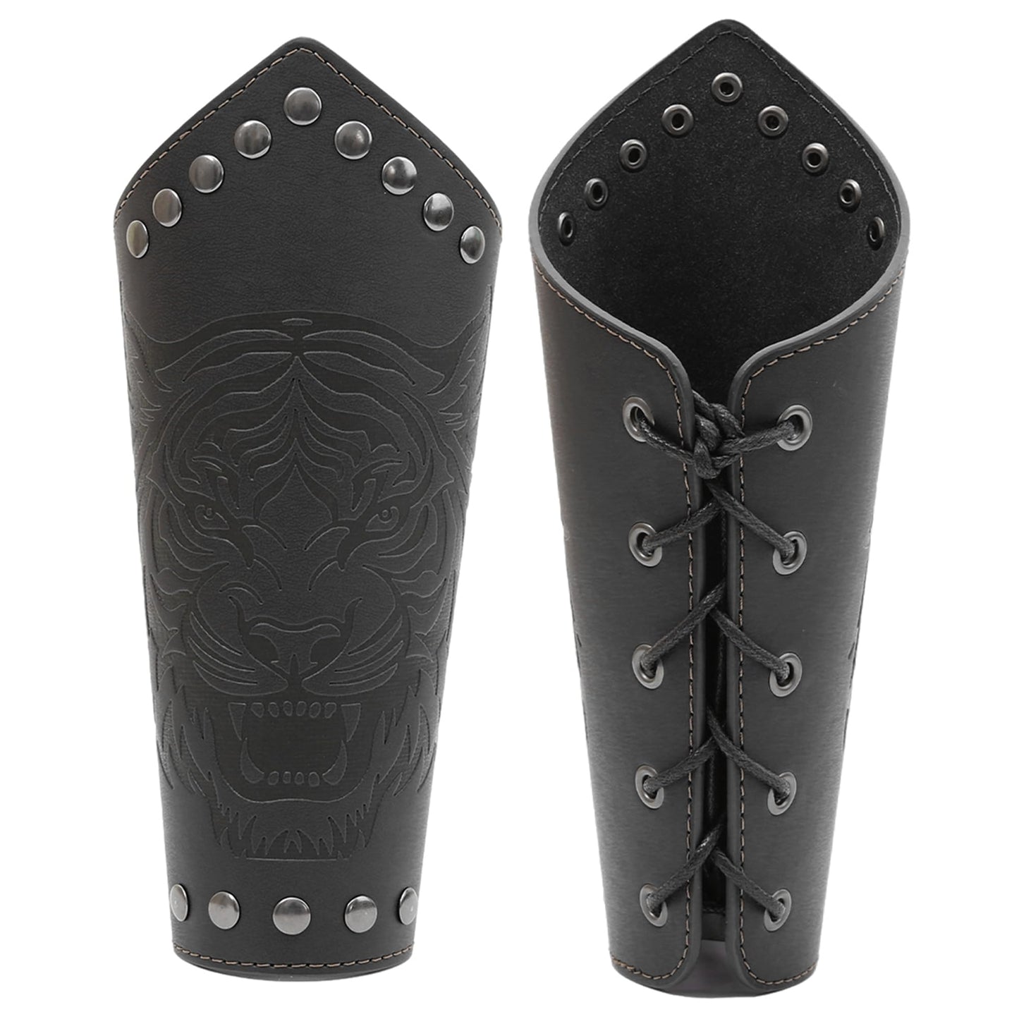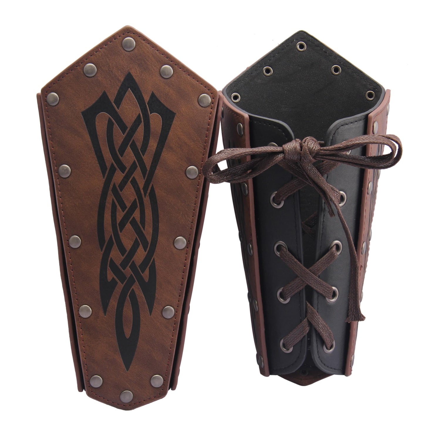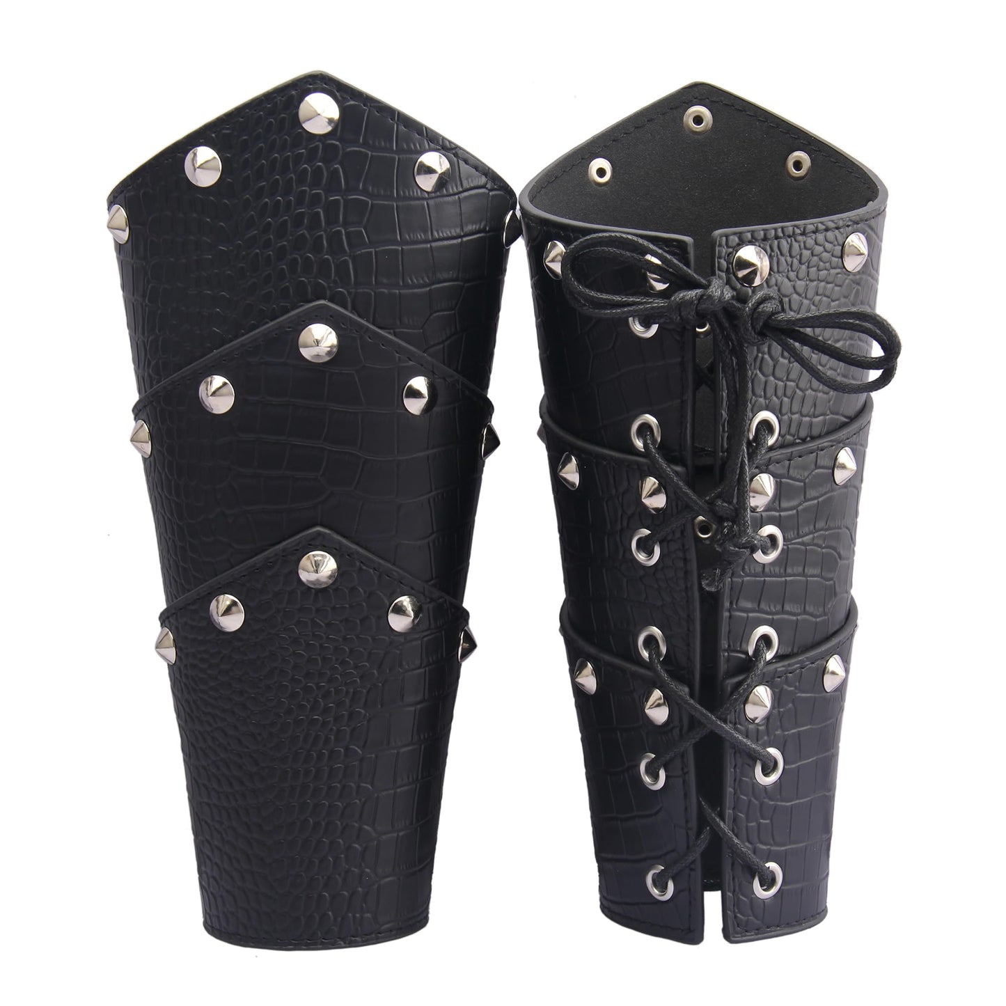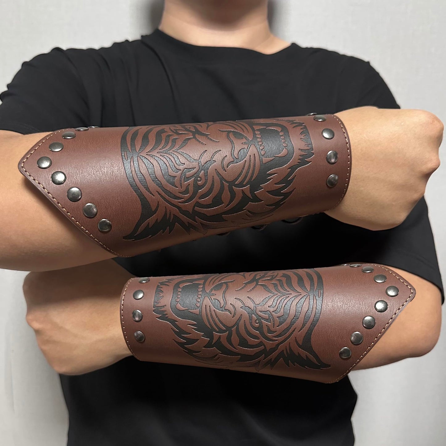 Leather Gauntlet Wristband Medieval Bracers Viking Wrist Guards Archery Guards Bracers Wide Arm Armor Cuff for Women Men 2PCS