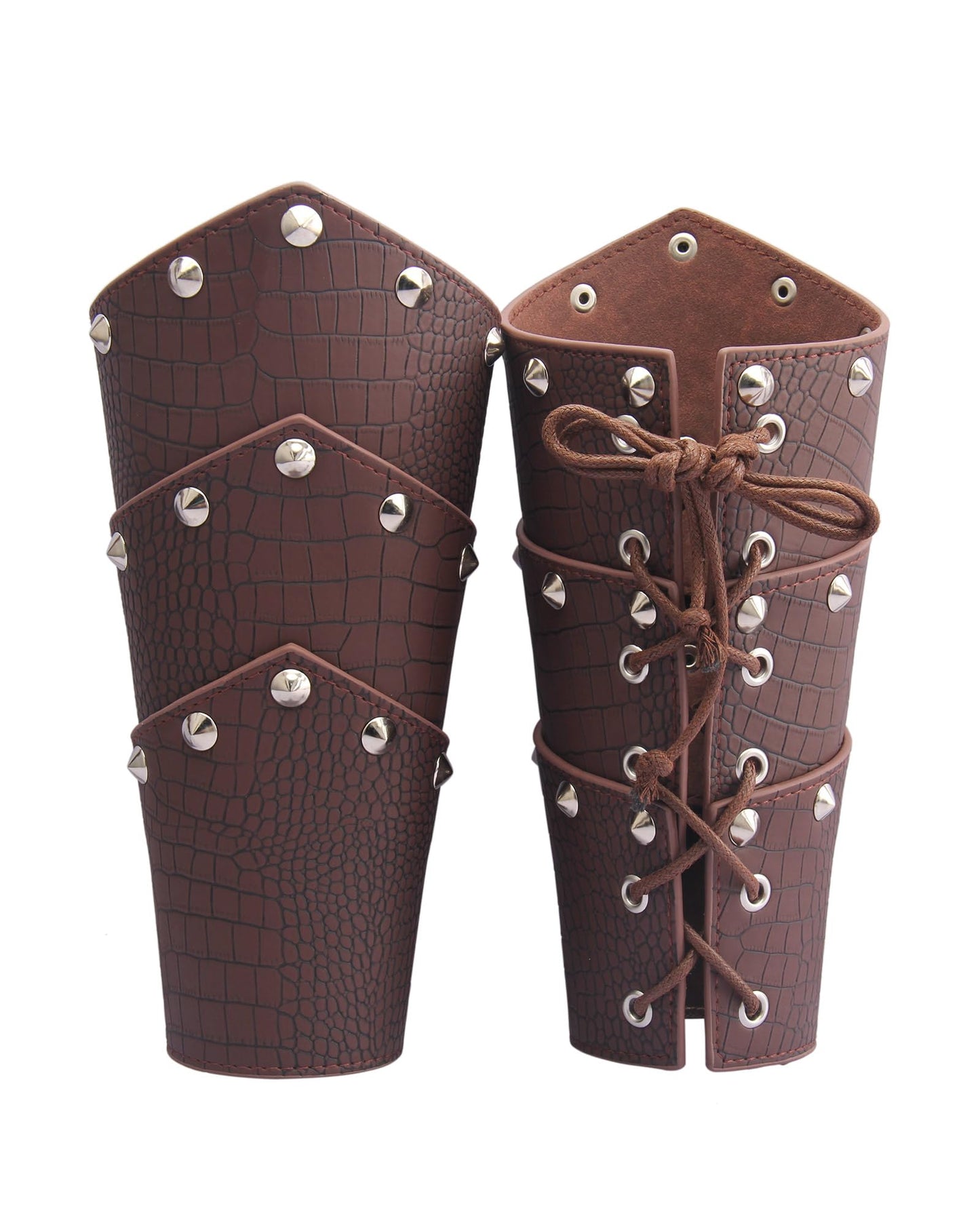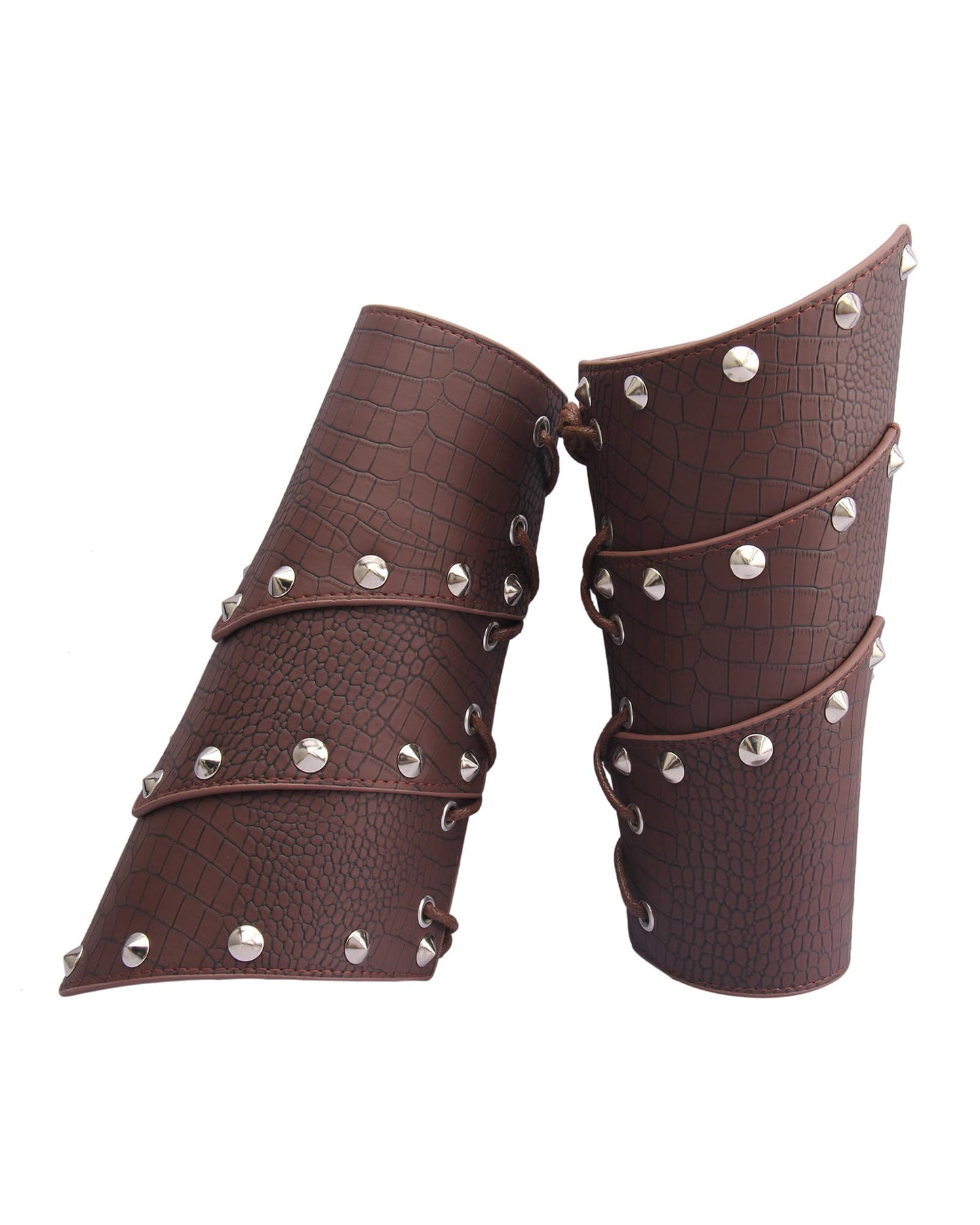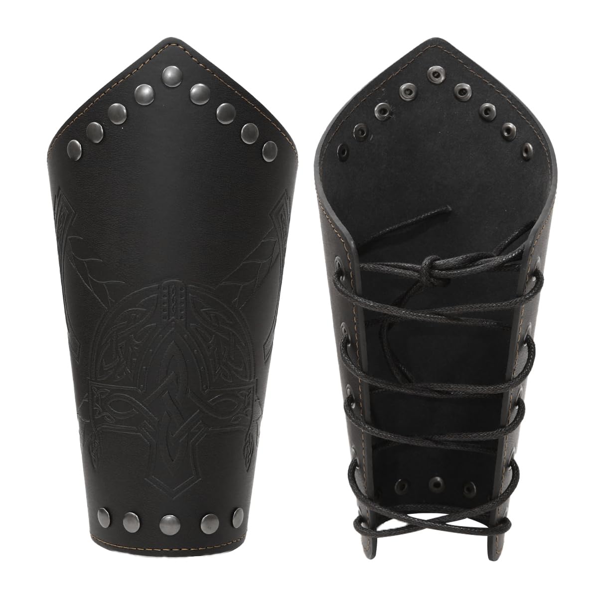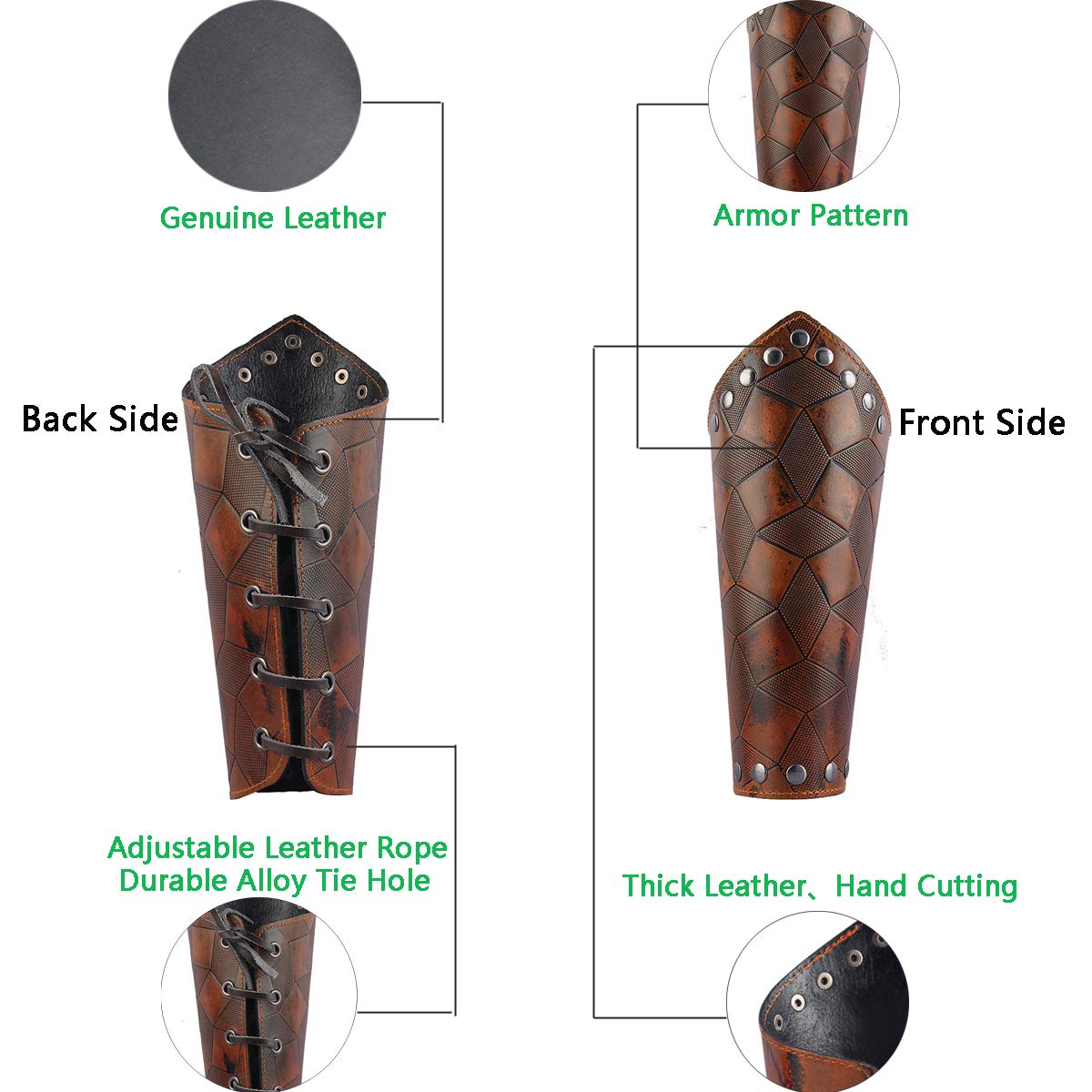 Leather Gauntlet Wristband Medieval Bracers Viking Wrist Guards Archery Guards Bracers Wide Arm Armor Cuff for Women Men 2PCS