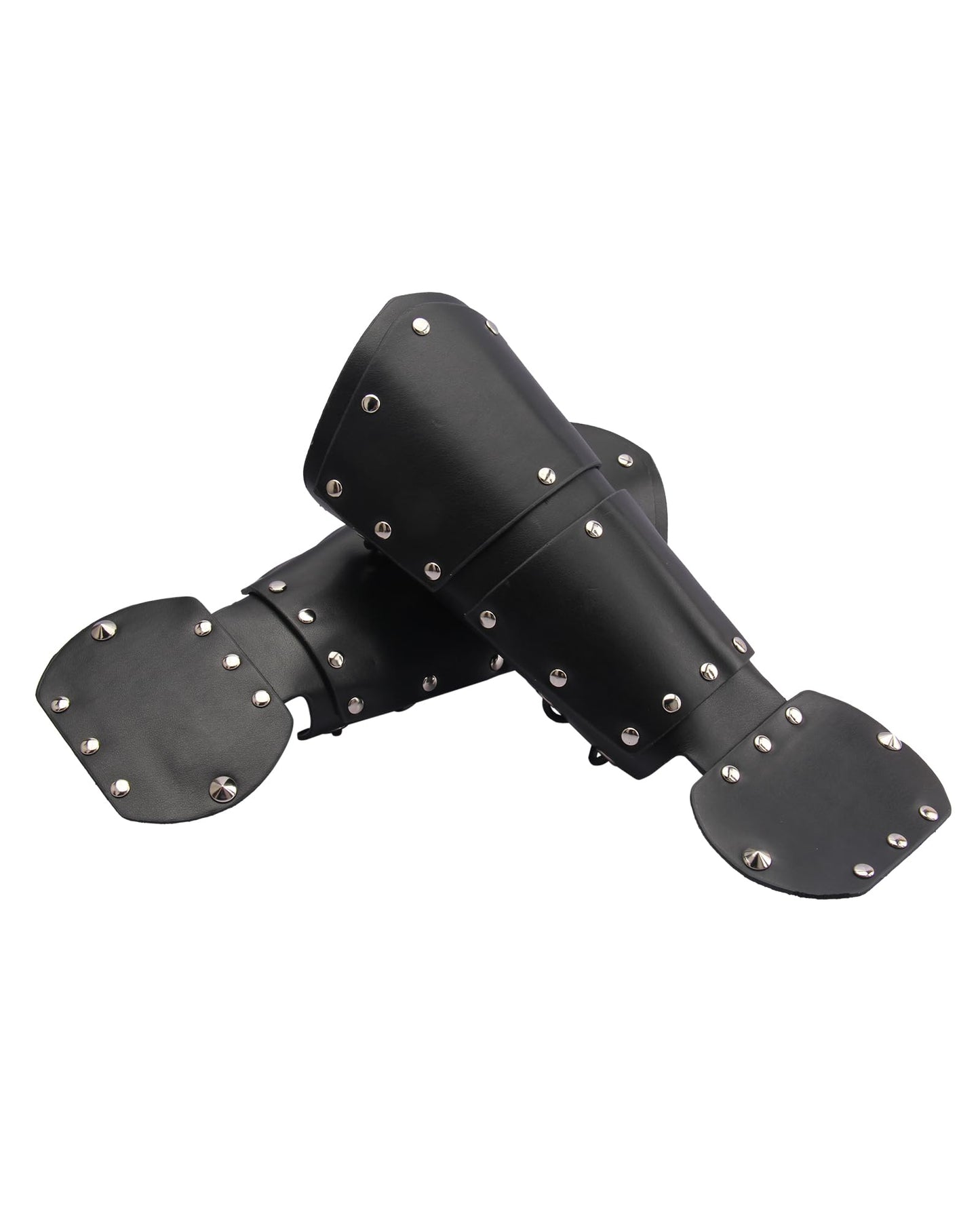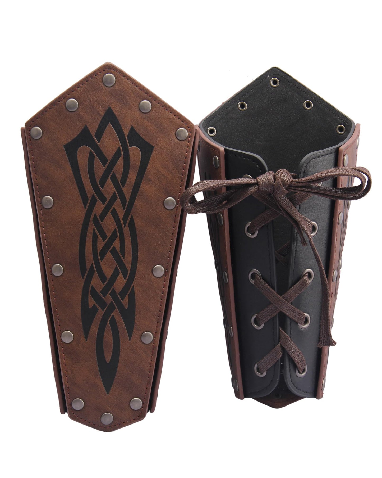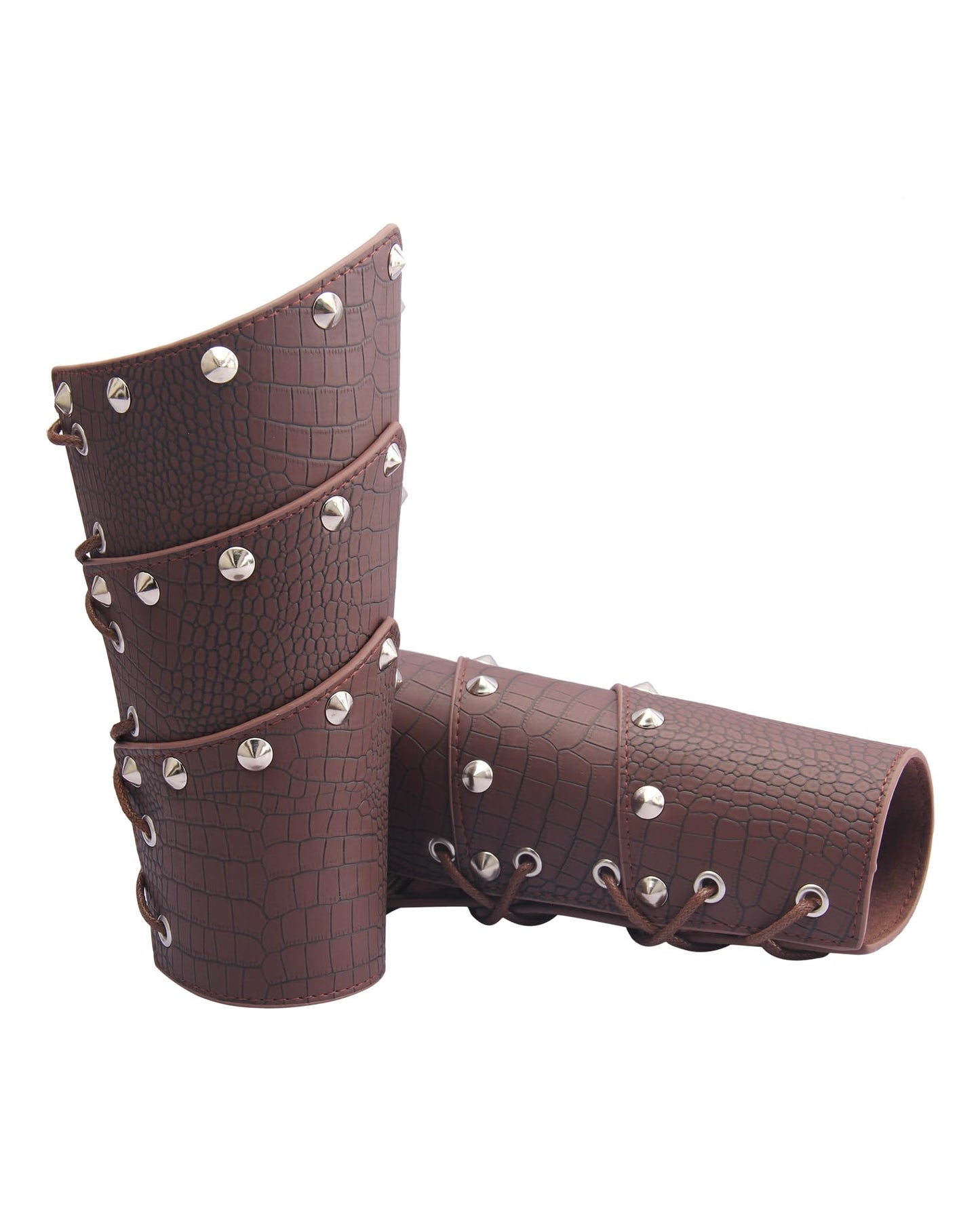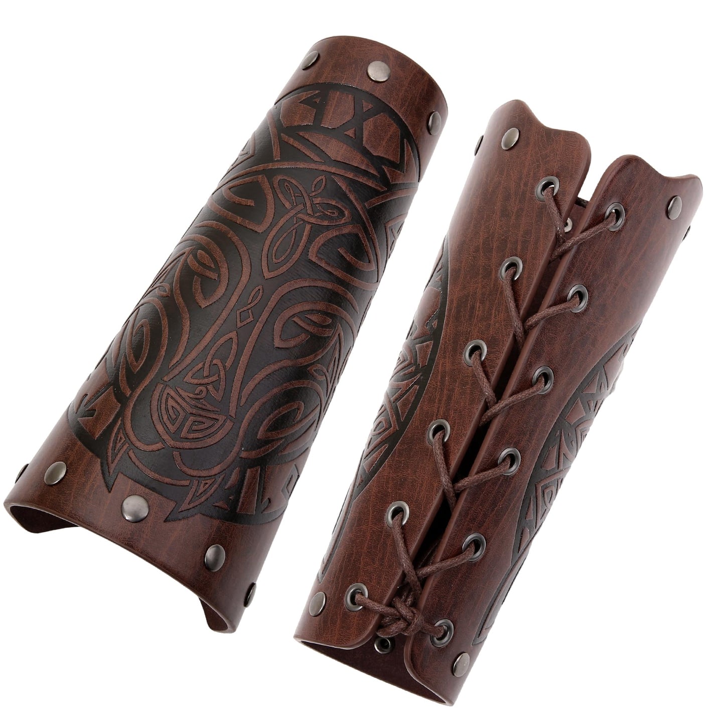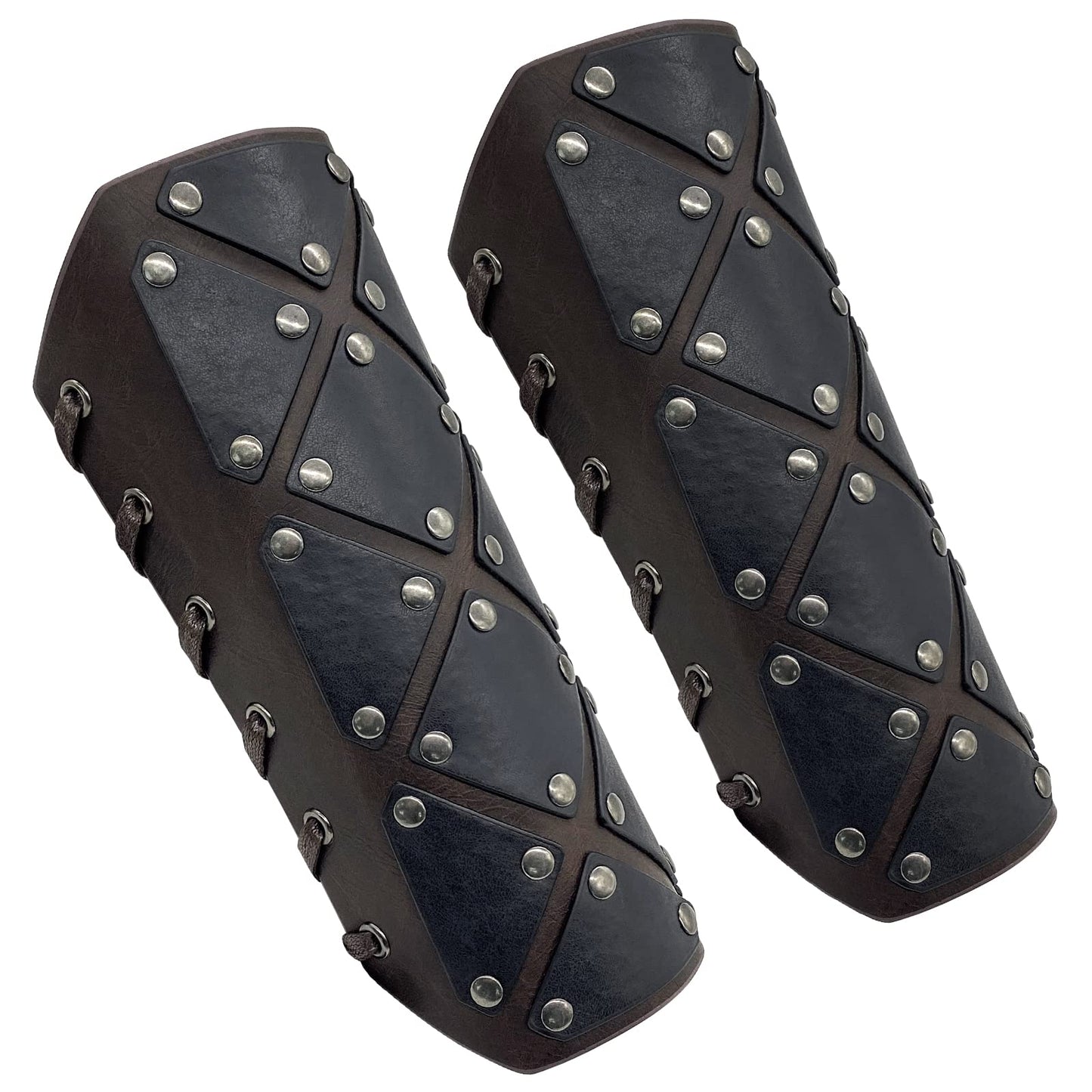 Leather Gauntlet Wristband Medieval Bracers Viking Wrist Guards Archery Guards Bracers Wide Arm Armor Cuff for Women Men 2PCS