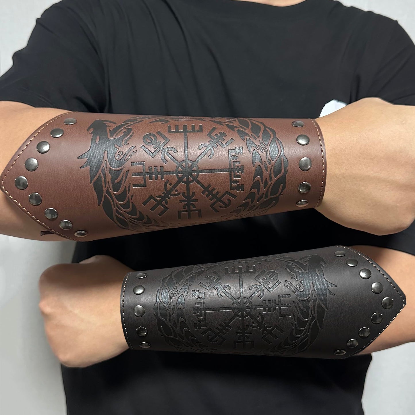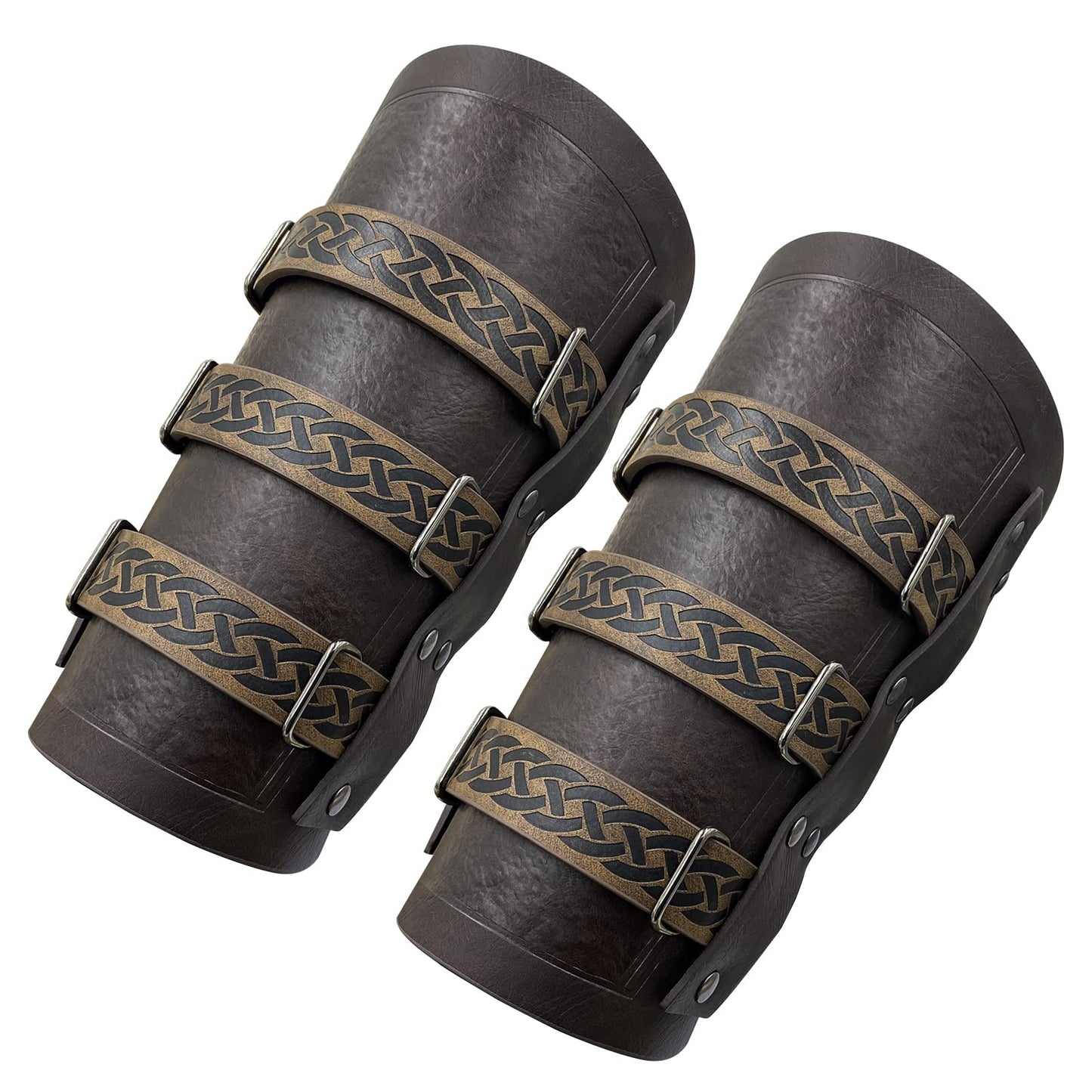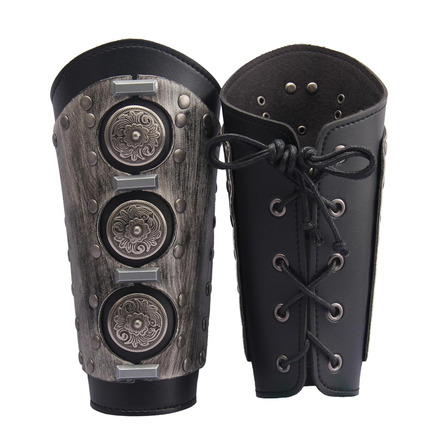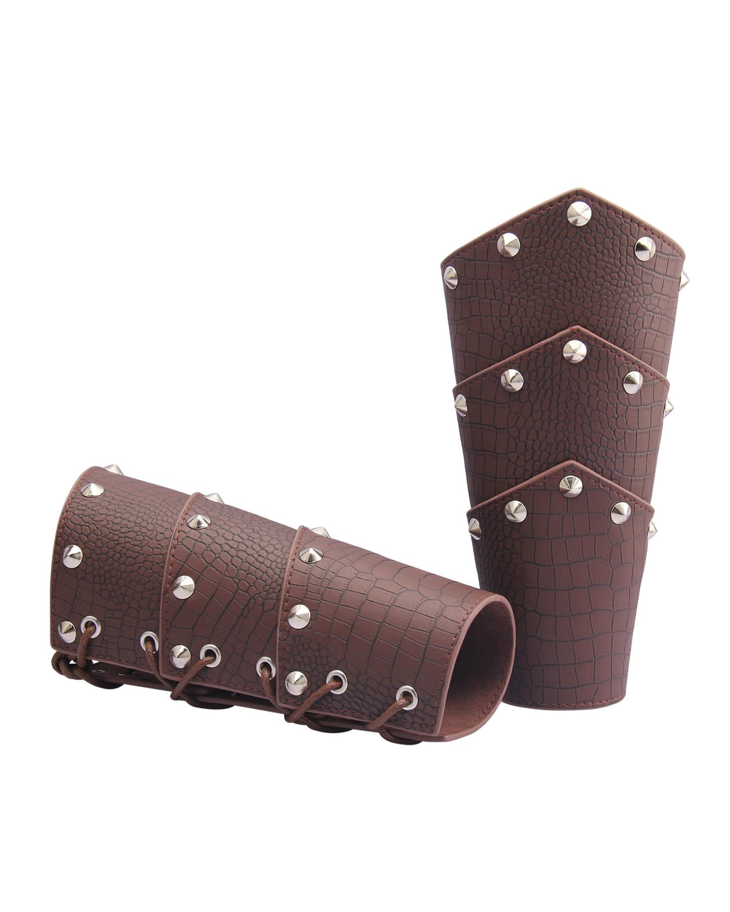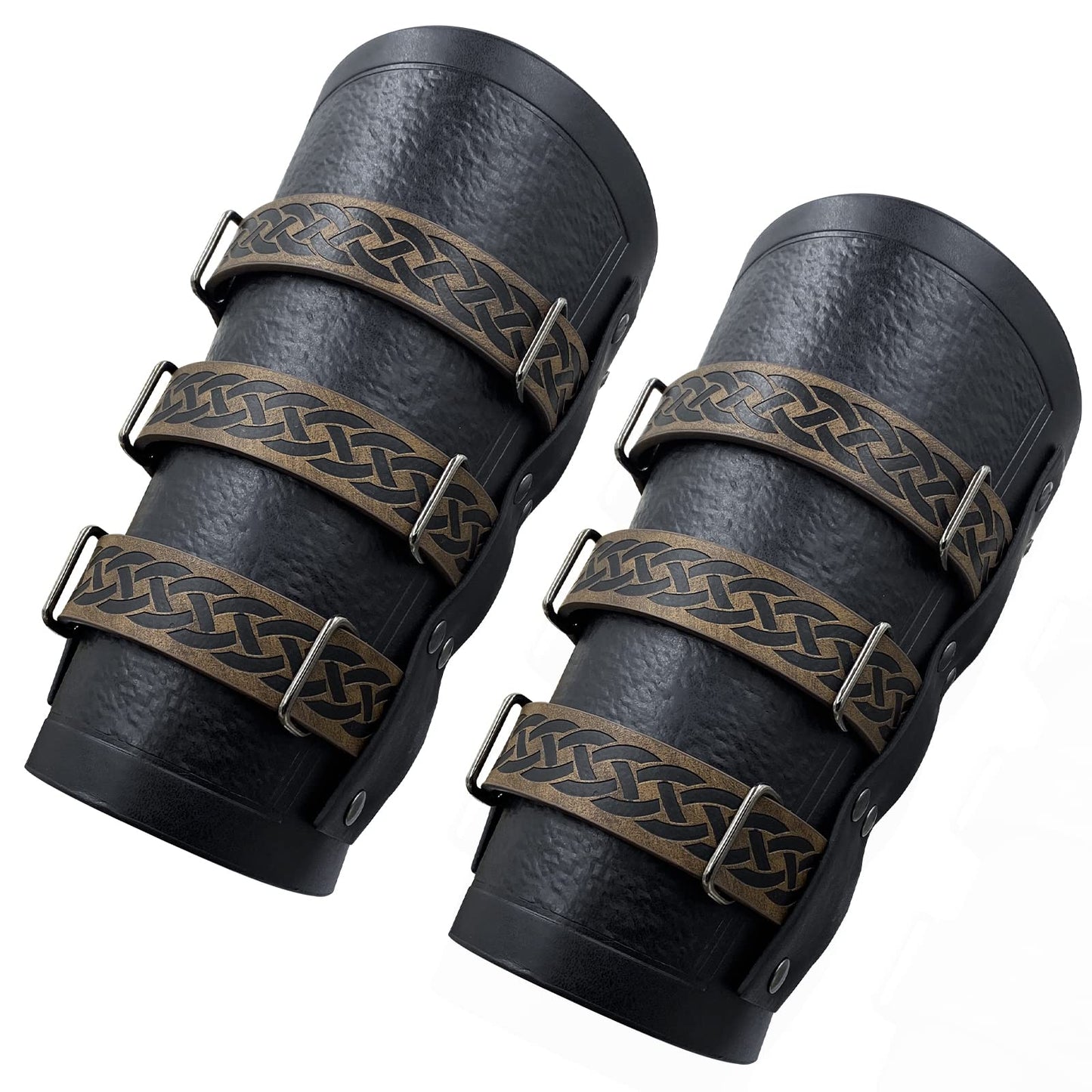 Leather Gauntlet Wristband Medieval Bracers Viking Wrist Guards Archery Guards Bracers Wide Arm Armor Cuff for Women Men 2PCS