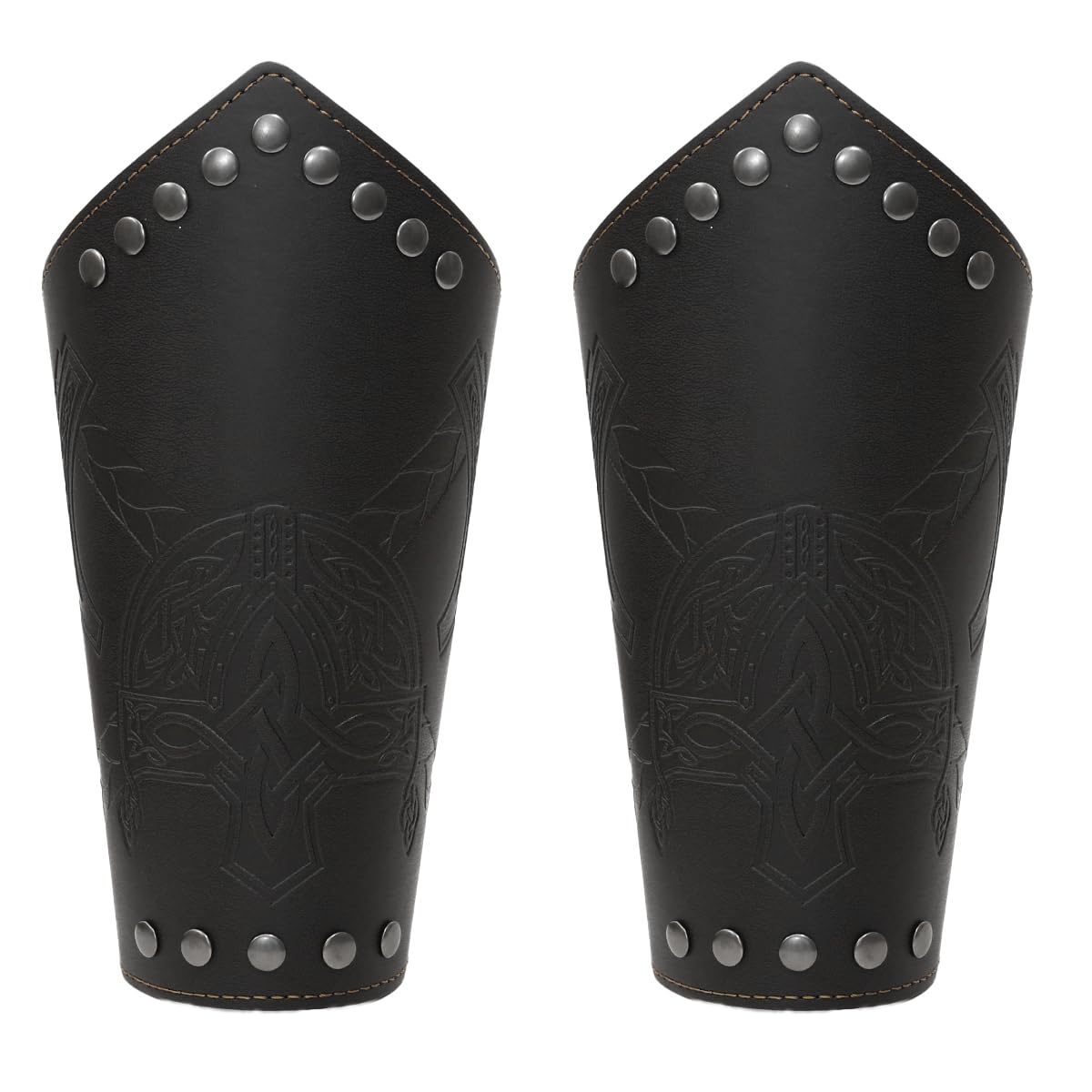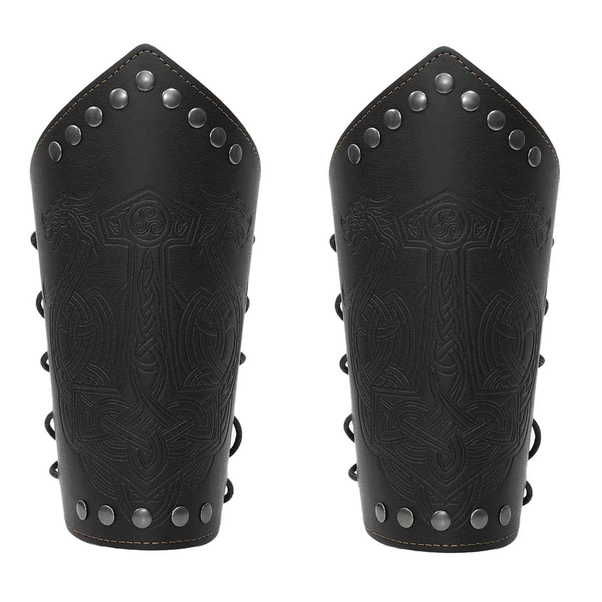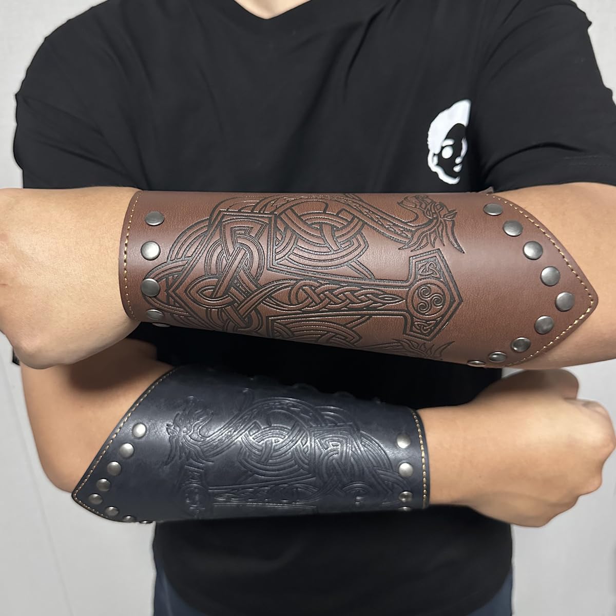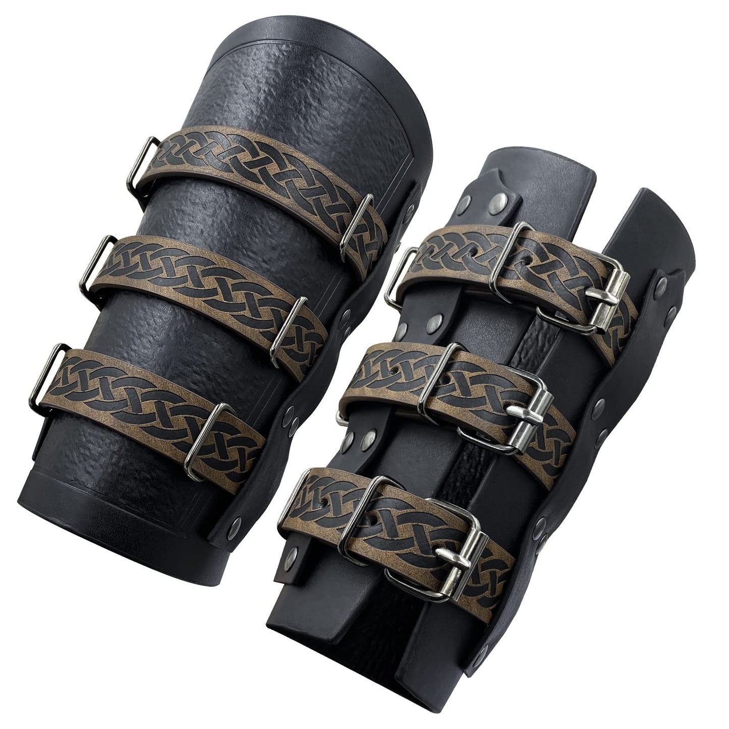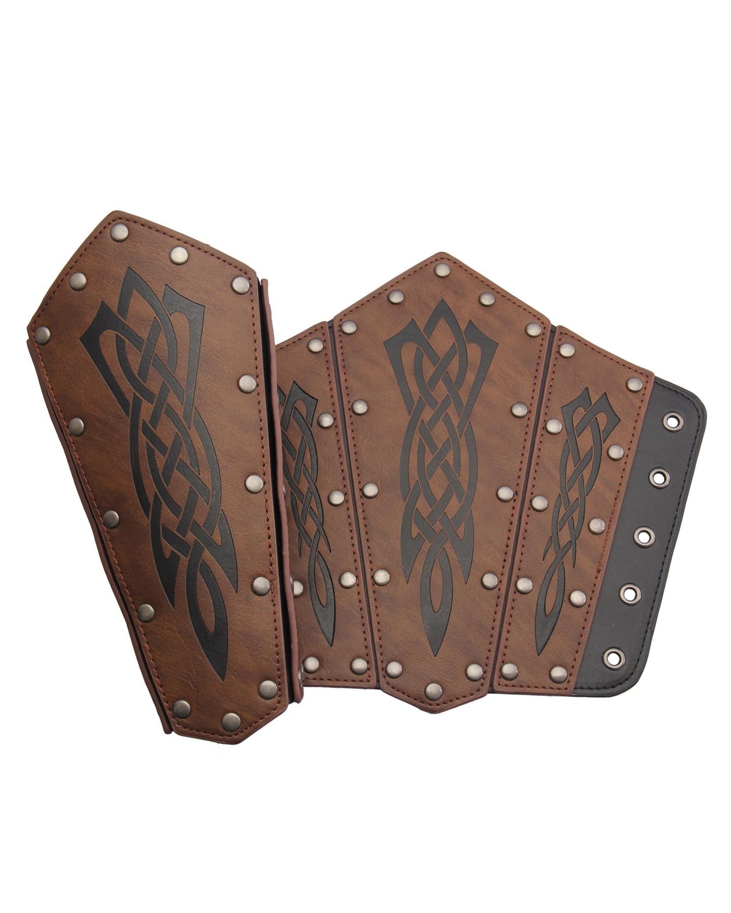Leather Gauntlet Wristband Medieval Bracers Viking Wrist Guards Archery Guards Bracers Wide Arm Armor Cuff for Women Men 2PCS