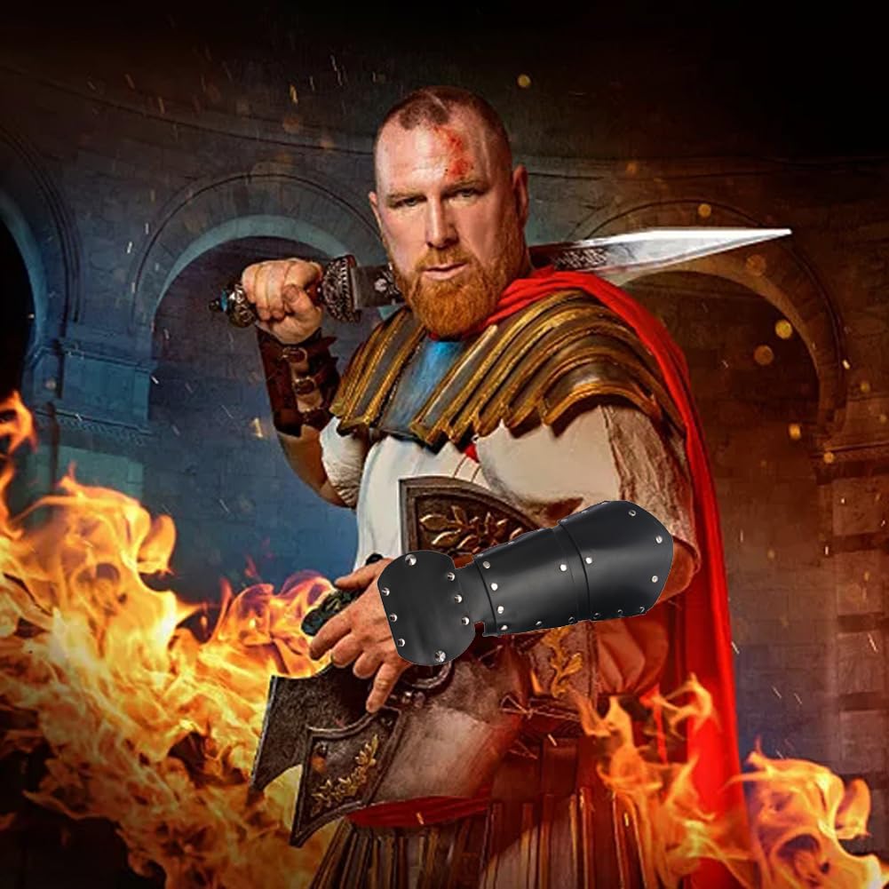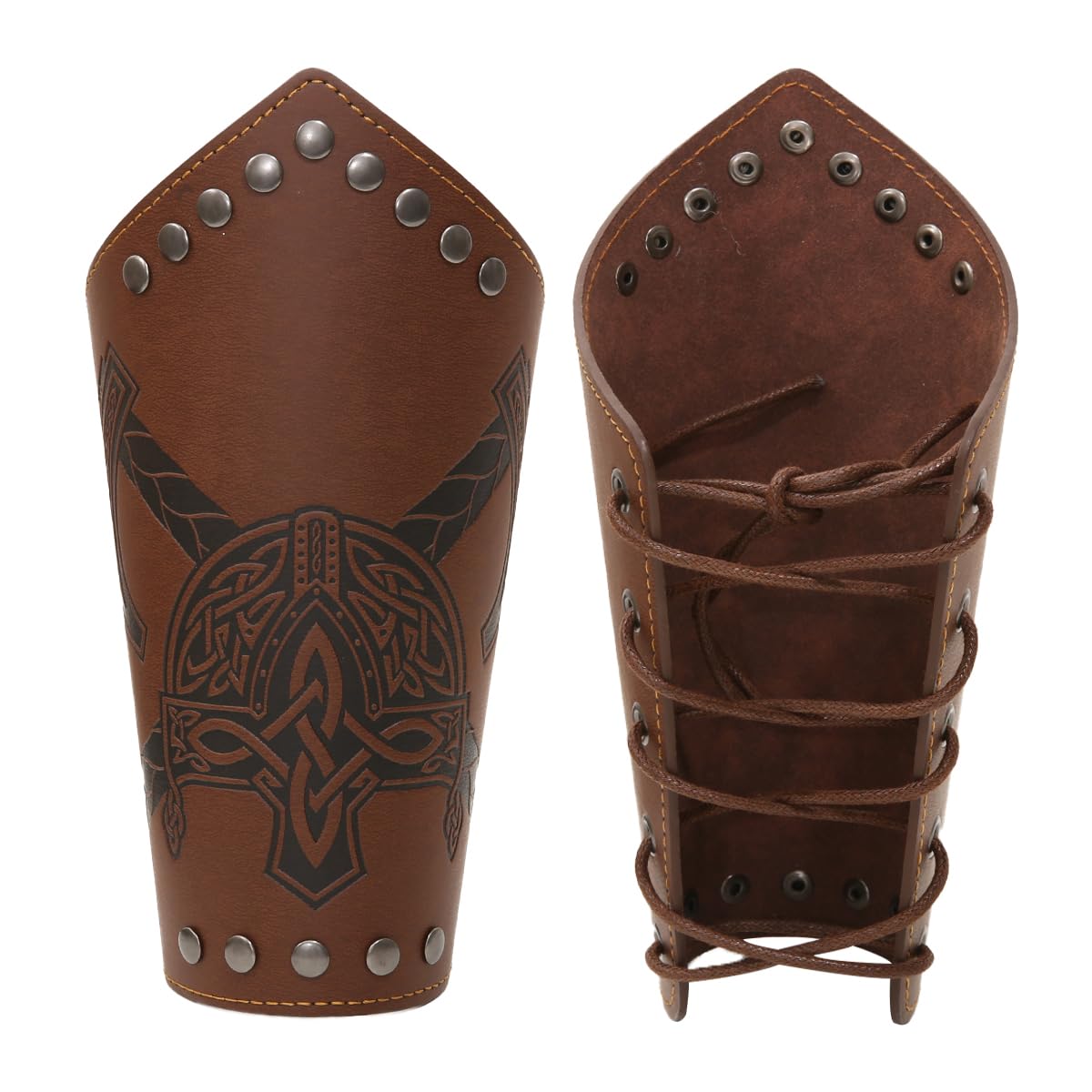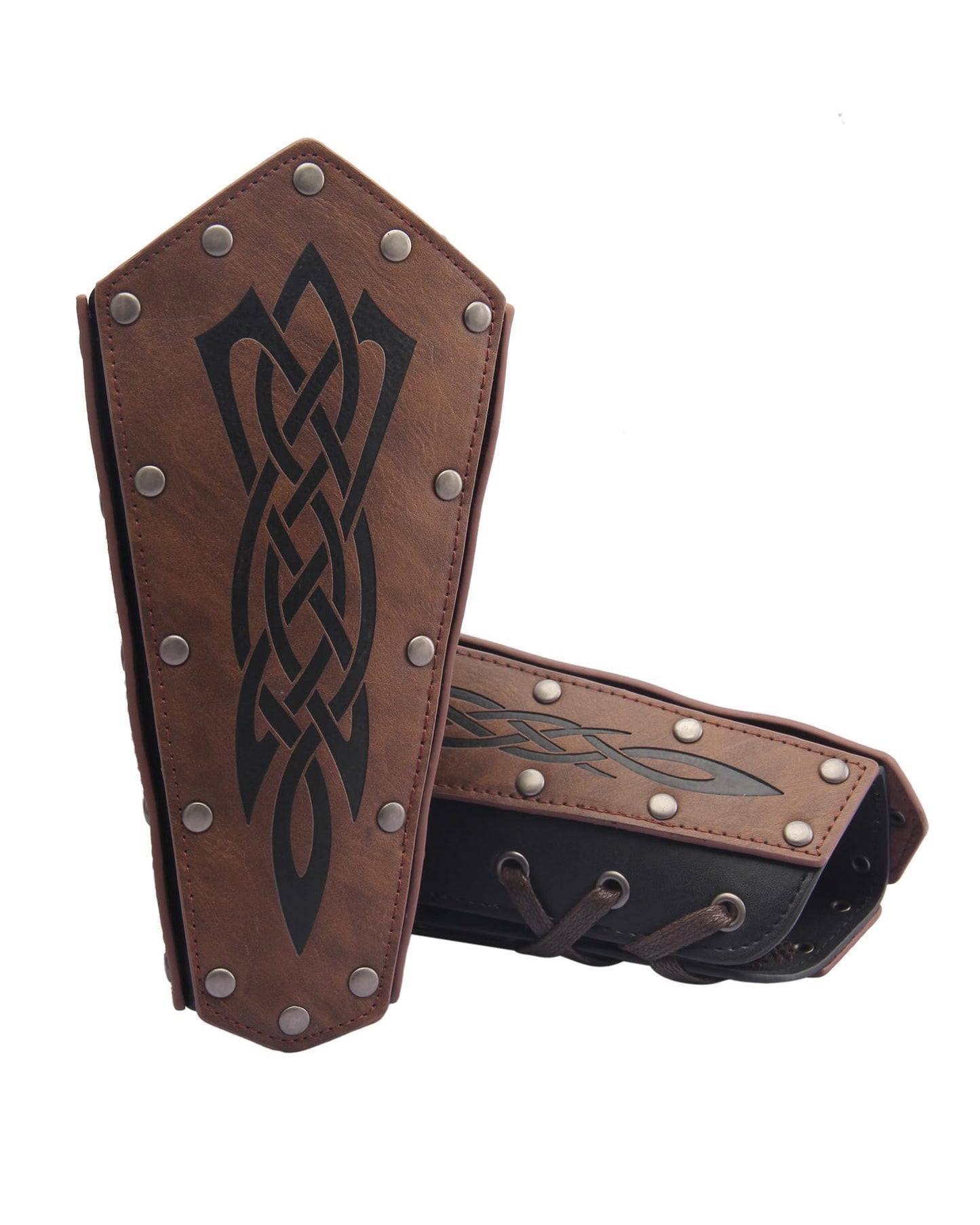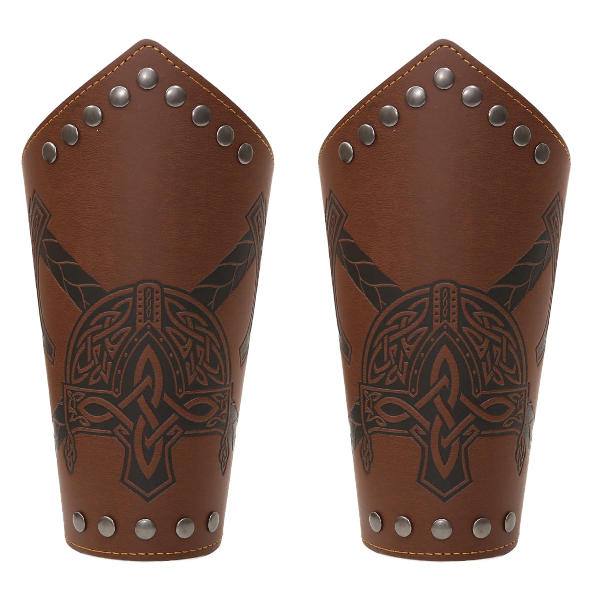 Leather Gauntlet Wristband Medieval Bracers Viking Wrist Guards Archery Guards Bracers Wide Arm Armor Cuff for Women Men 2PCS