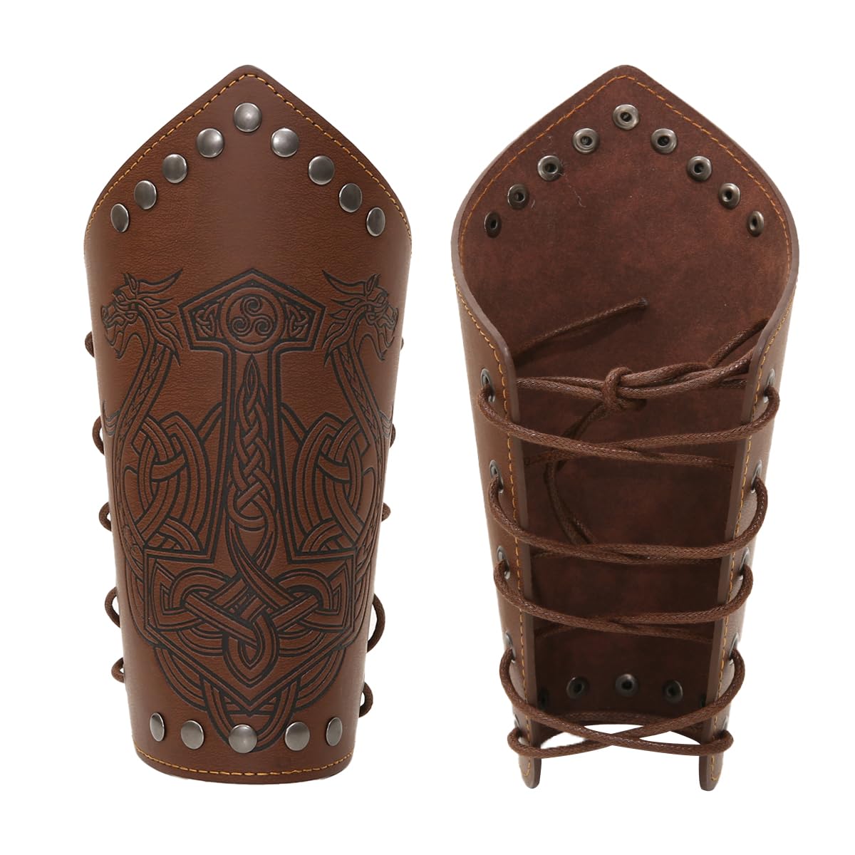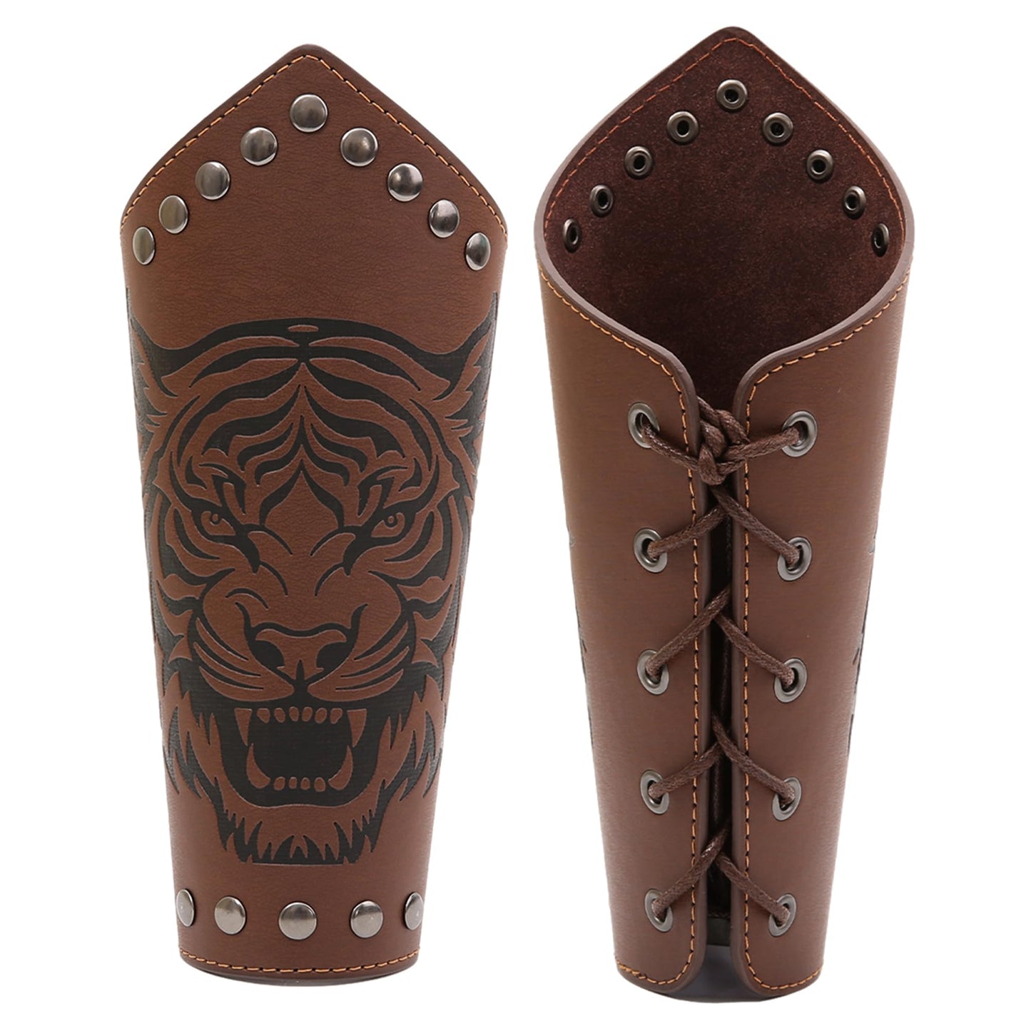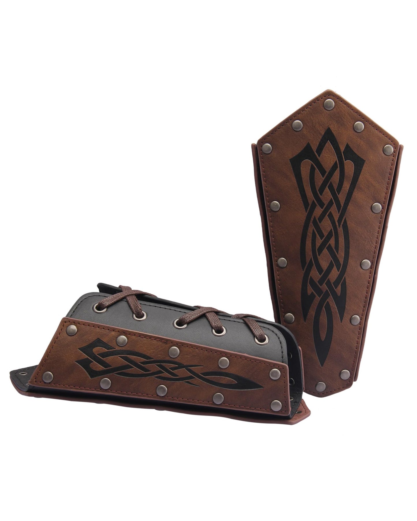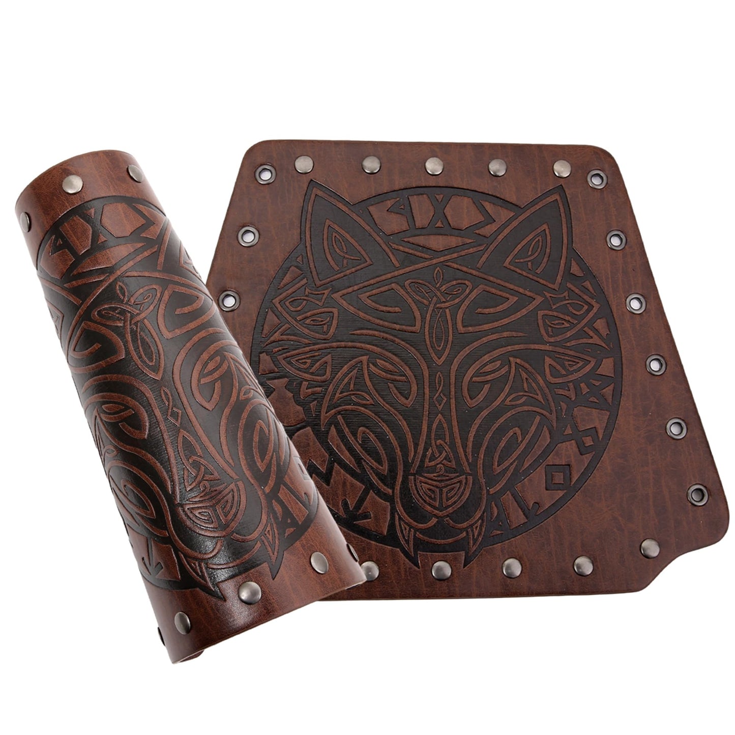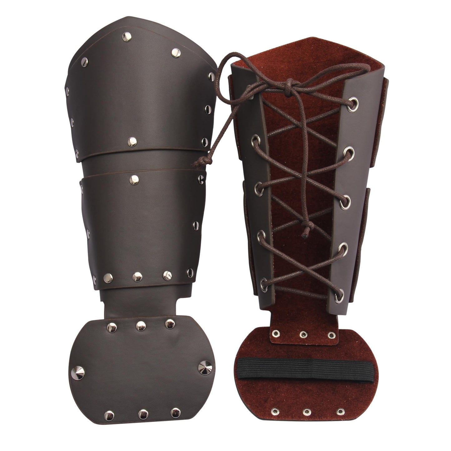 Leather Gauntlet Wristband Medieval Bracers Viking Wrist Guards Archery Guards Bracers Wide Arm Armor Cuff for Women Men 2PCS