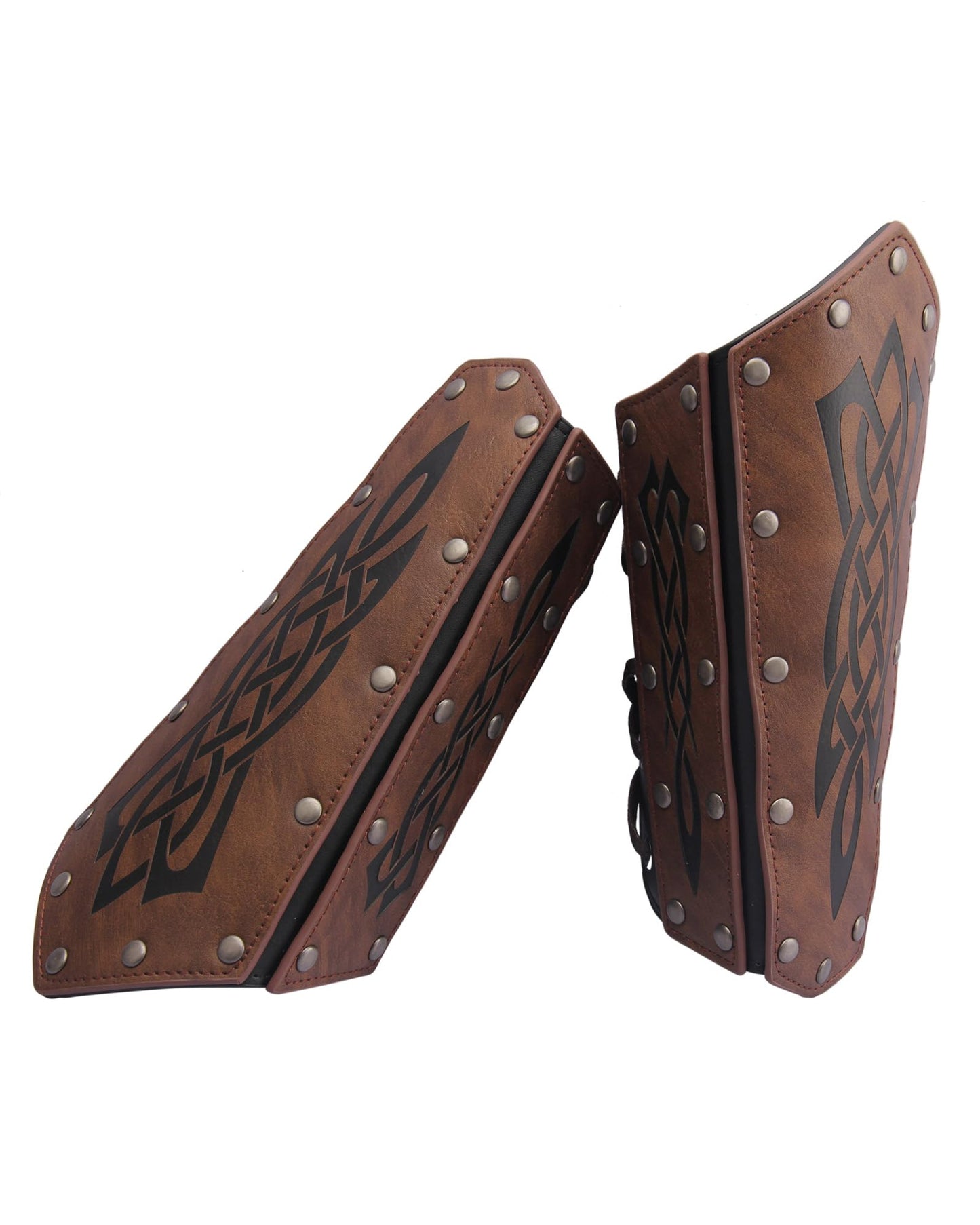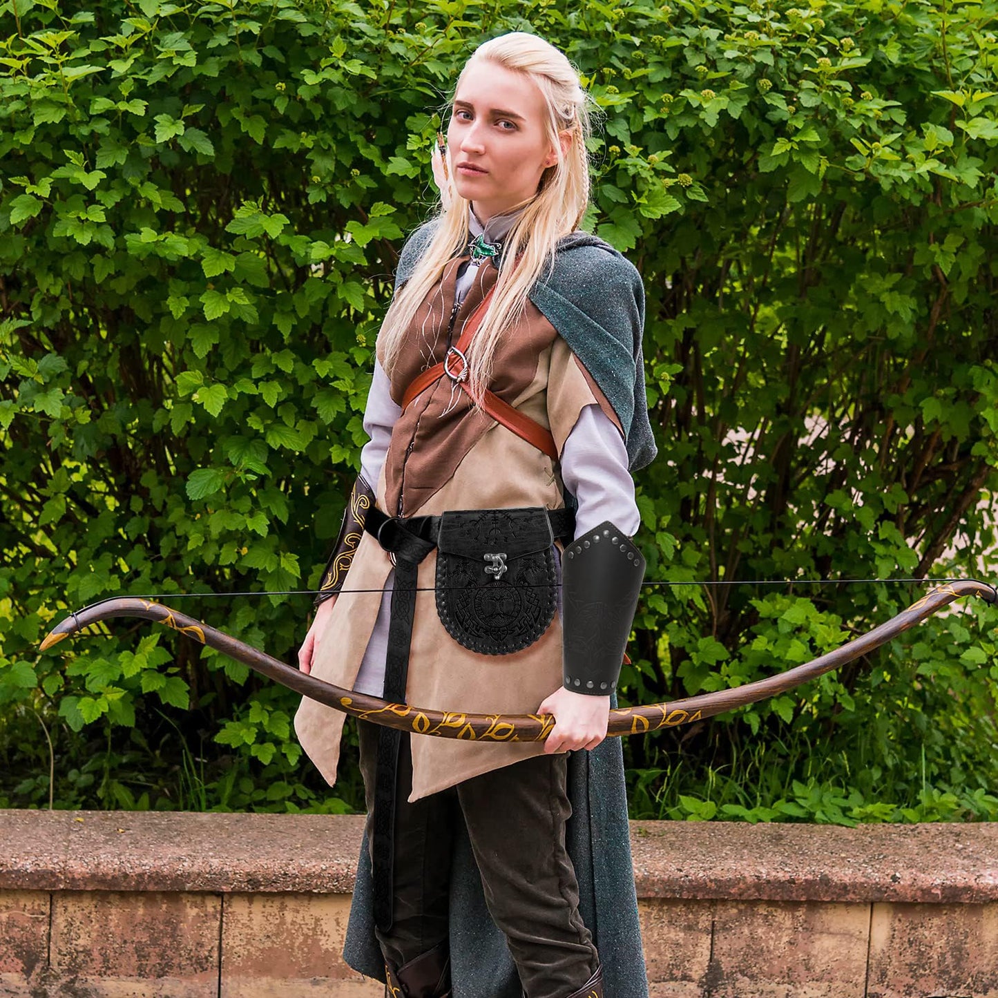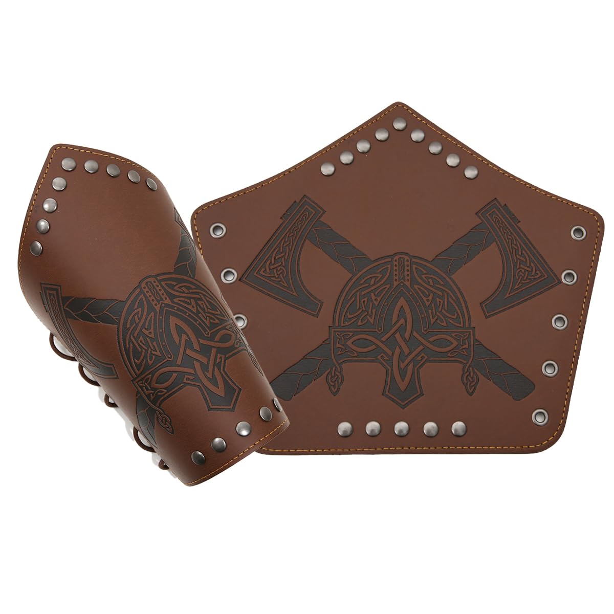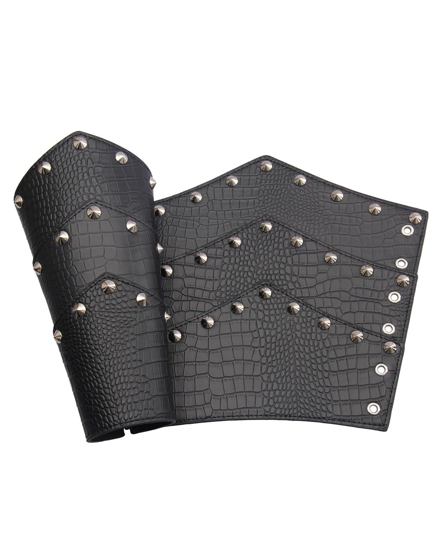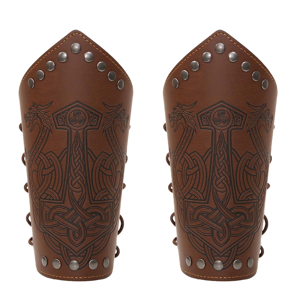 Leather Gauntlet Wristband Medieval Bracers Viking Wrist Guards Archery Guards Bracers Wide Arm Armor Cuff for Women Men 2PCS