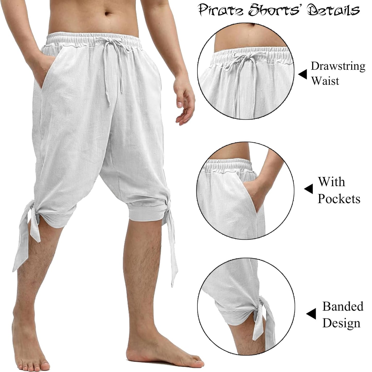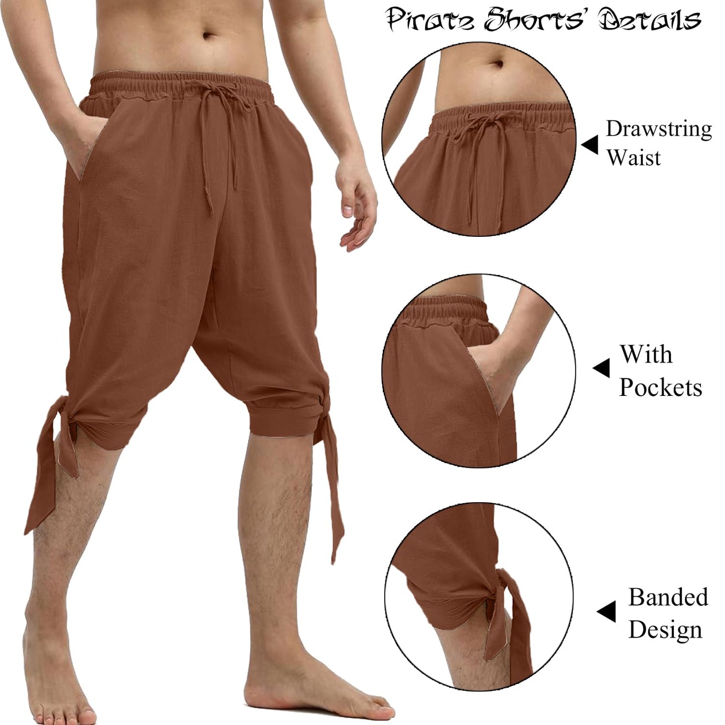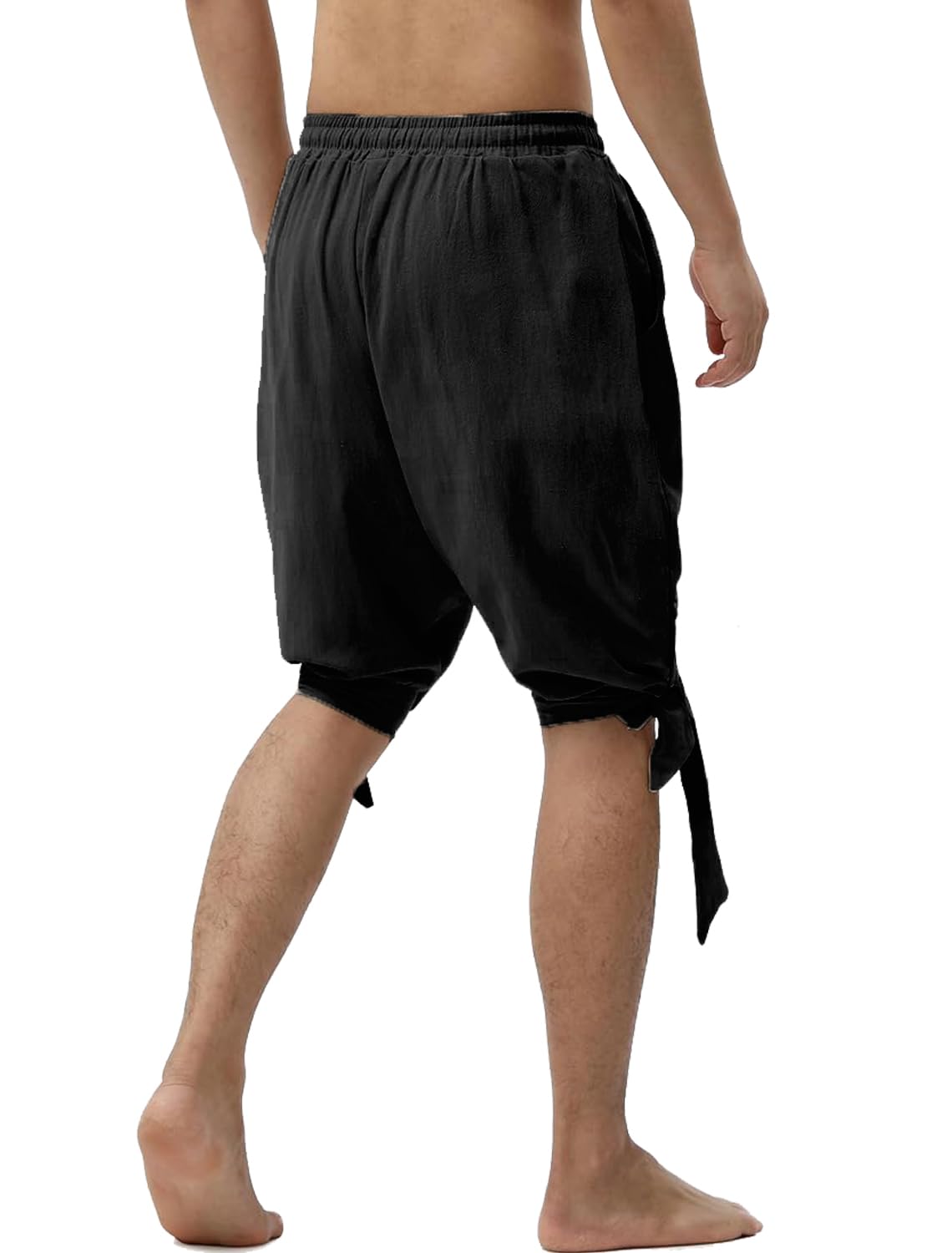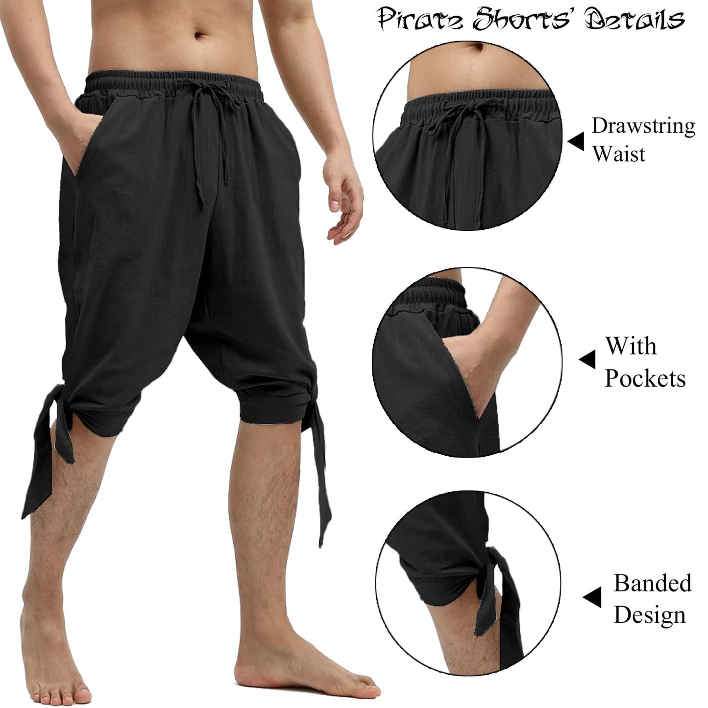 Men's Ankle Banded Pants Medieval Viking Navigator Pirate Costume Trousers Renaissance Gothic Pants Large Black-short