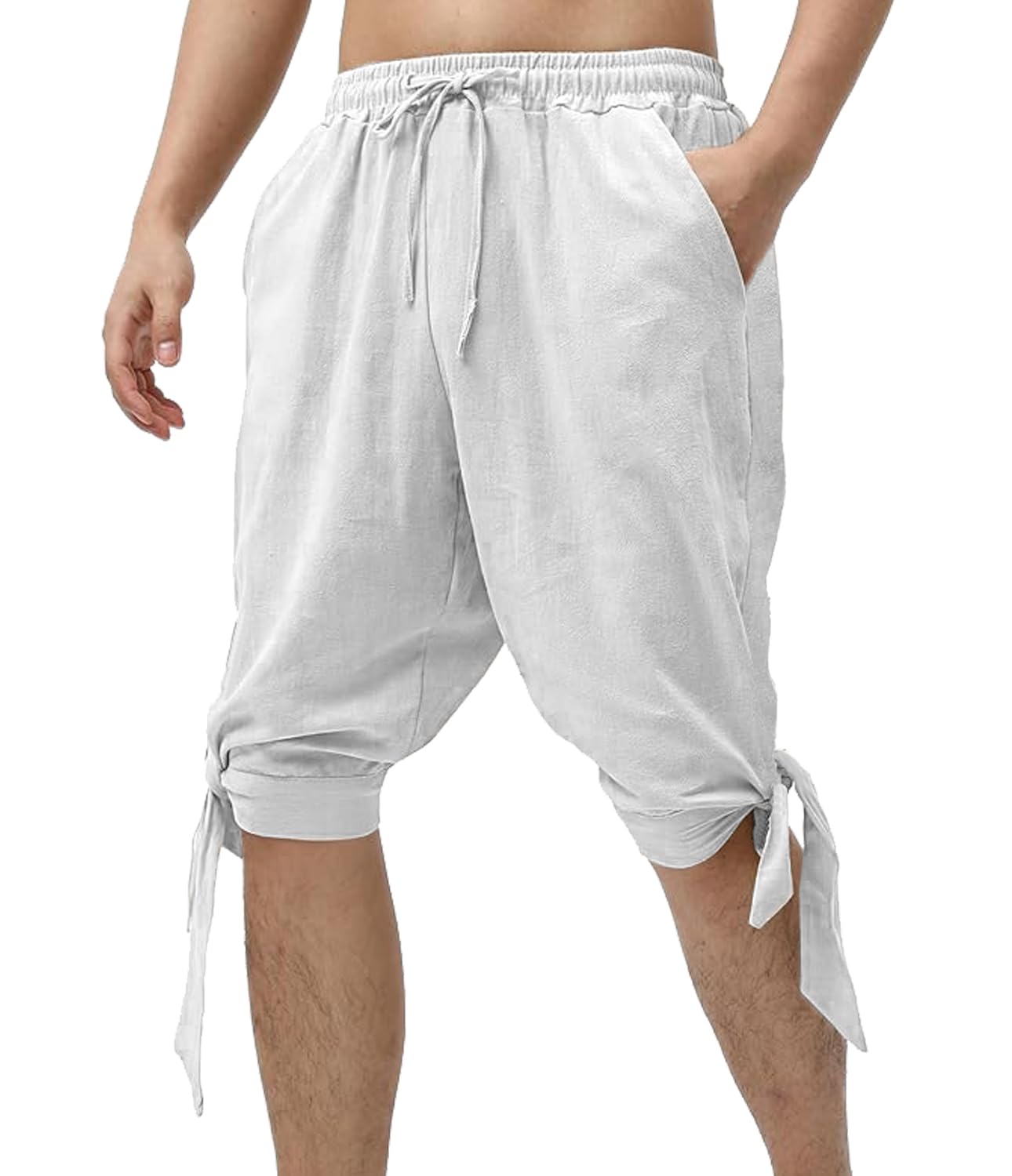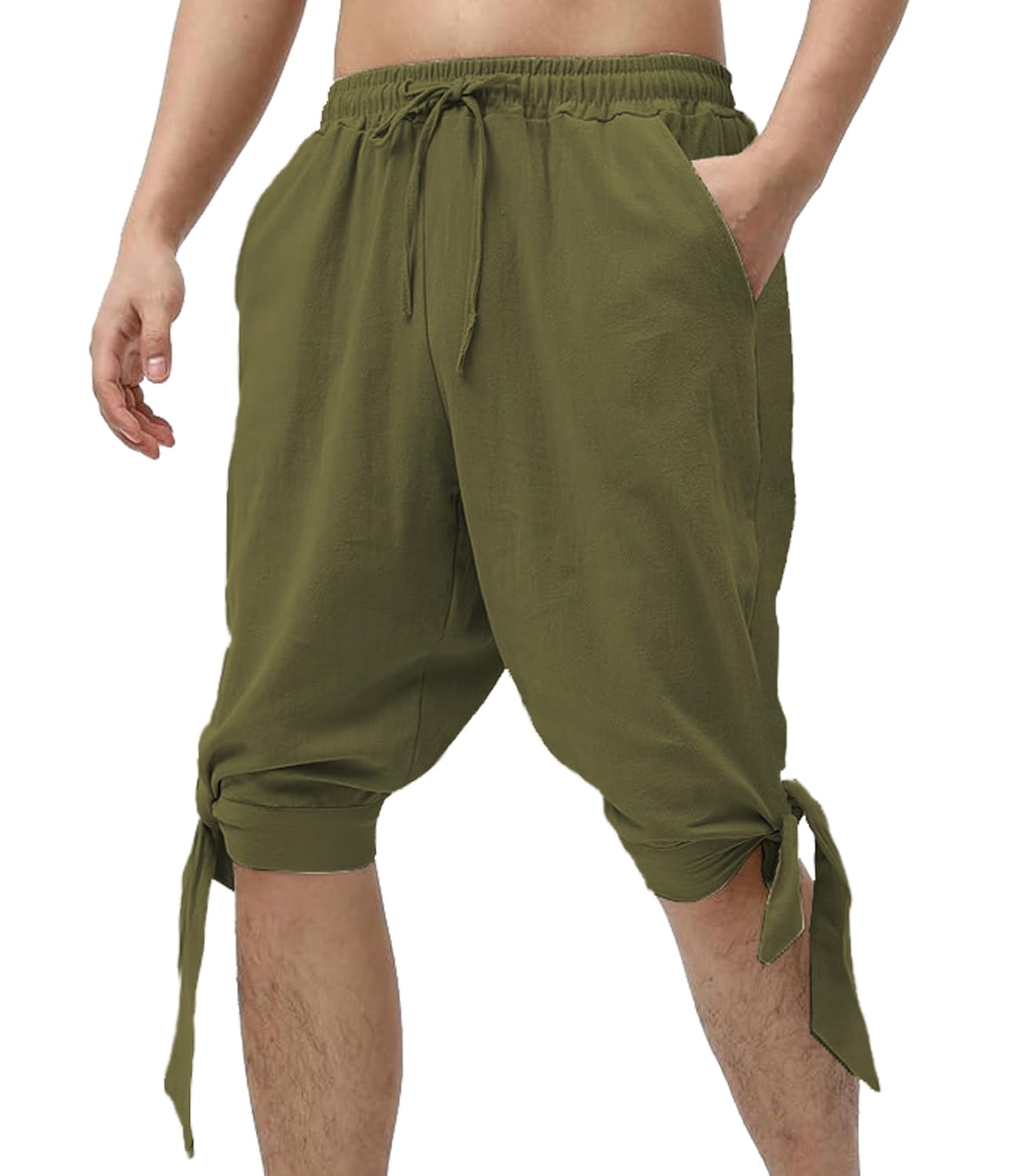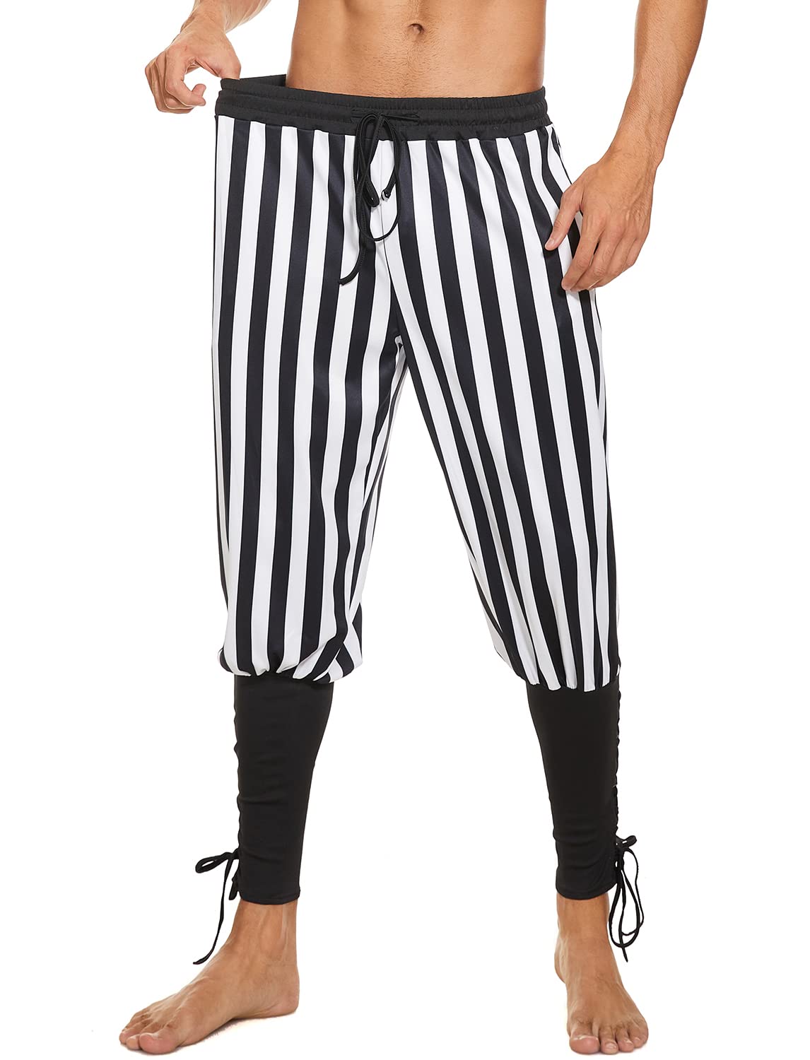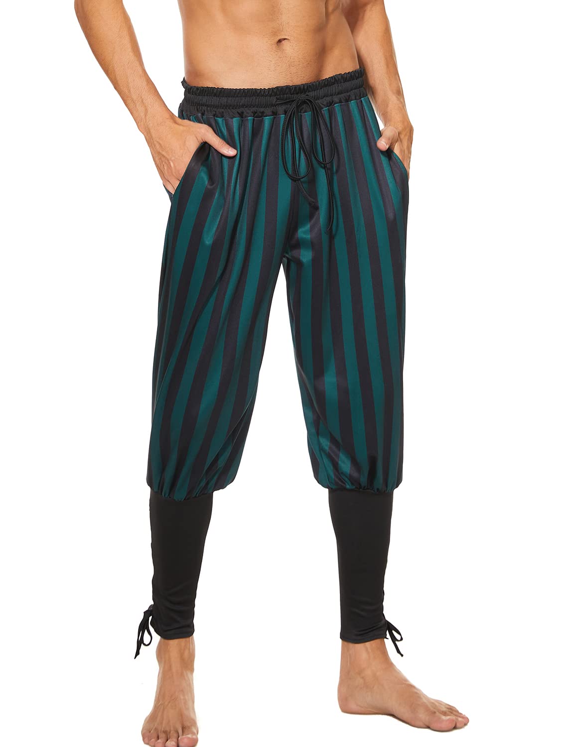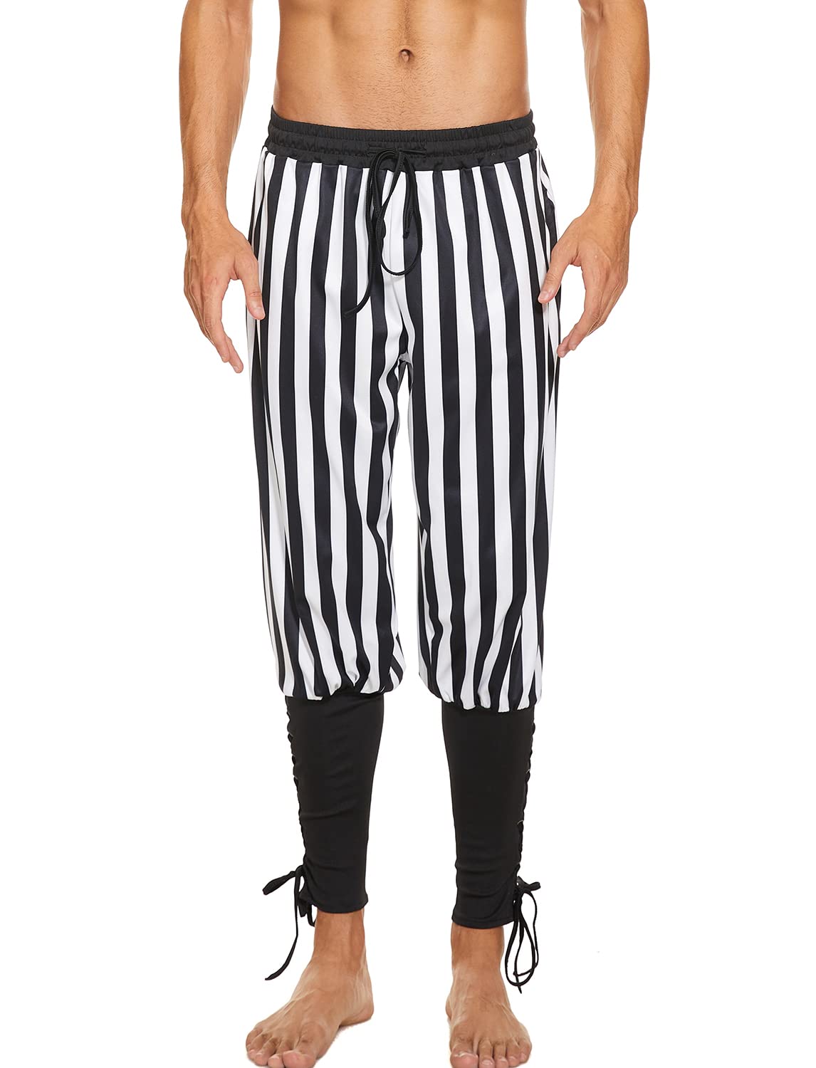 Men's Ankle Banded Pants Medieval Viking Navigator Pirate Costume Trousers Renaissance Gothic Pants Large Black-short