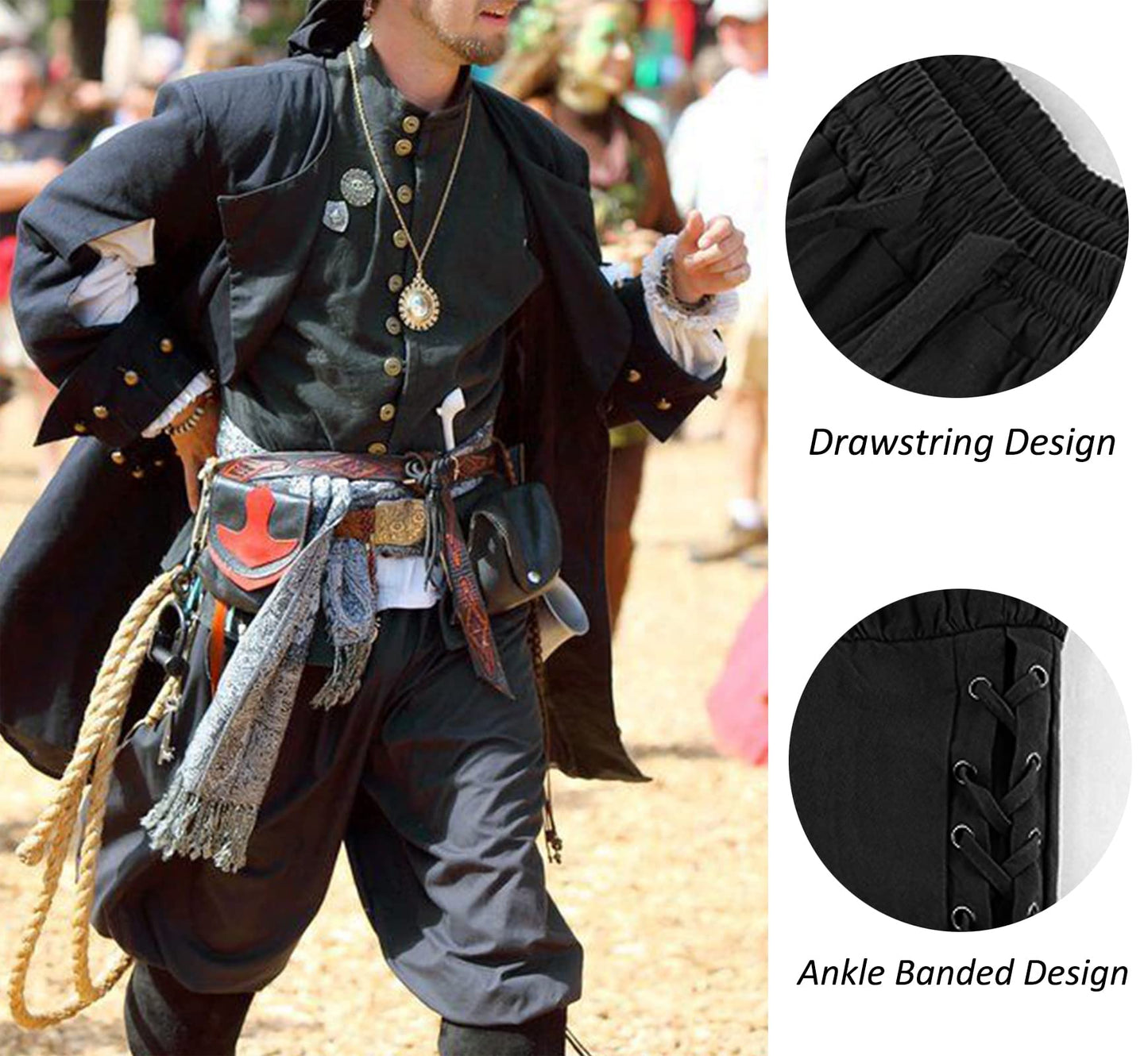 Men's Ankle Banded Pants Medieval Viking Navigator Pirate Costume Trousers Renaissance Gothic Pants