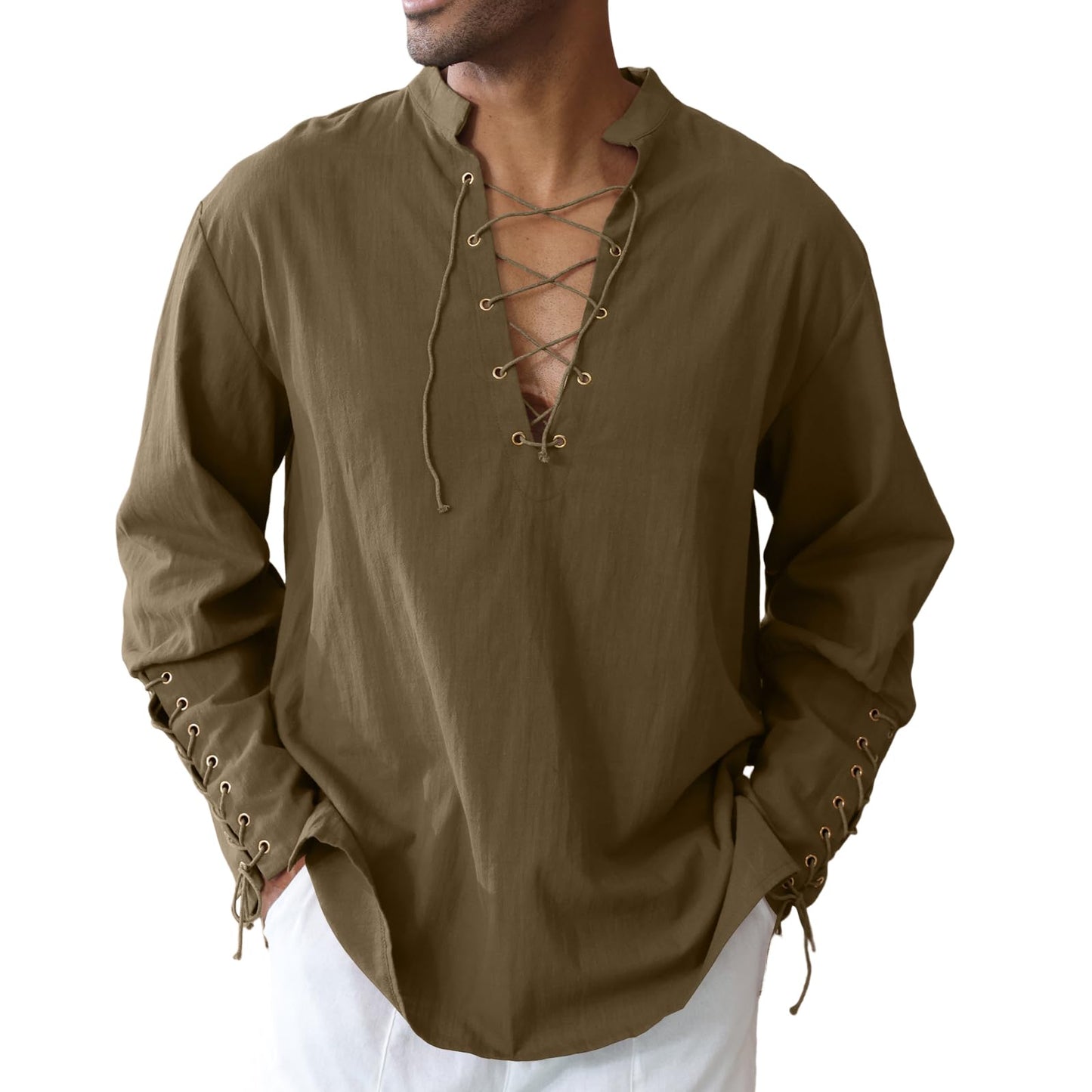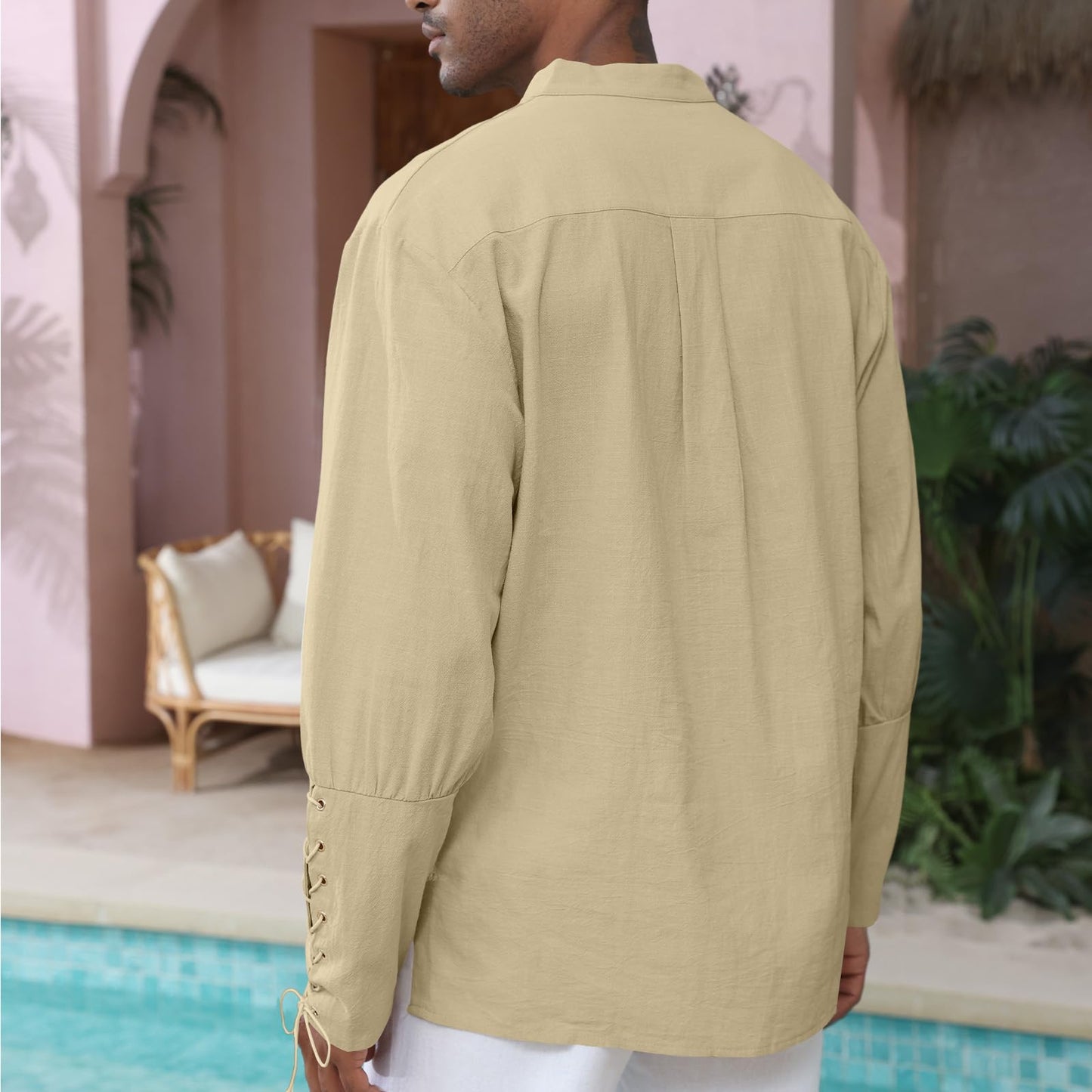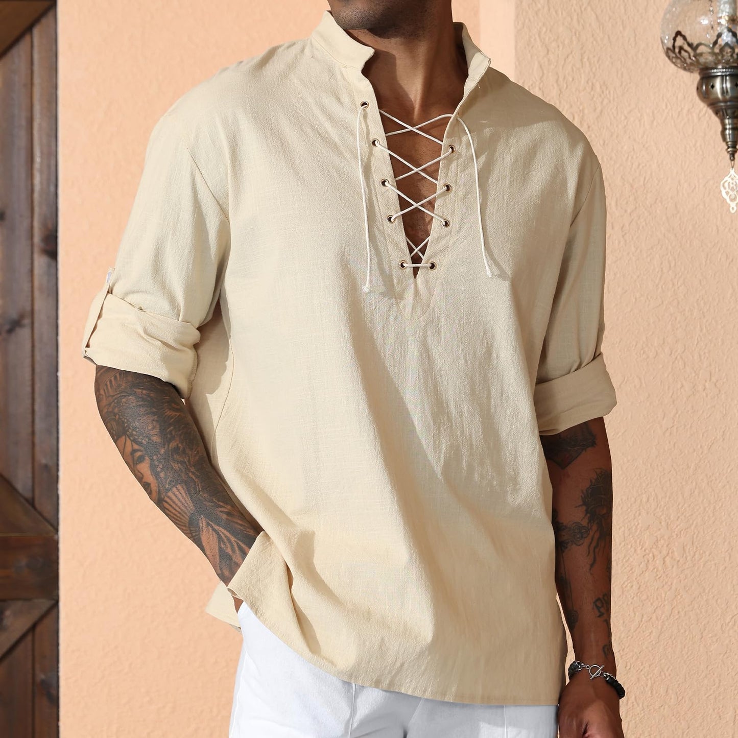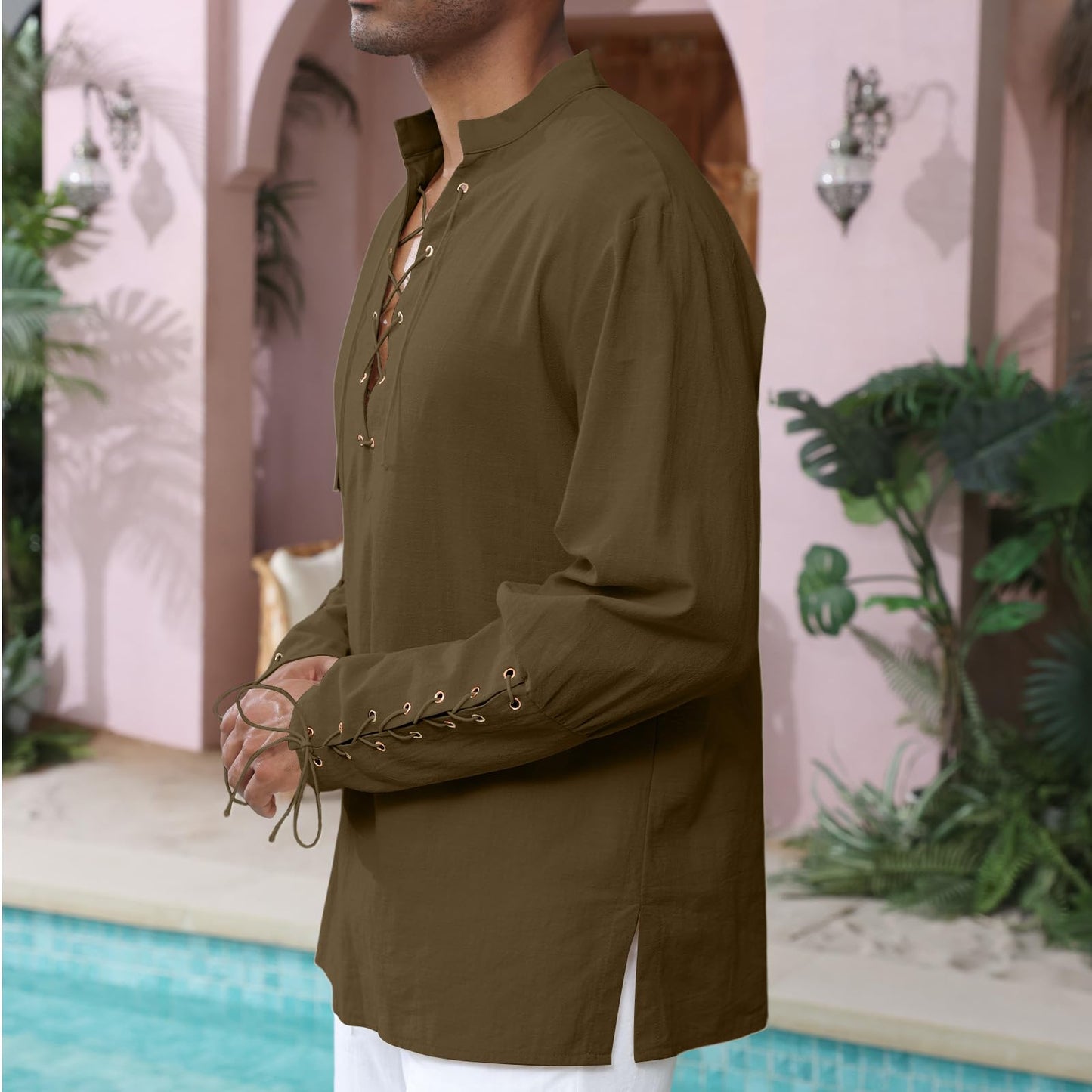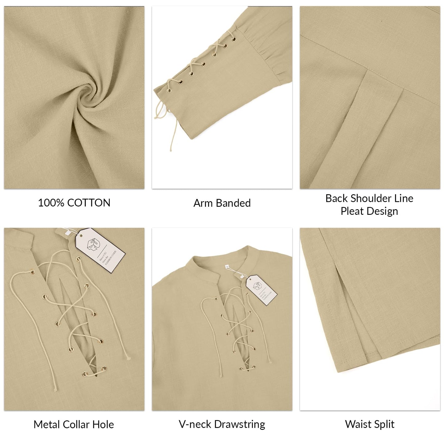 Men's Cotton Linen Shirt Drawstring Arm Banded Tops Medieval Viking Pirate Renaissance Halloween Costume