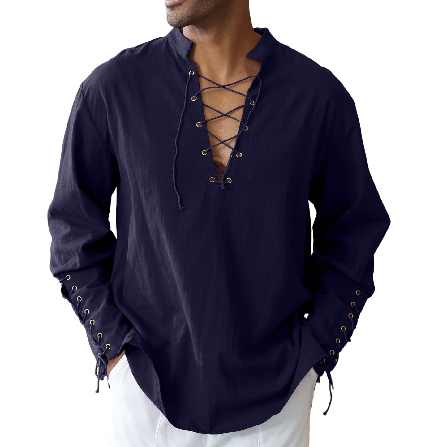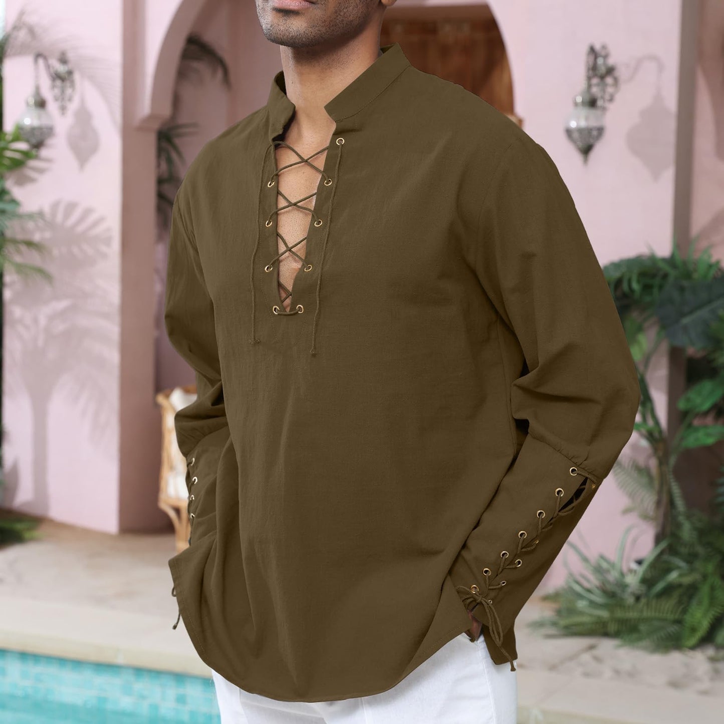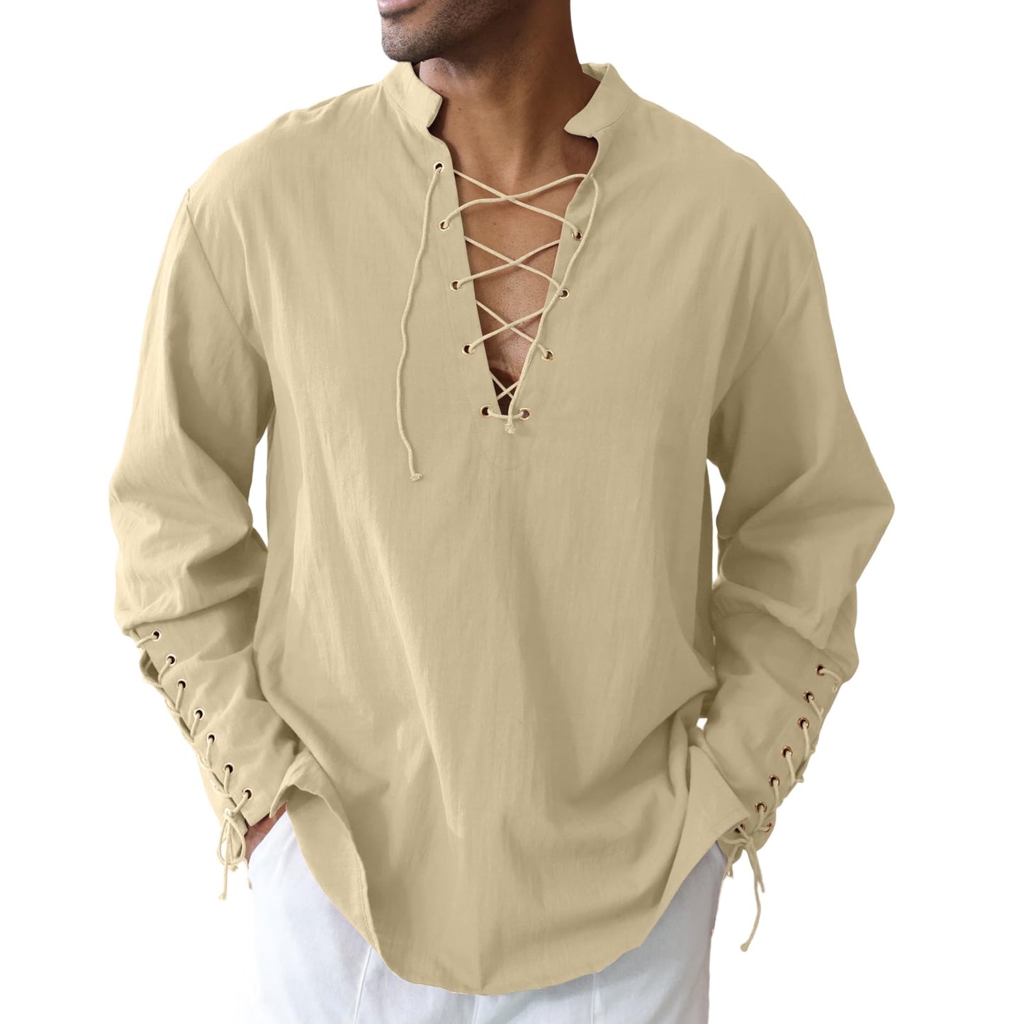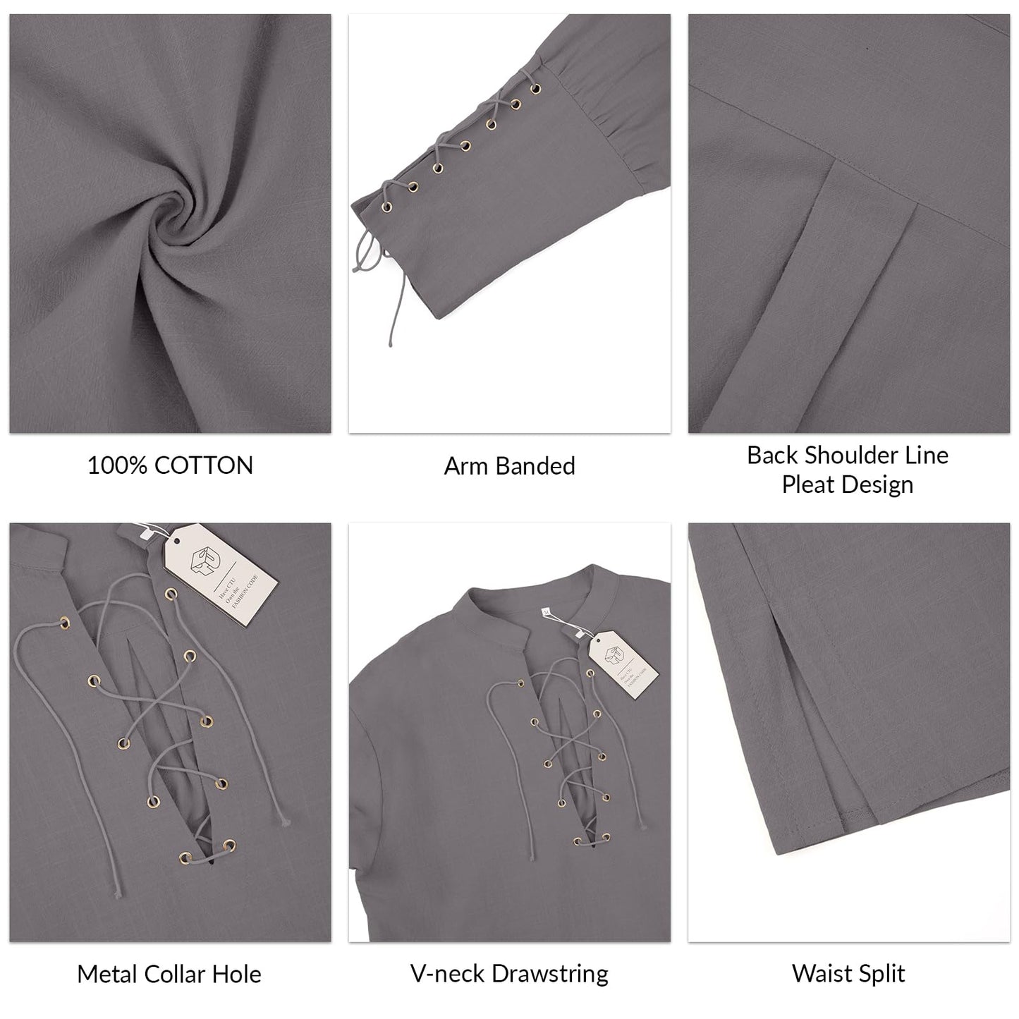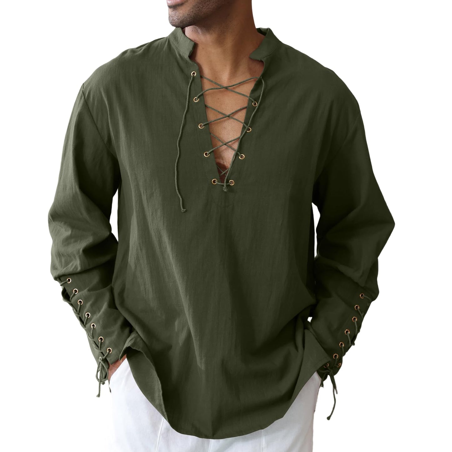 Men's Cotton Linen Shirt Drawstring Arm Banded Tops Medieval Viking Pirate Renaissance Halloween Costume