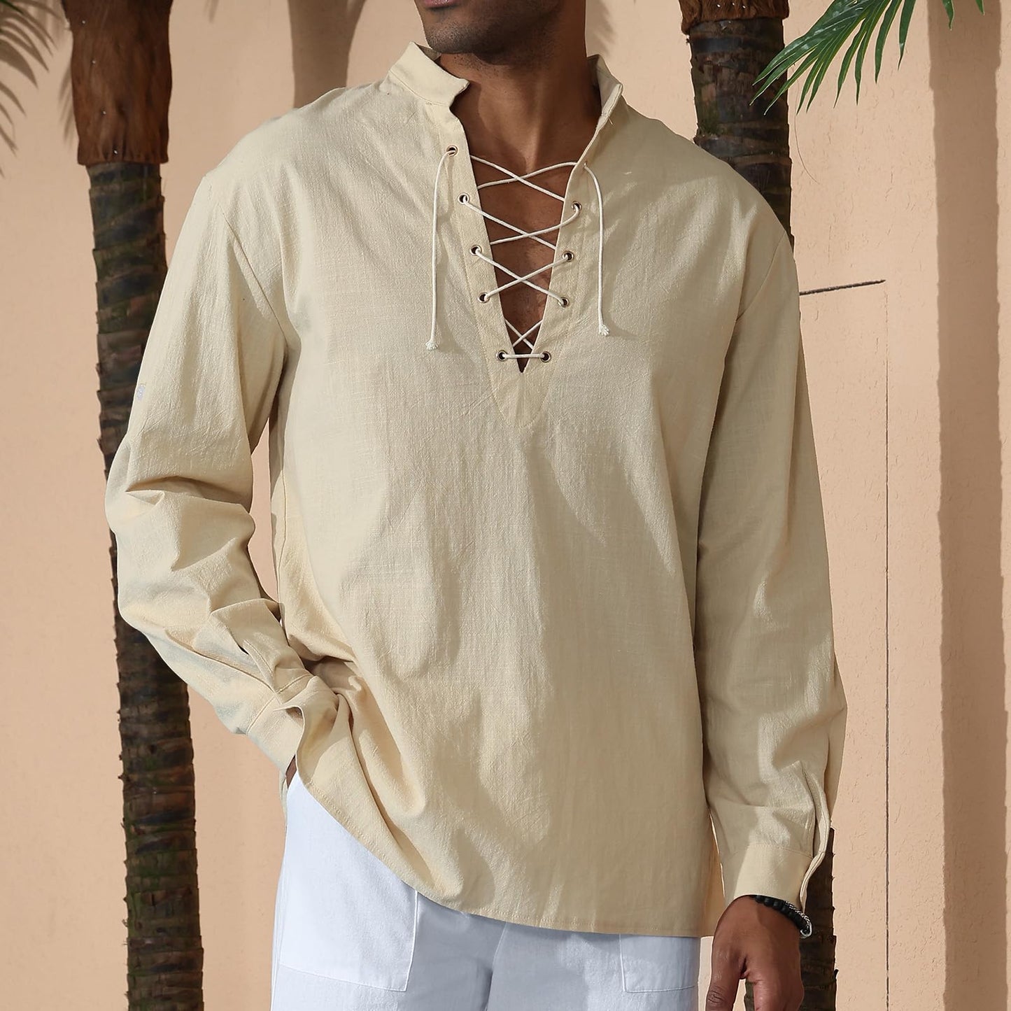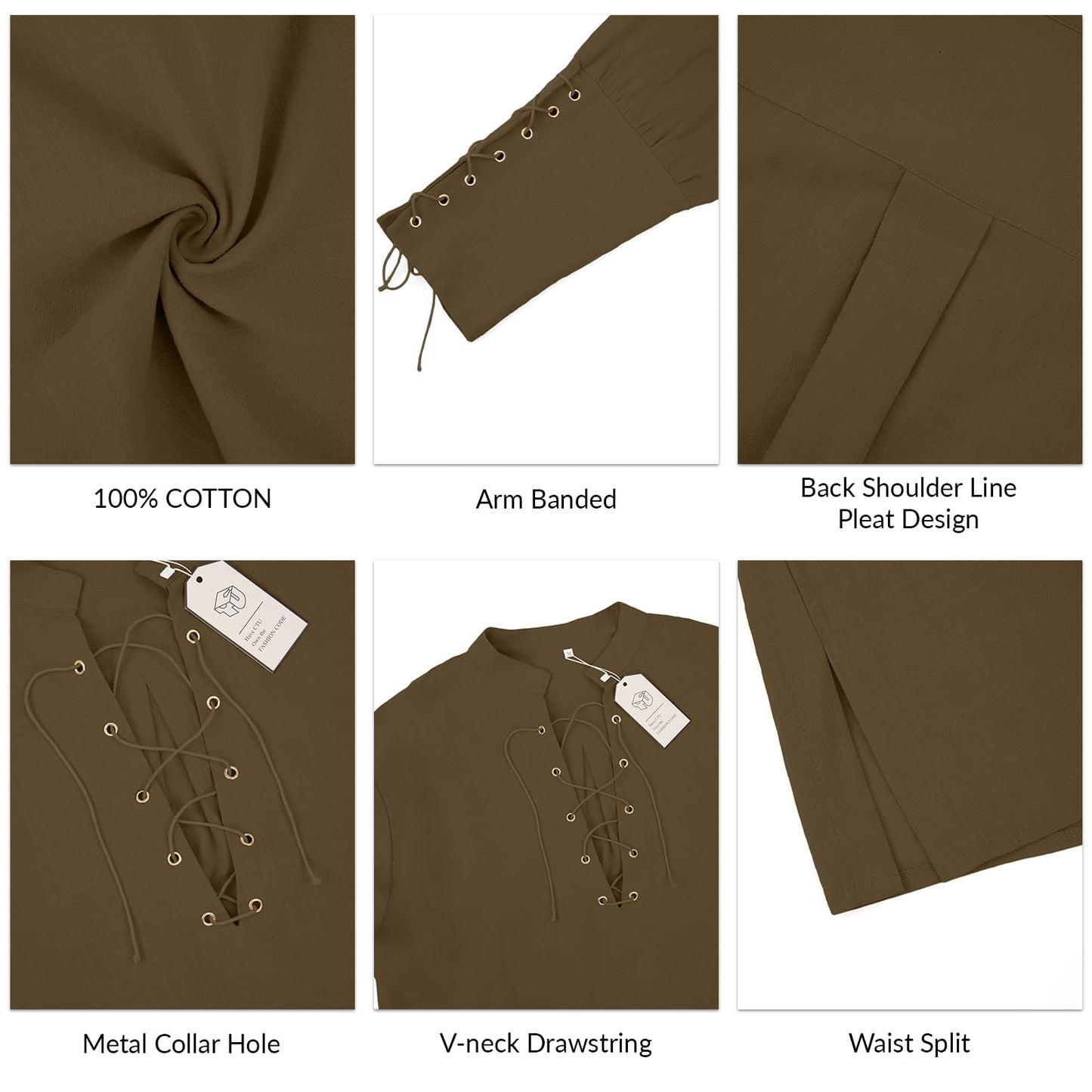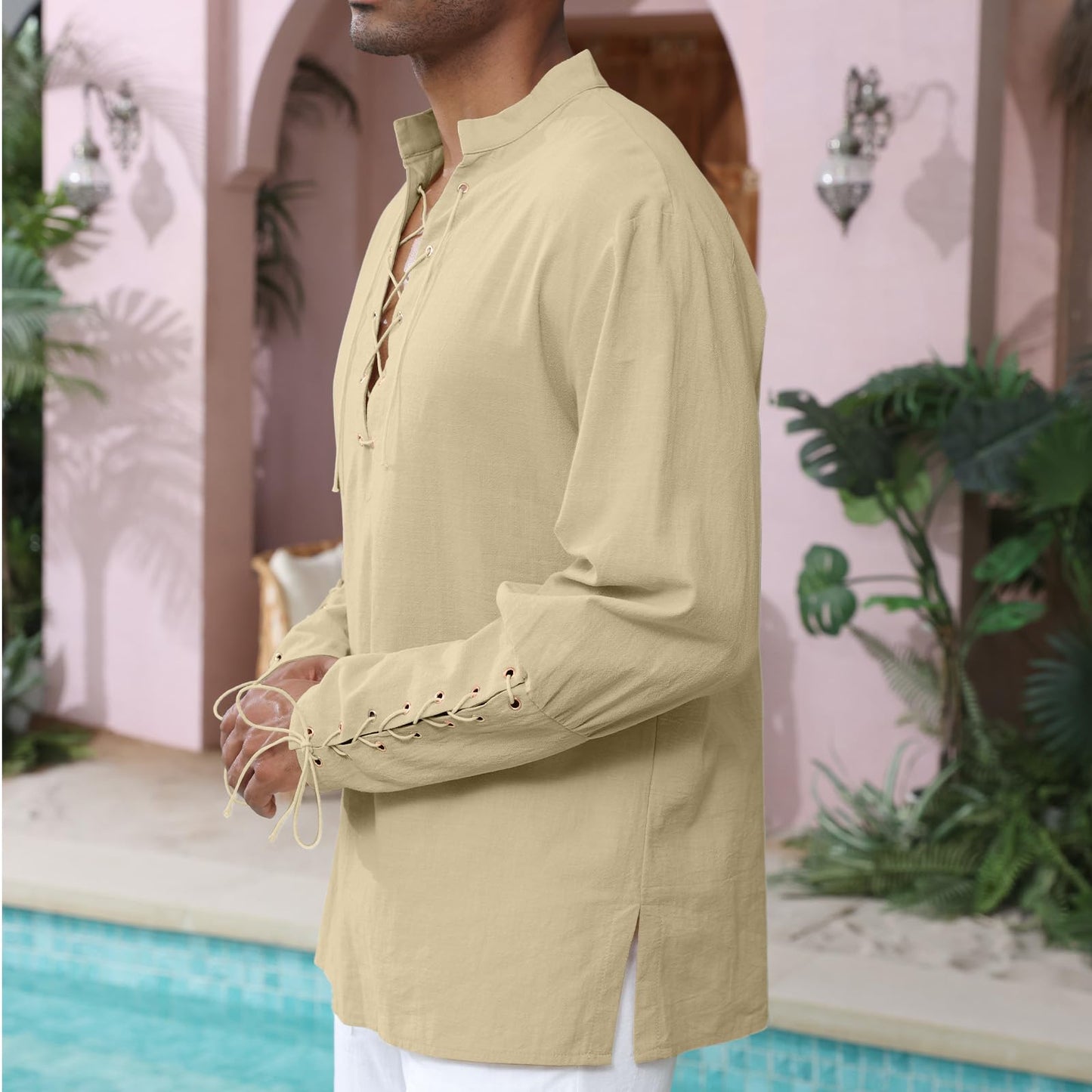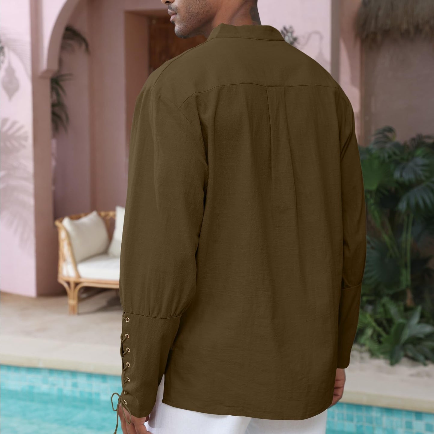 Men's Cotton Linen Shirt Drawstring Arm Banded Tops Medieval Viking Pirate Renaissance Halloween Costume