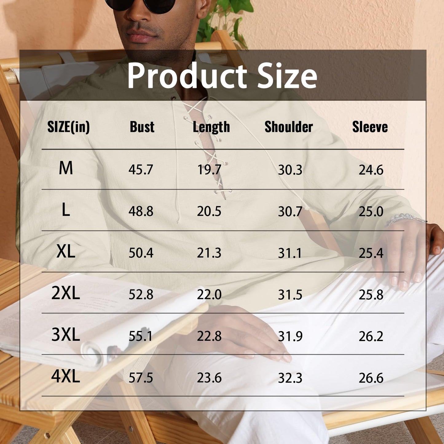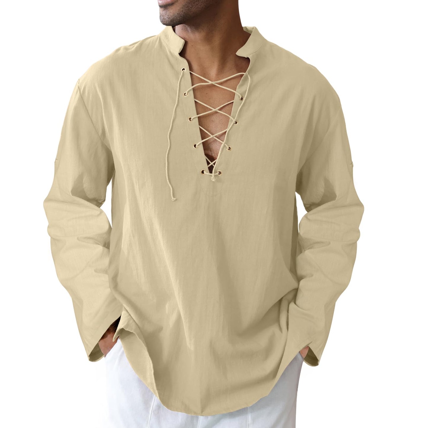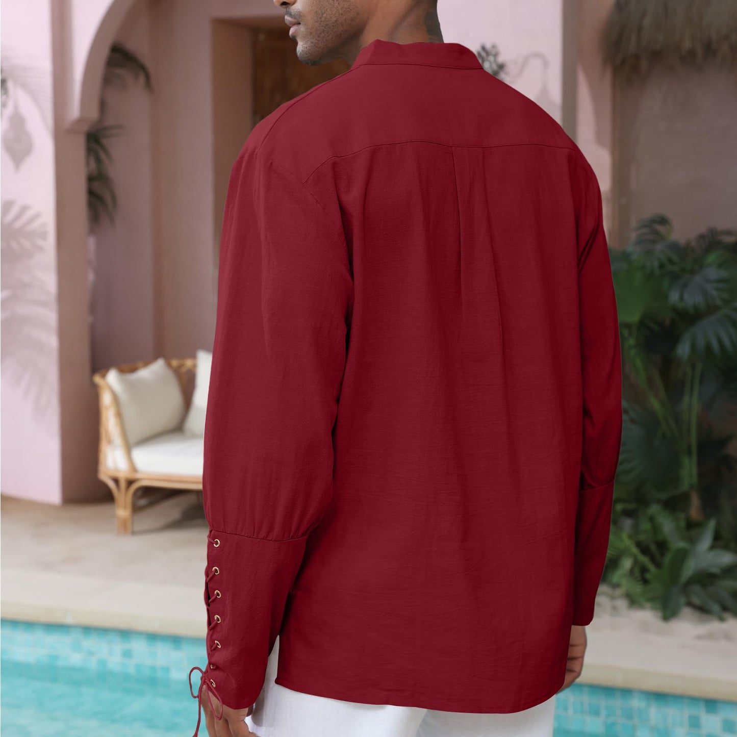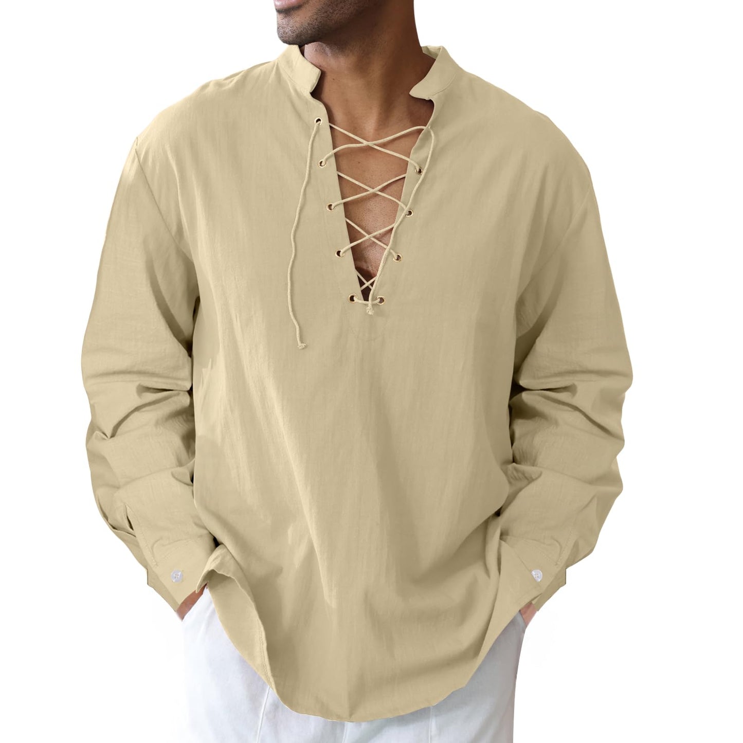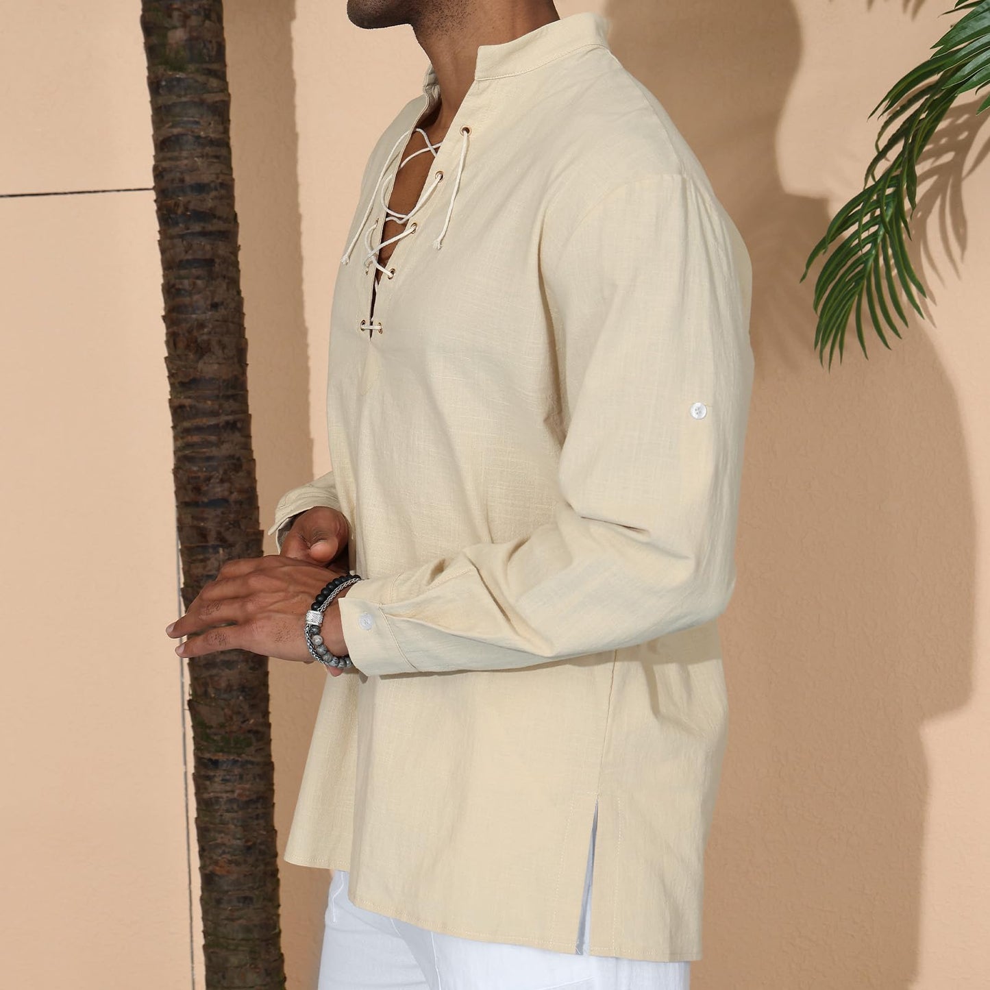 Men's Cotton Linen Shirt Drawstring Arm Banded Tops Medieval Viking Pirate Renaissance Halloween Costume