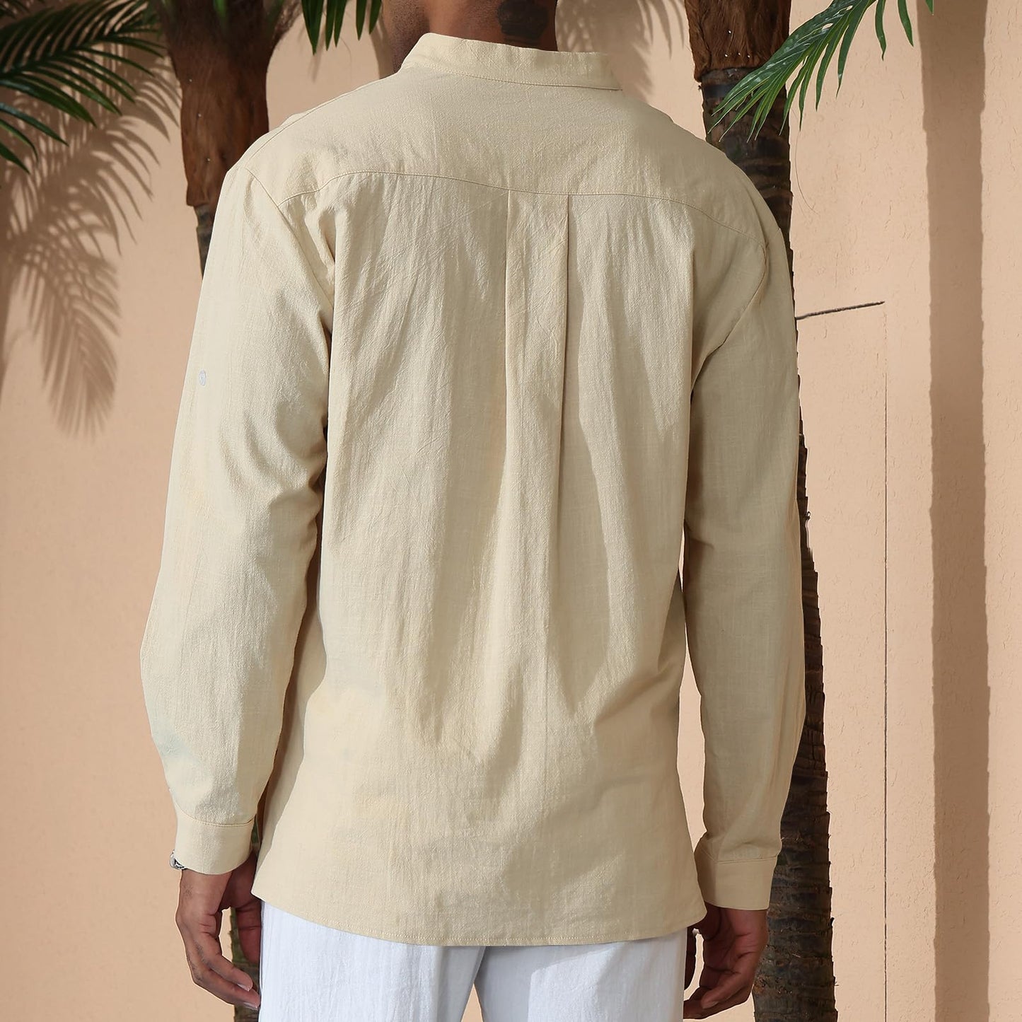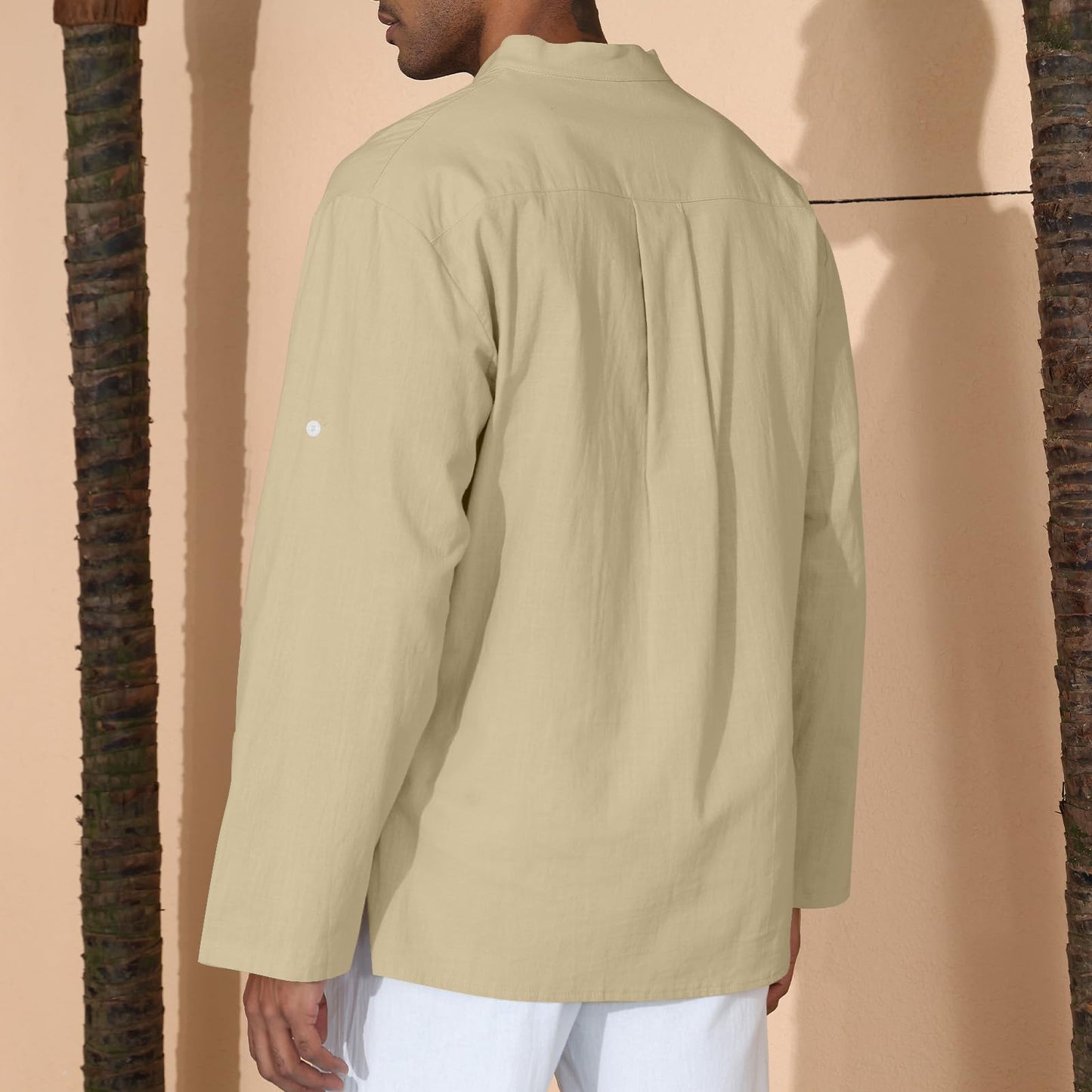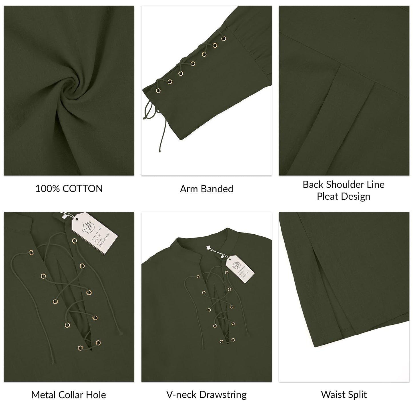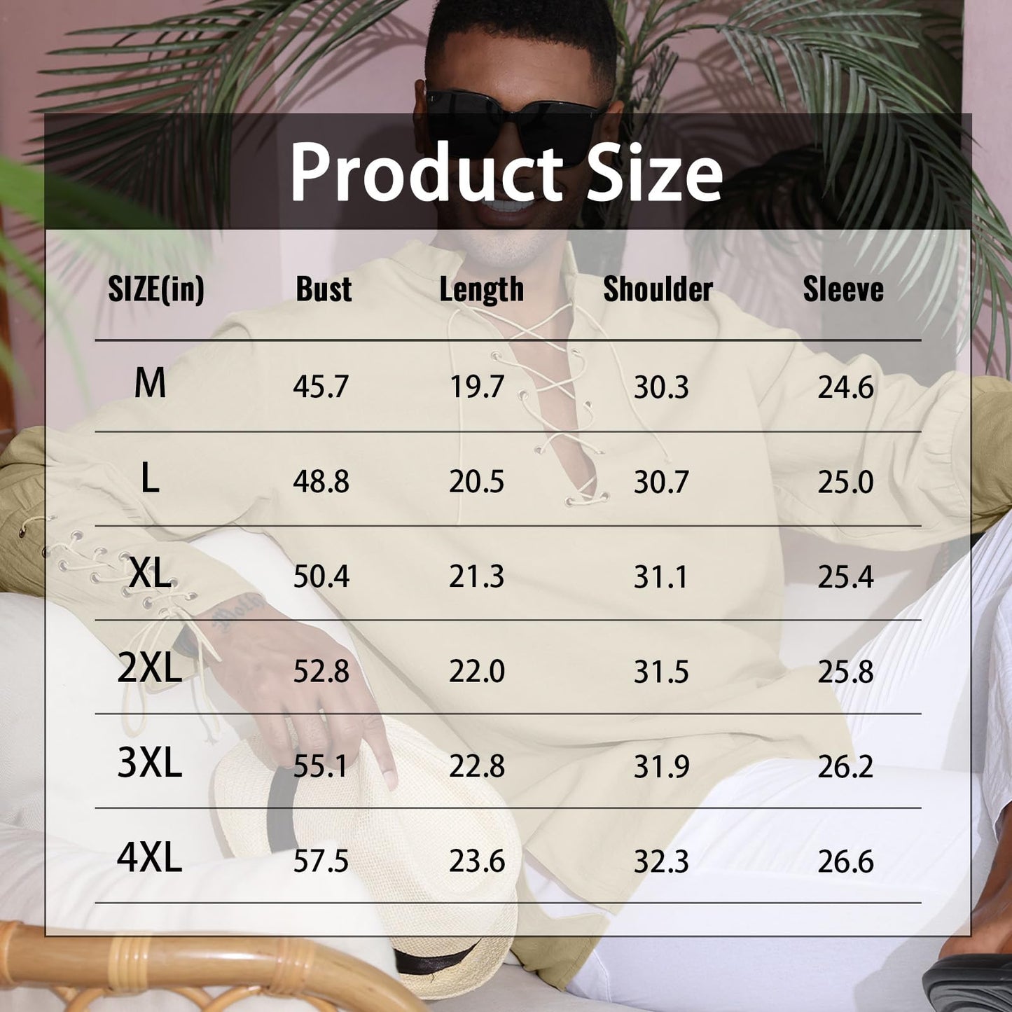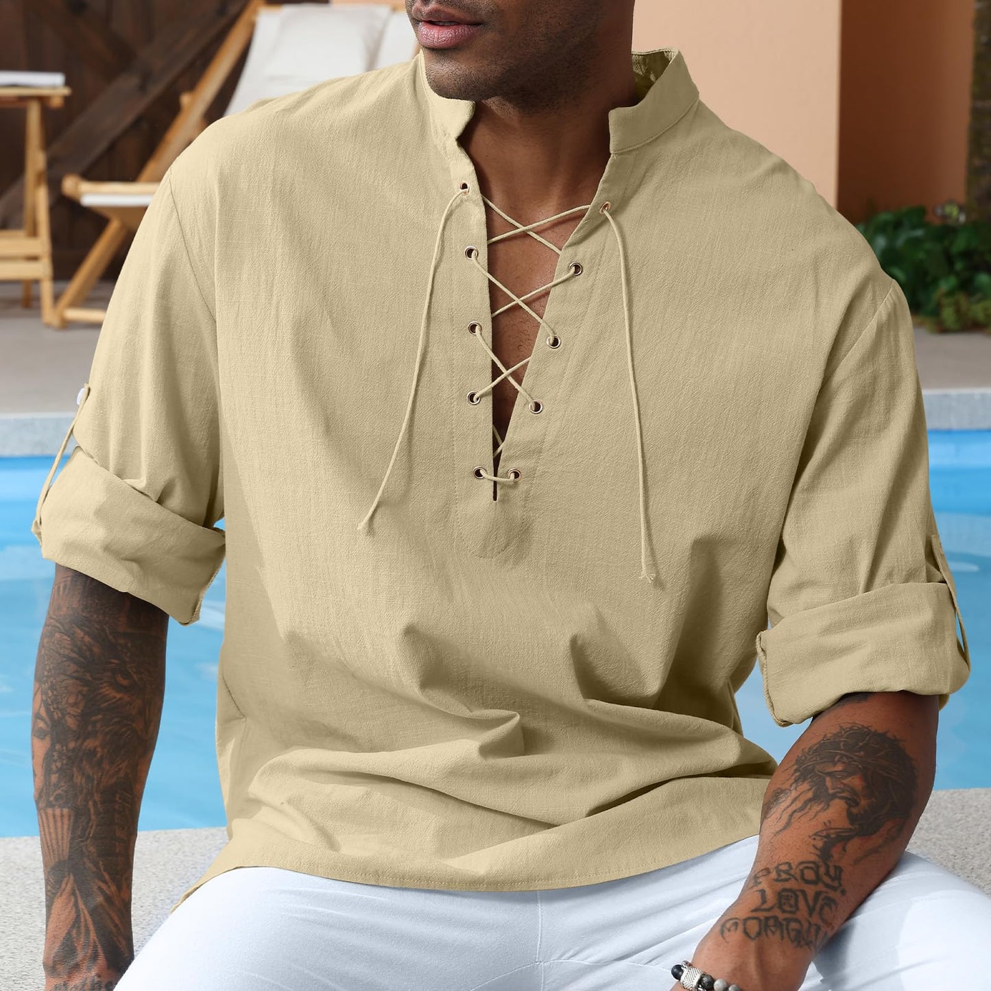 Men's Cotton Linen Shirt Drawstring Arm Banded Tops Medieval Viking Pirate Renaissance Halloween Costume