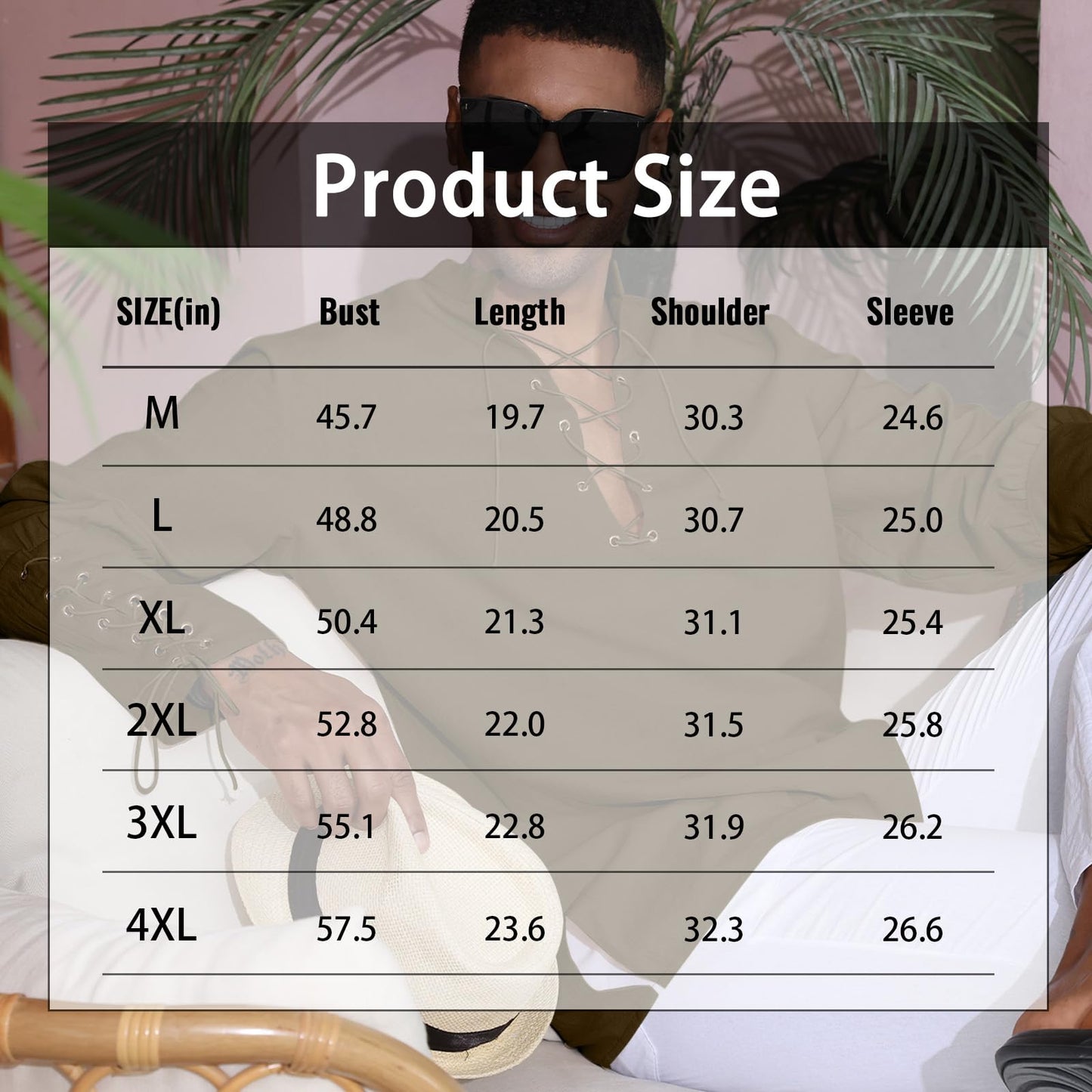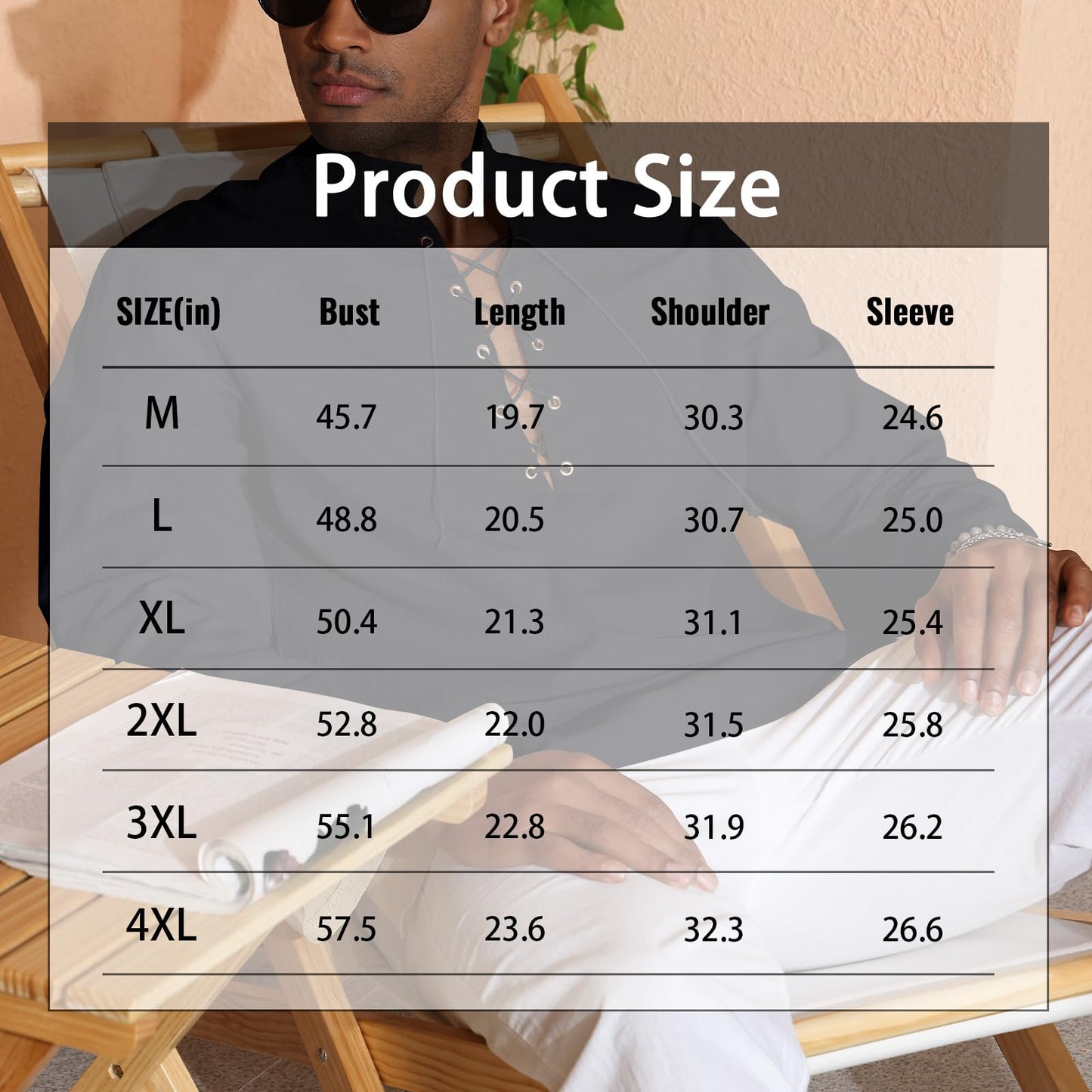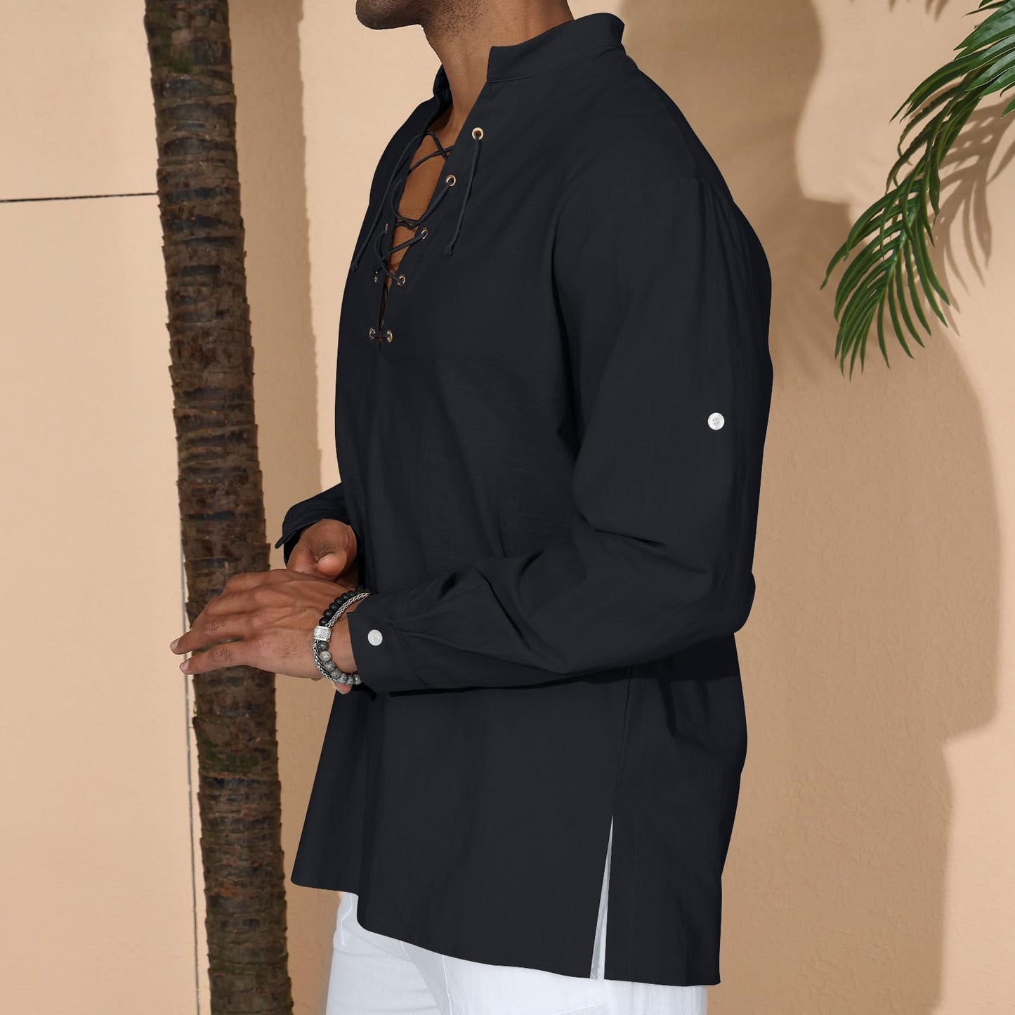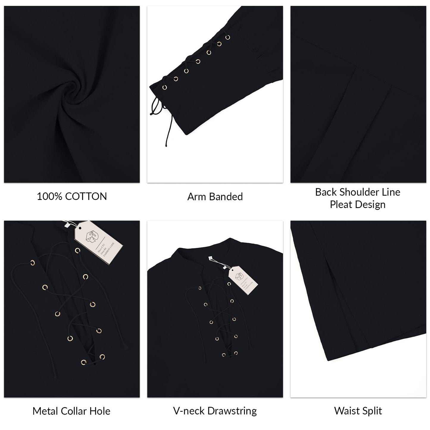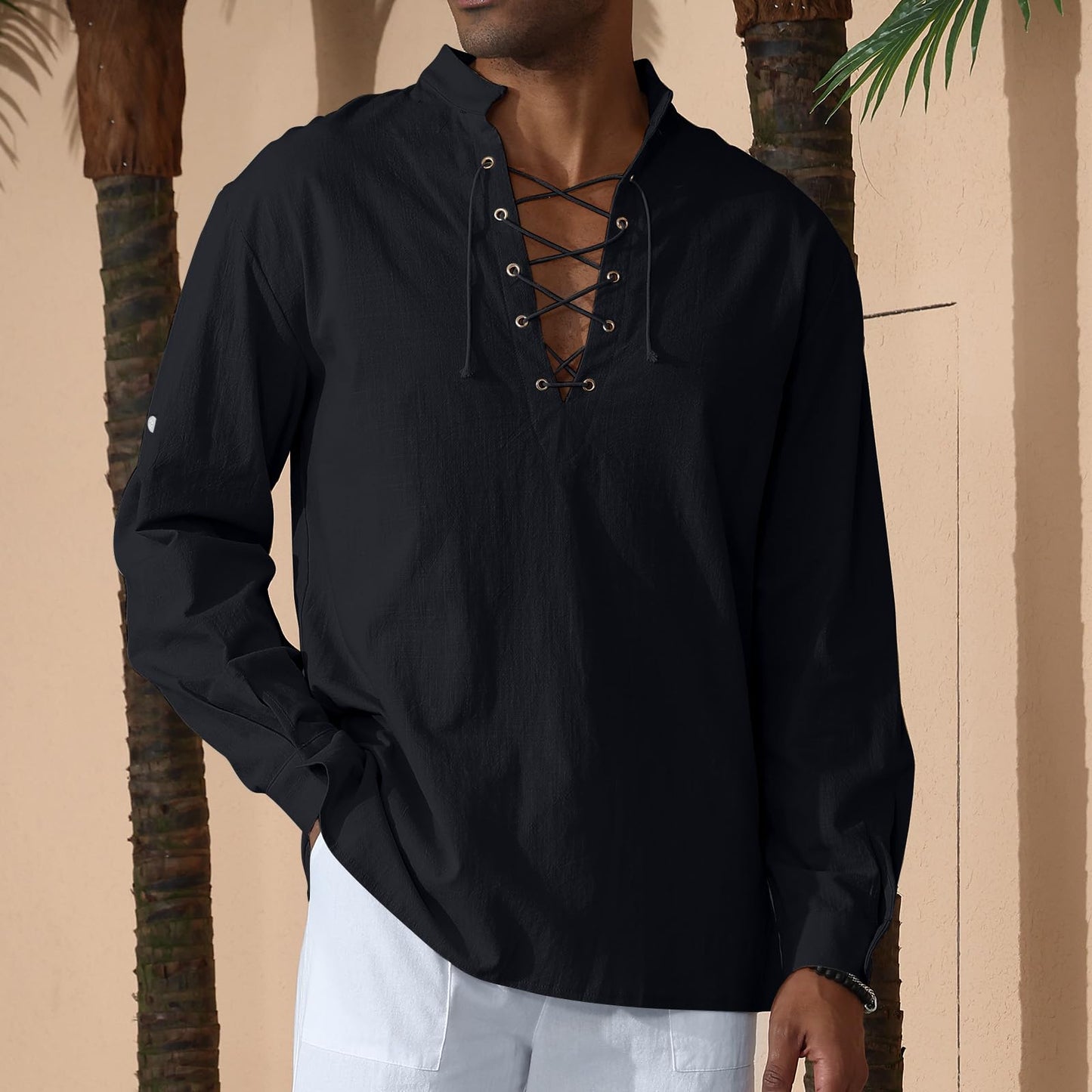 Men's Cotton Linen Shirt Drawstring Arm Banded Tops Medieval Viking Pirate Renaissance Halloween Costume 1X Black