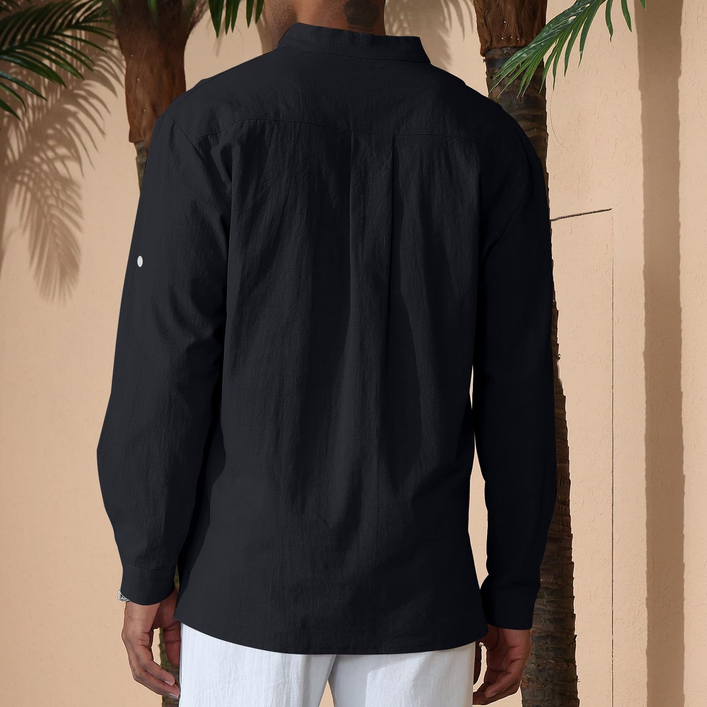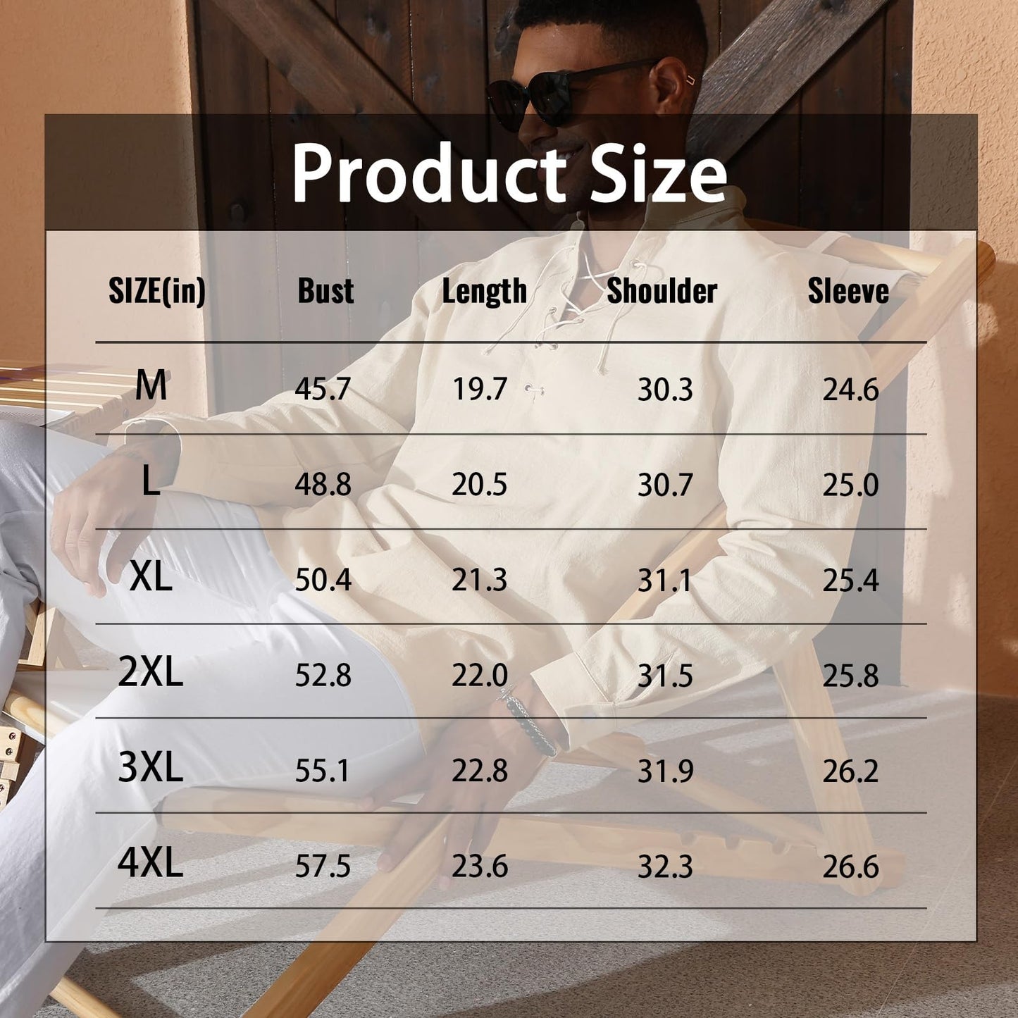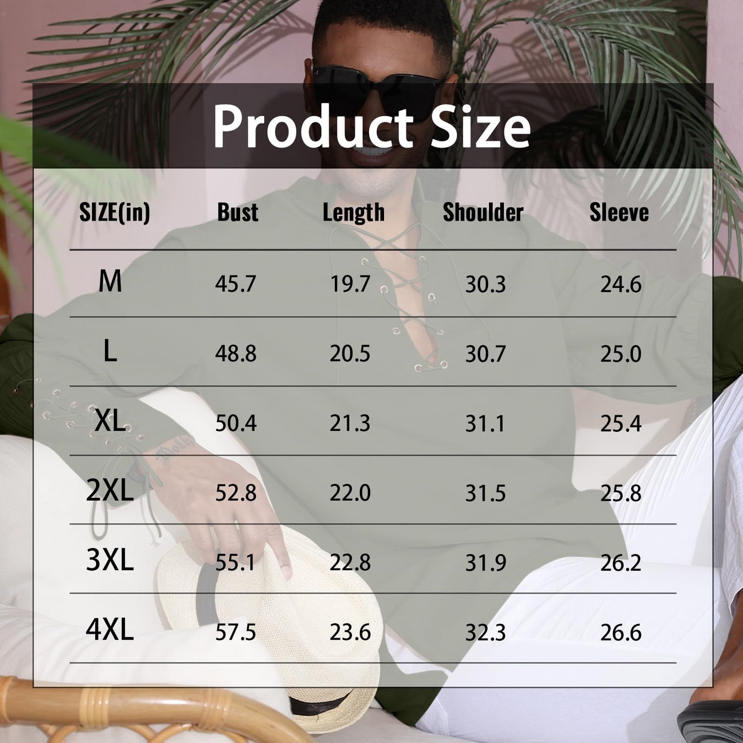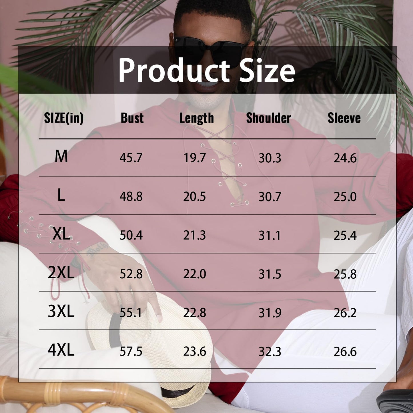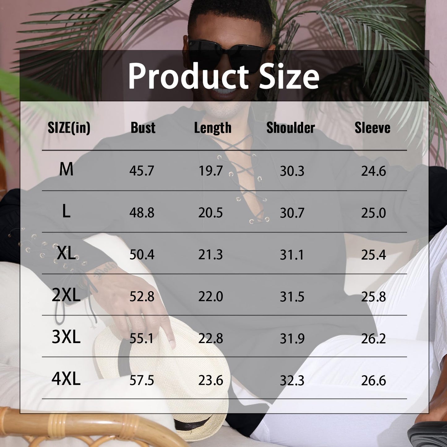 Men's Cotton Linen Shirt Drawstring Arm Banded Tops Medieval Viking Pirate Renaissance Halloween Costume 1X Black