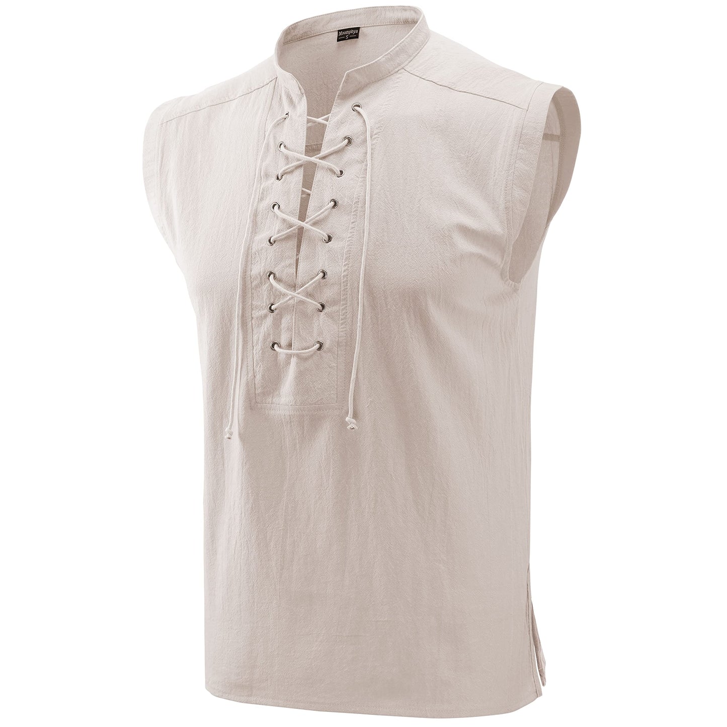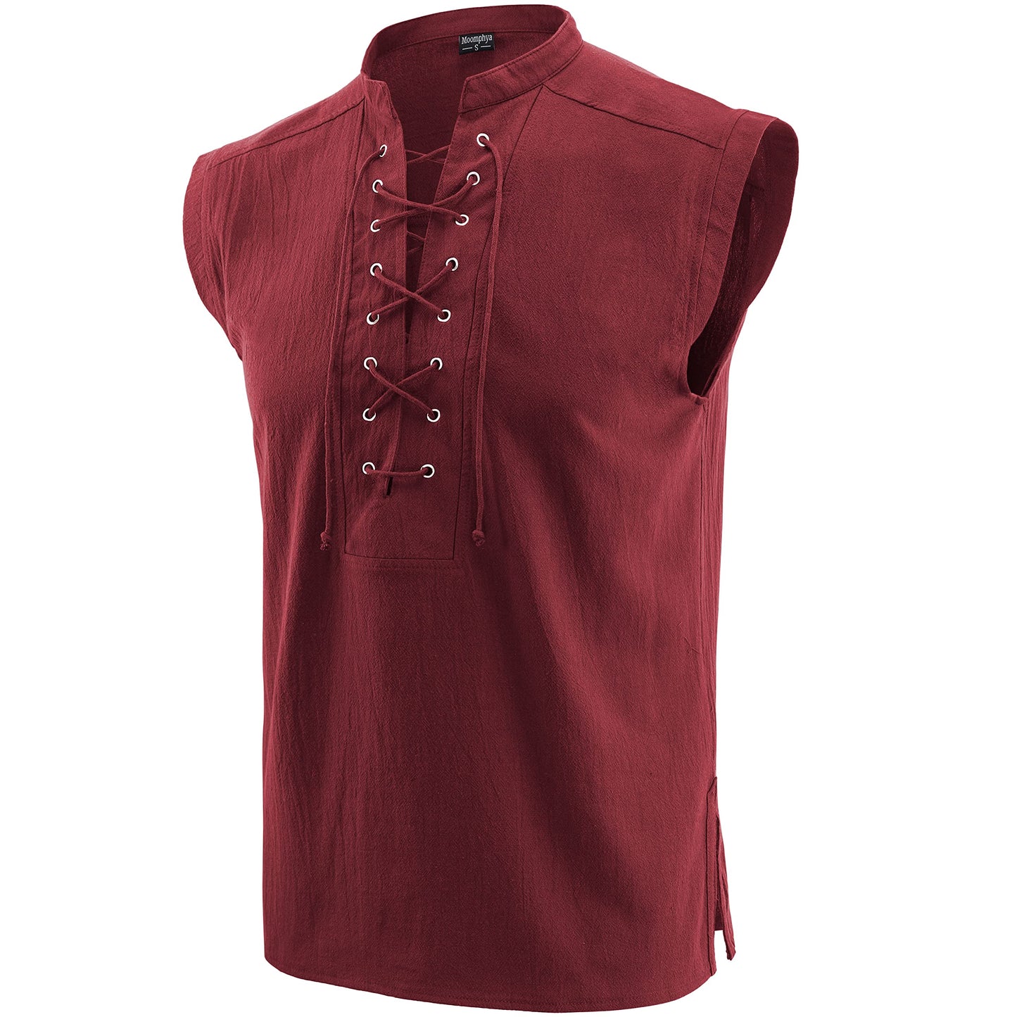 Moomphya Mens Pirate Renaissance Viking Steampunk Medieval Gothic Celtic Sleeveless Shirt Barbarian Top Tee
