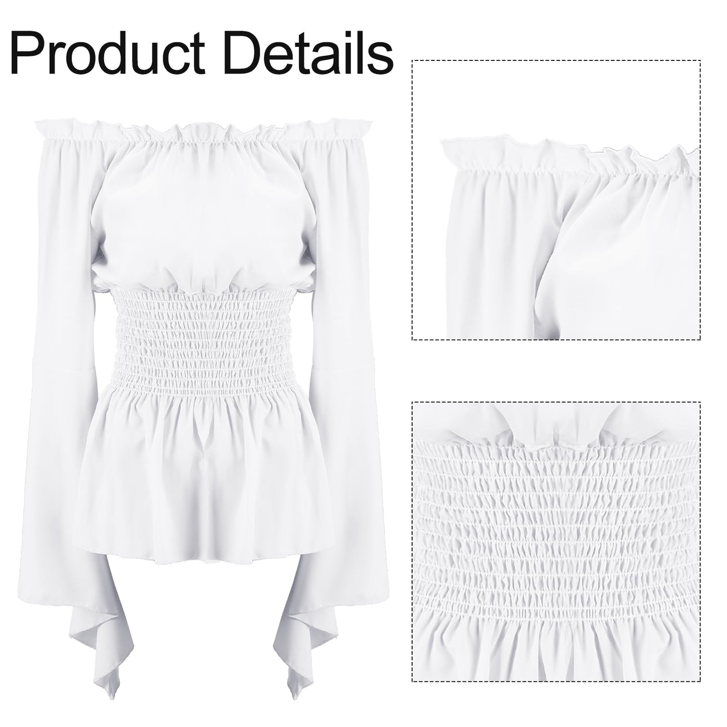 Features: Long time usage: The medieval accessories are practical and delicate, you can use them for a long time, and you can fold them in the box if you don't want to use them, convenient to use. Appropriate gift: The renaissance costumes for women is suitable for most of the people, you can choose as gifts for partners, coworkers, mother, wife and more, they will be happy to get them. Specifications: Material: Renaissance shirt: polyester and spandex Waist belt: PU leather Belt, drawstring pouch and scabbard: leather Color: Renaissance shirt: white Waist belt: black Belt, drawstring pouch and scabbard: black Size: Renaissance shirt: XXL Package includes: 1 x Renaissance shirt 1 x Waist belt 1 x Belt 1 x Drawstring pouch 1 x Scabbard Notes: Winding risk may exist, please keep our product away from children. Manual measurement, please allow slight errors on size. The color may exist a slight difference due to different screen displays.