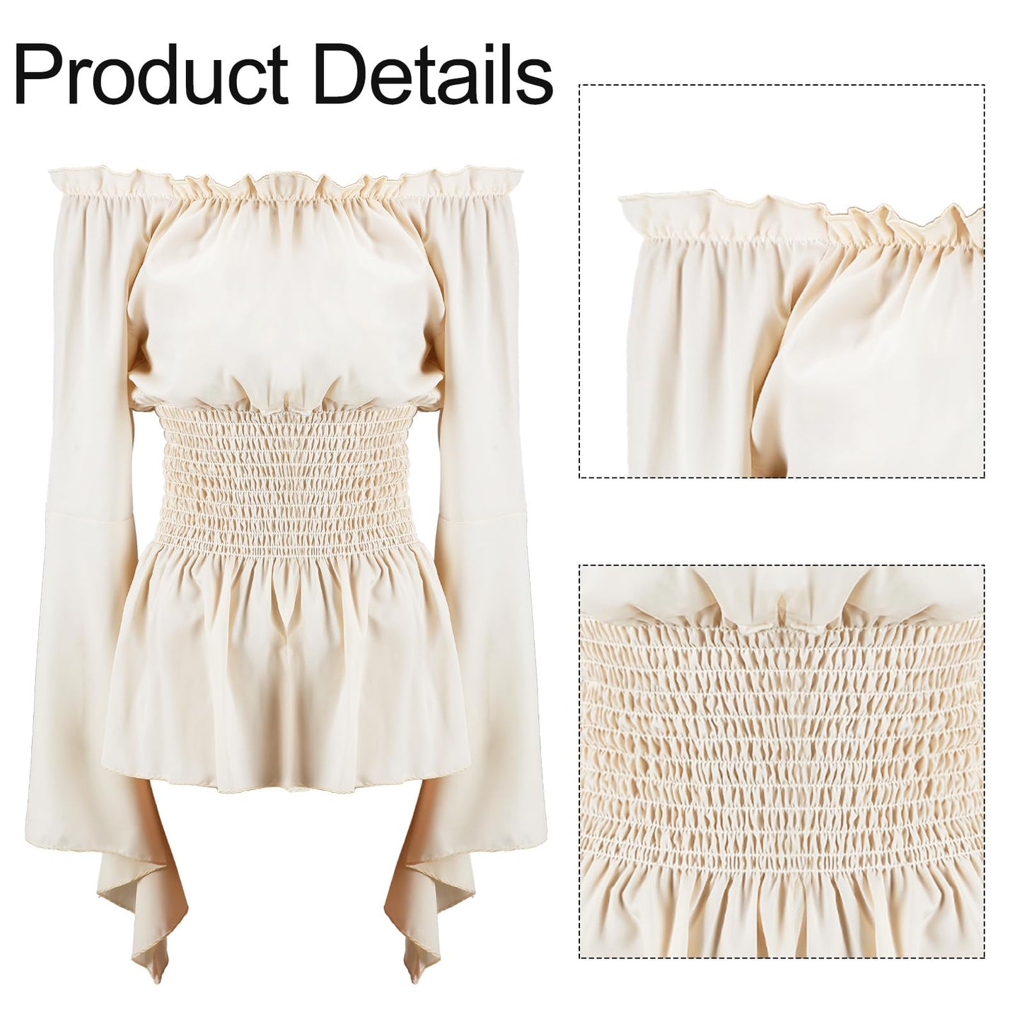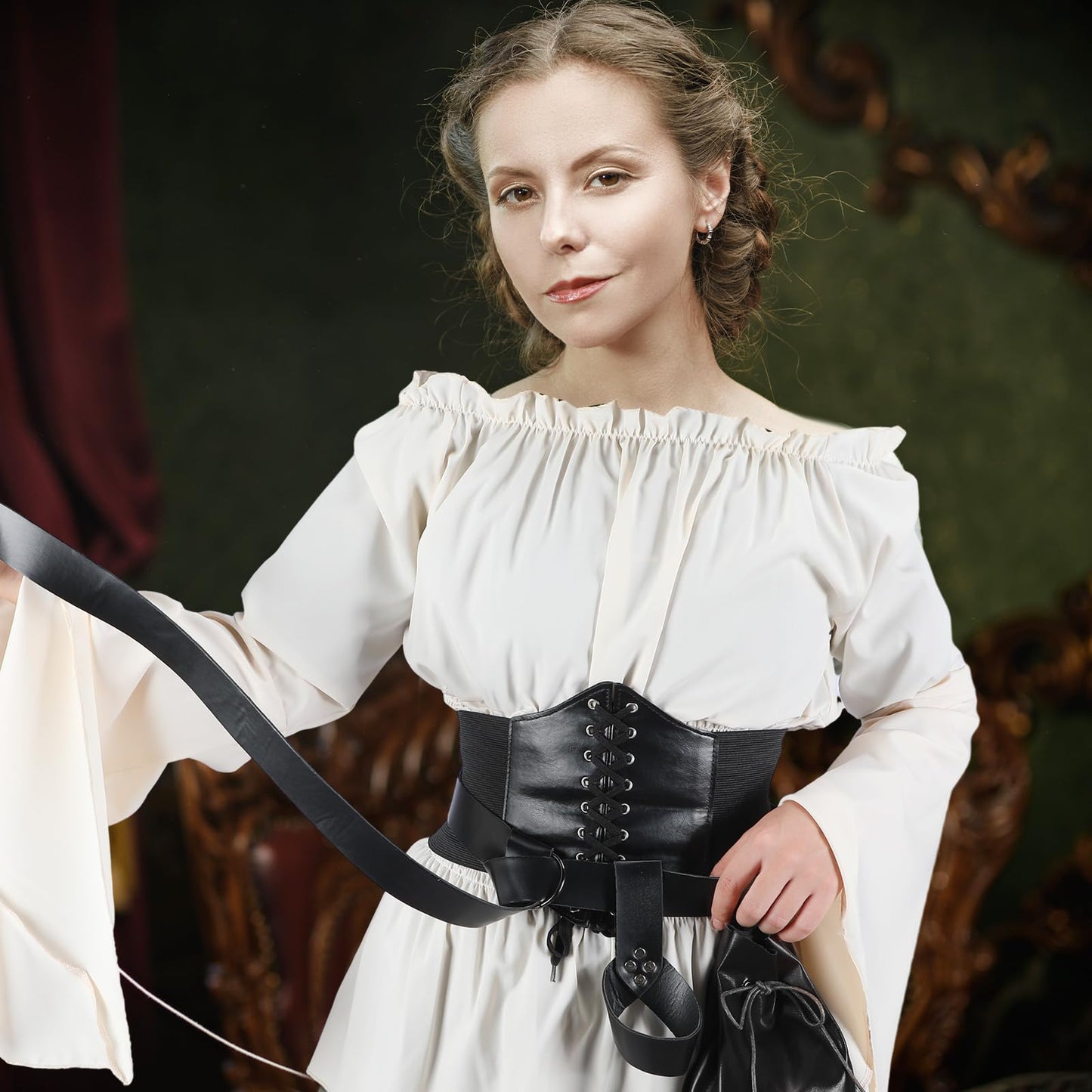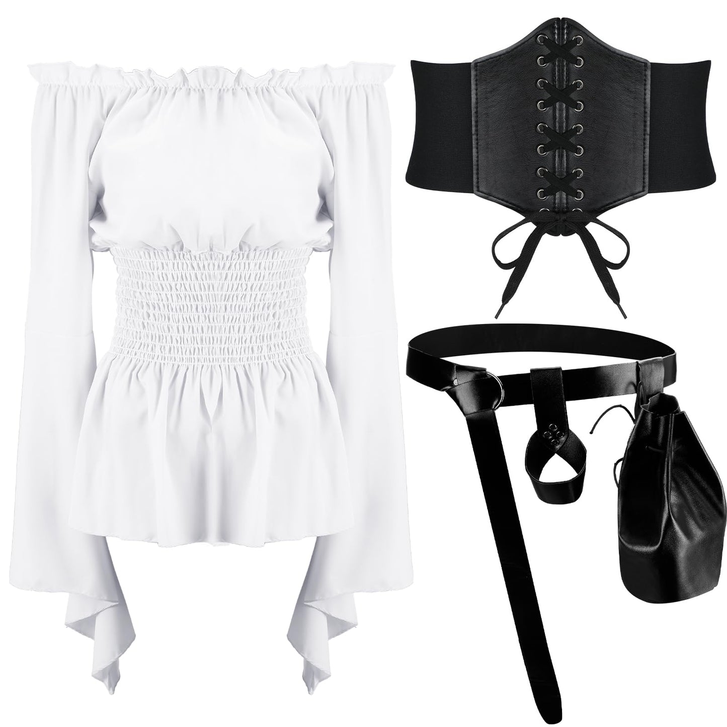 ramede 5 Pcs Halloween Renaissance cosplay Costume Medieval Accessories Victorian off Shoulder Blouse Tops Corset Pouch
