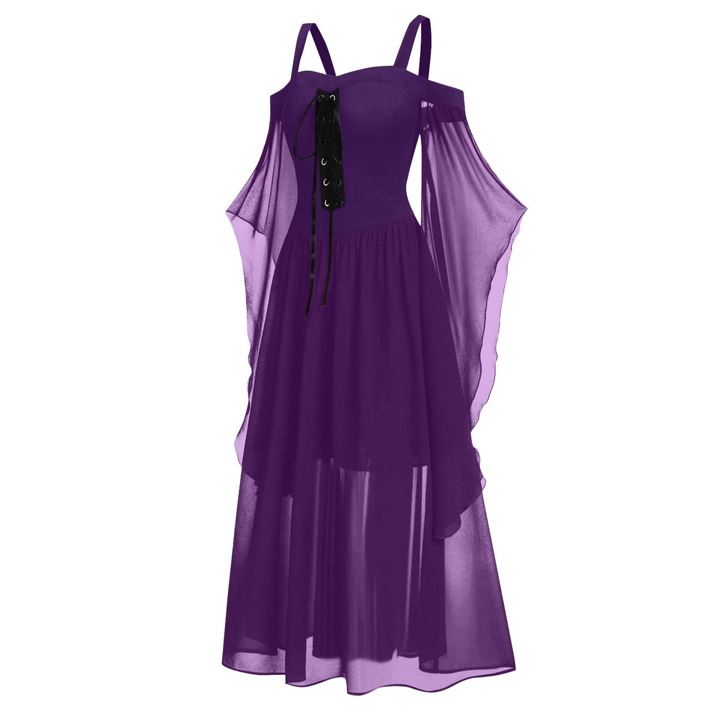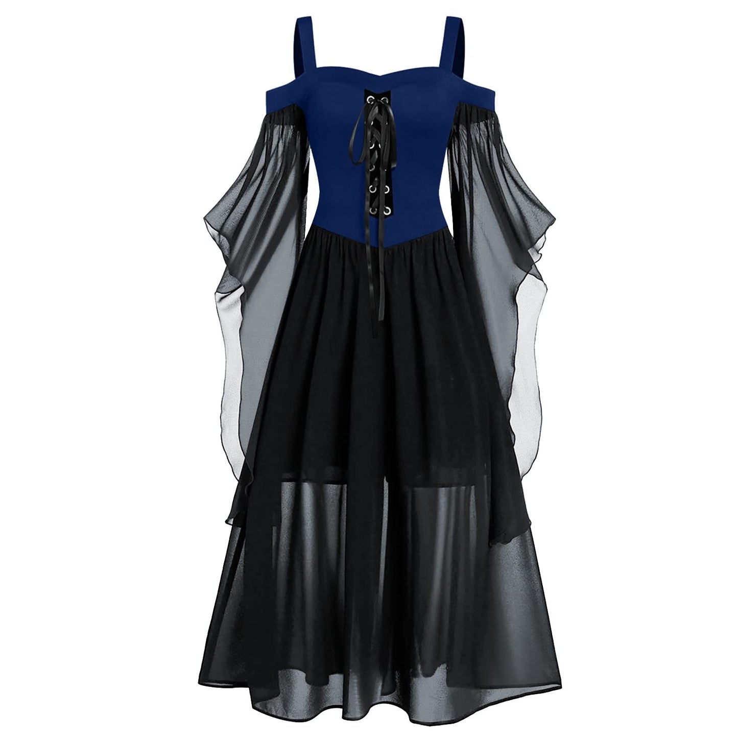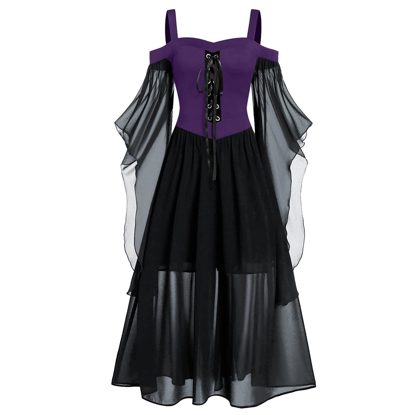 Renaissance Gothic Dress for Women Halloween Costume Off Shoulder Lace Trumpet Sleeve Dresses Medieval Steampunk Dress