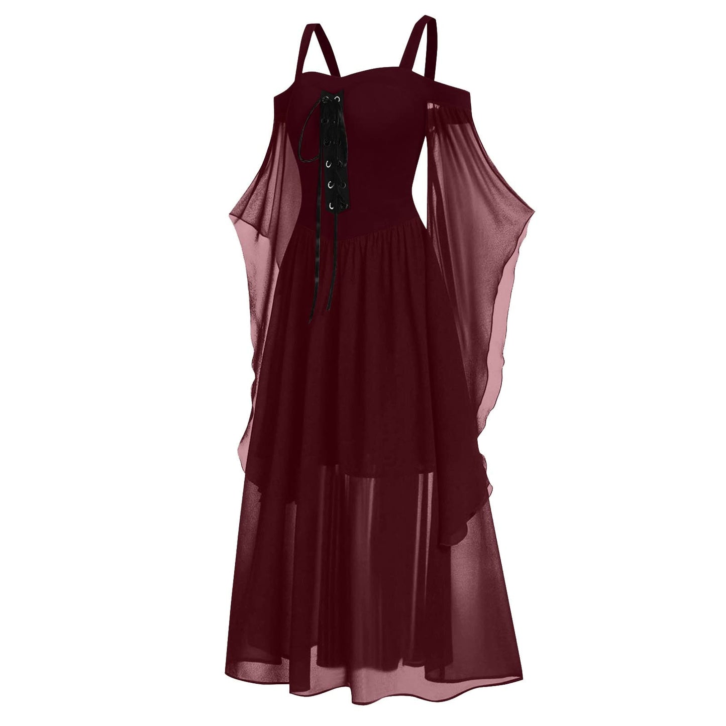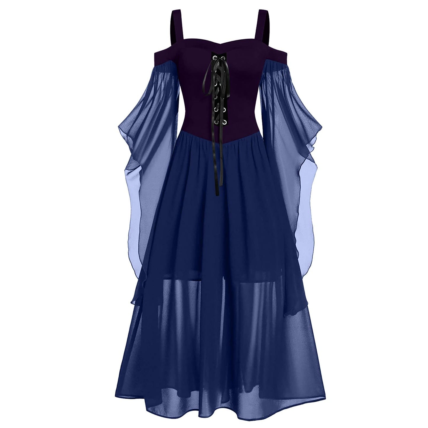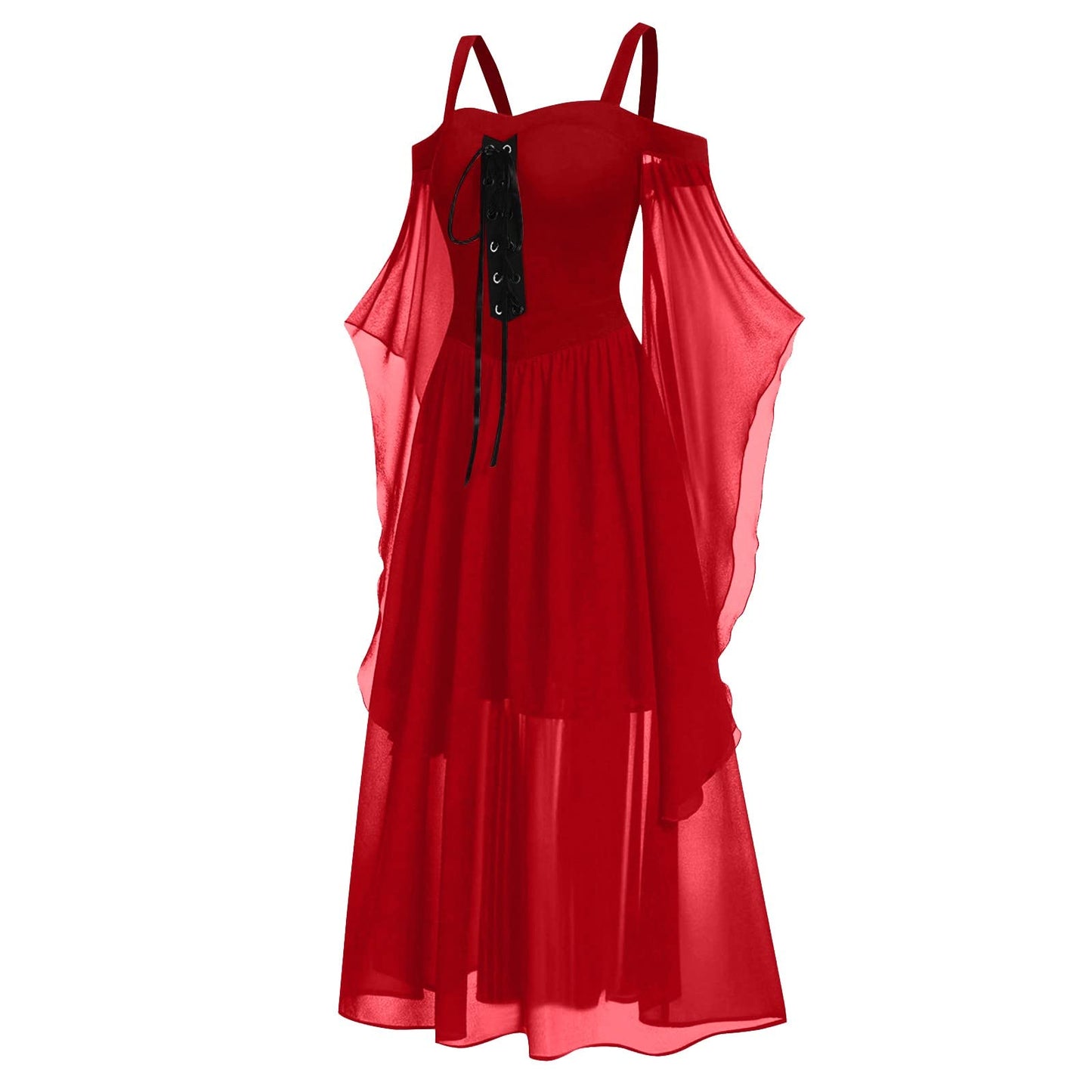 Renaissance Gothic Dress for Women Halloween Costume Off Shoulder Lace Trumpet Sleeve Dresses Medieval Steampunk Dress