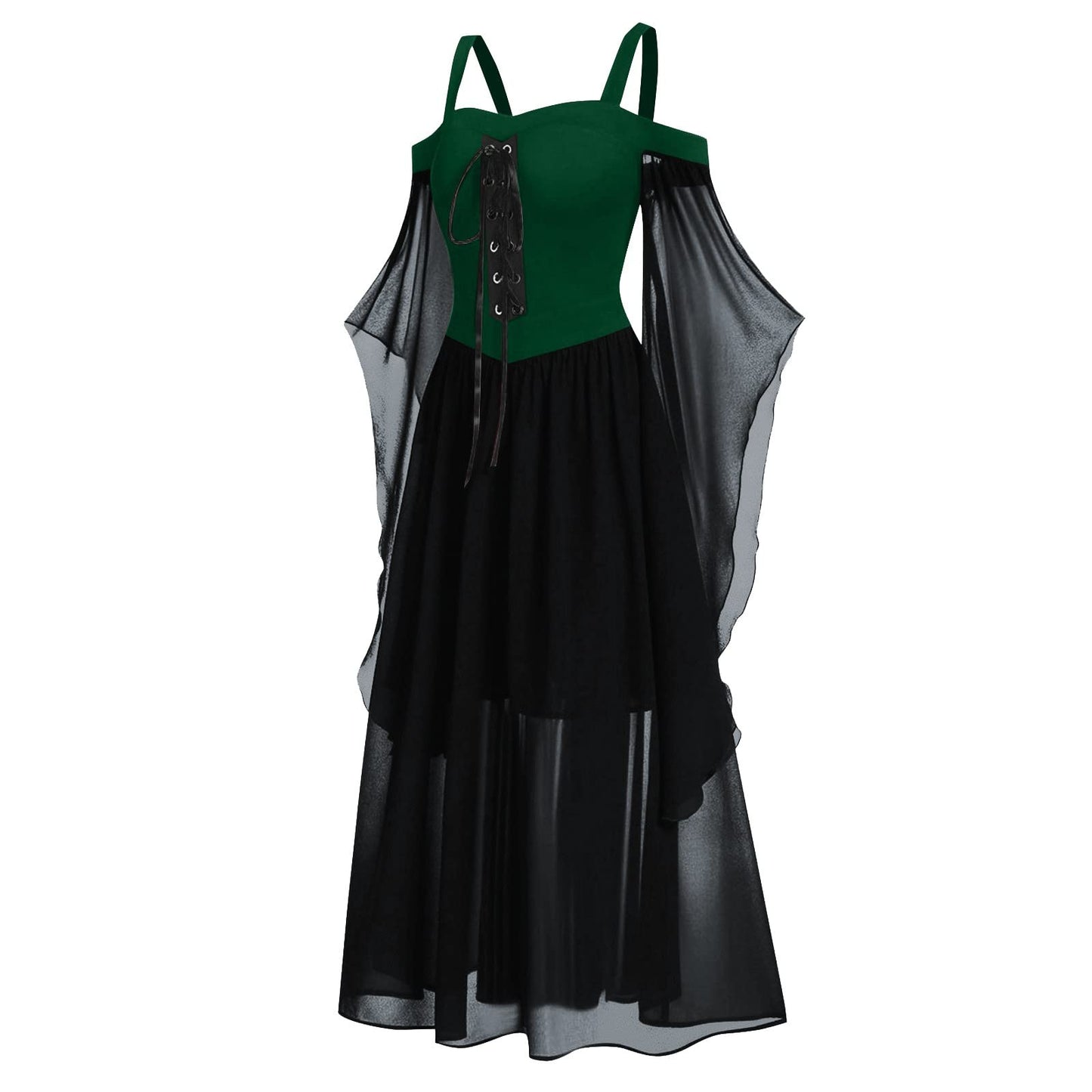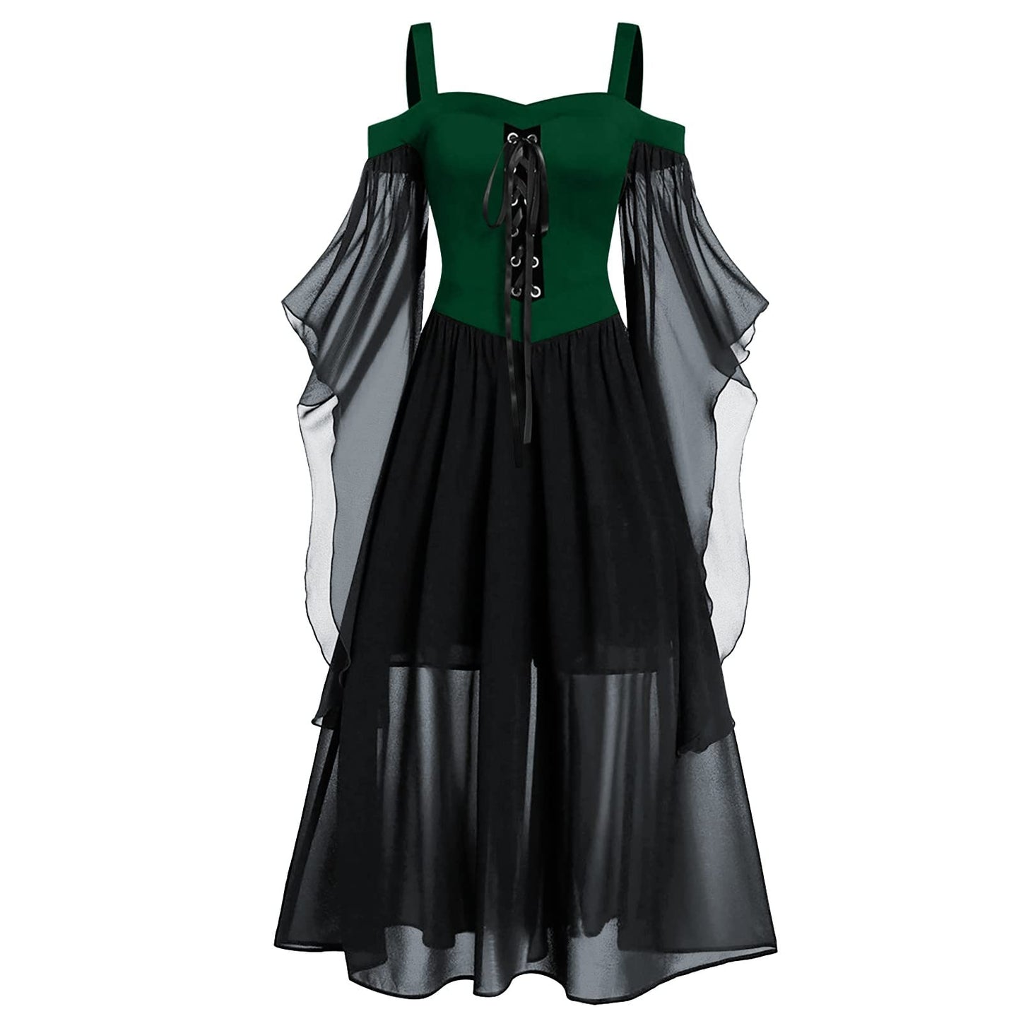 Renaissance Gothic Dress for Women Halloween Costume Off Shoulder Lace Trumpet Sleeve Dresses Medieval Steampunk Dress 03-dark Green Vintage Dress Small