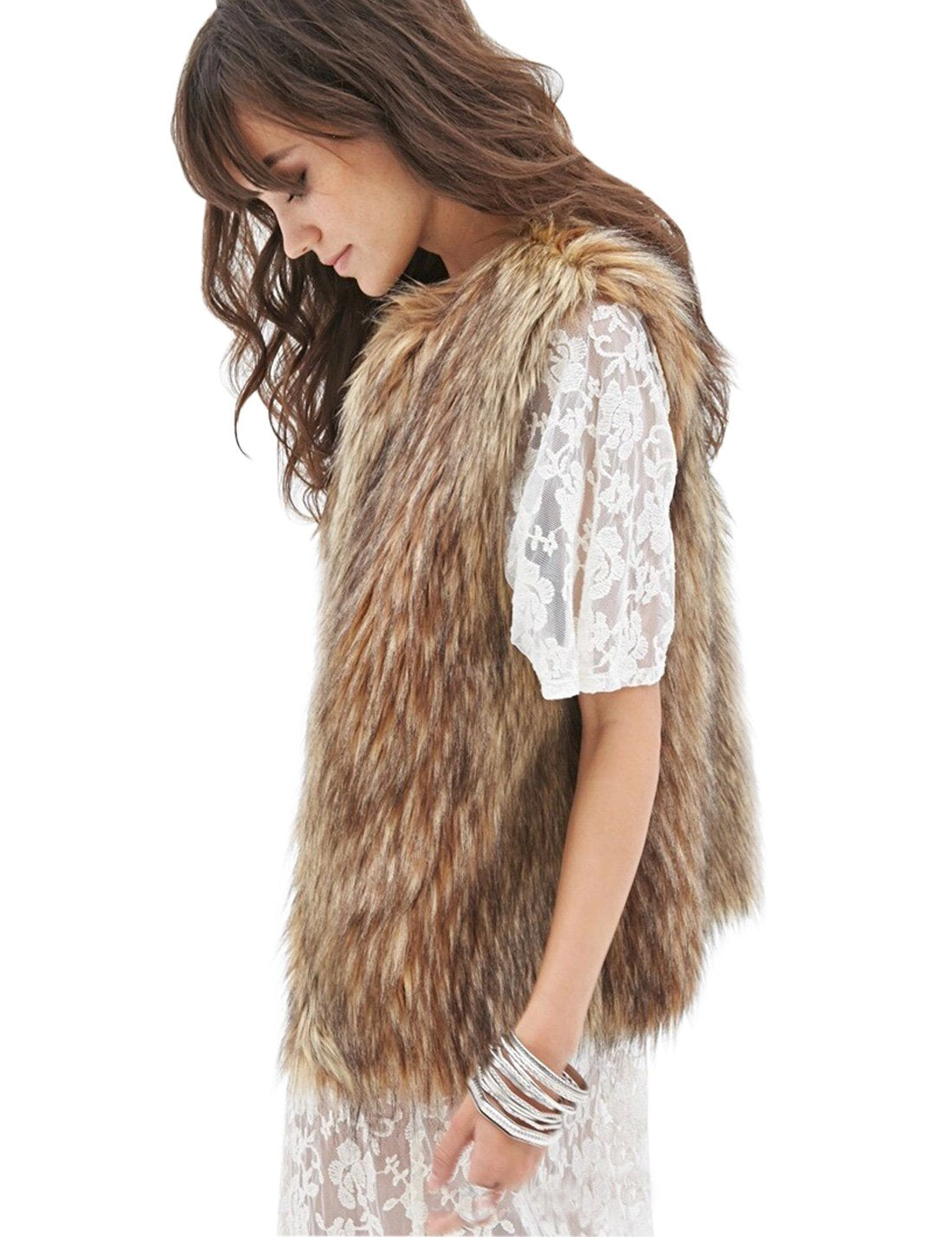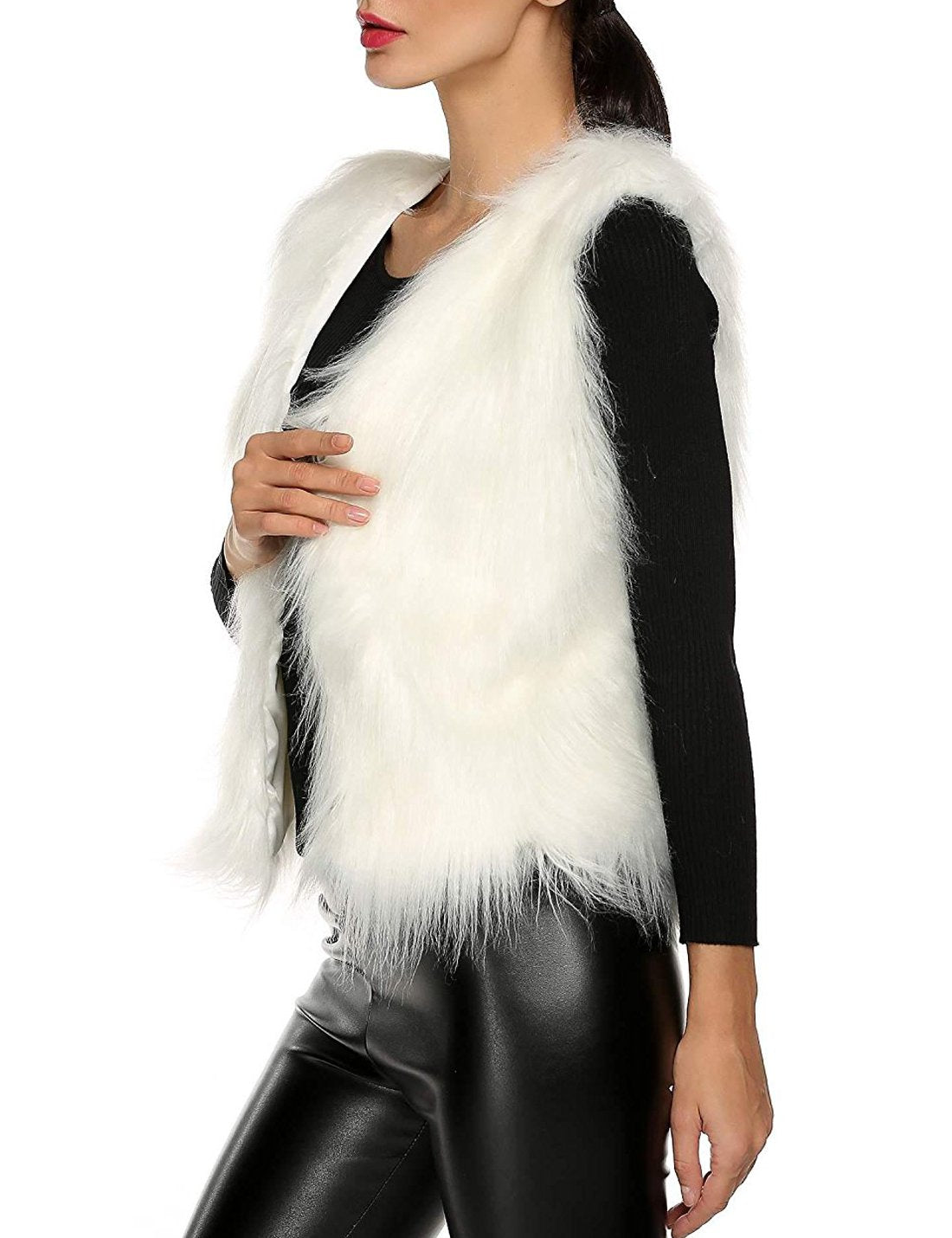 Tanming Women's Fashion Autumn And Winter Warm Short Faux Fur Vests