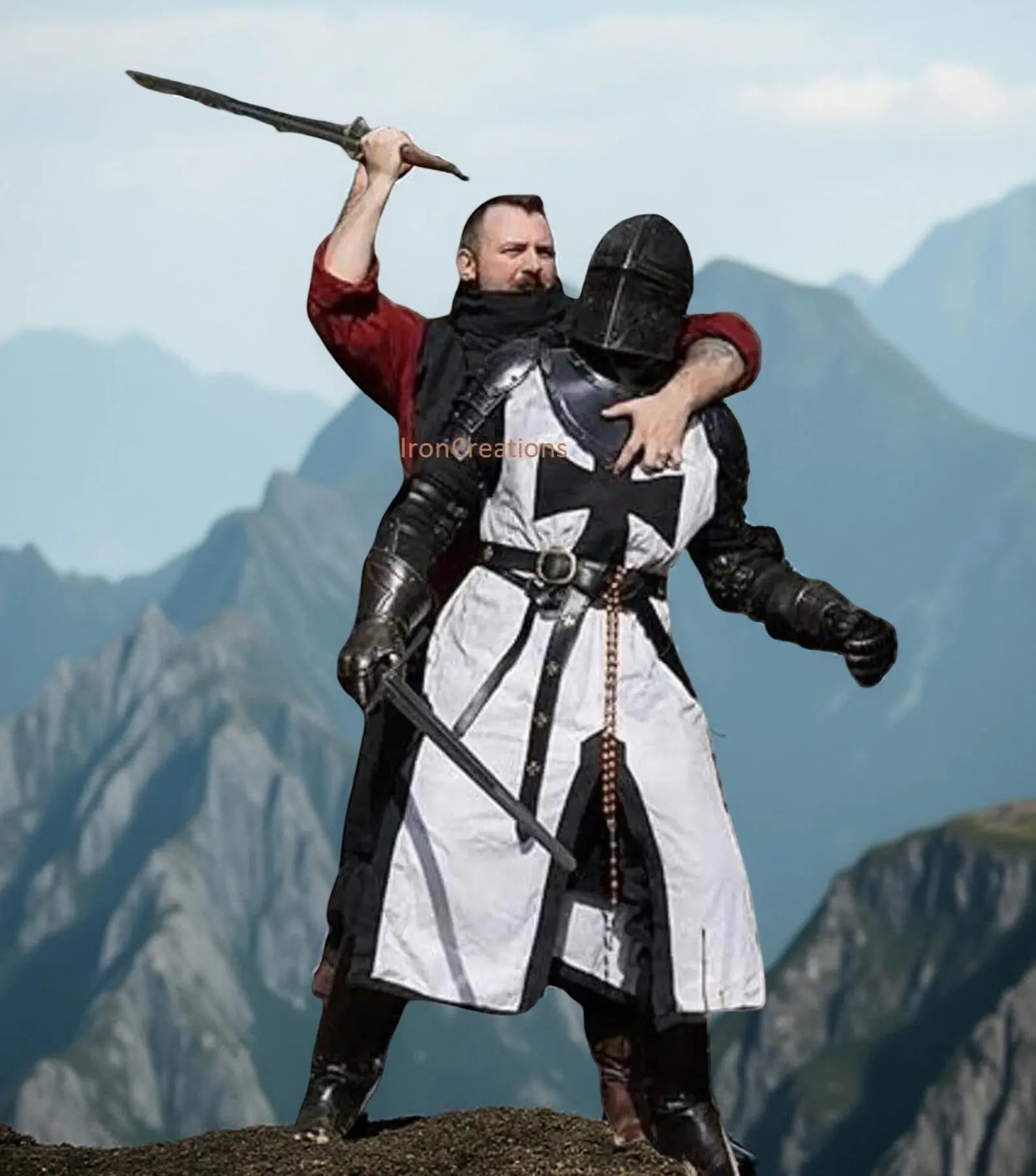 Step into the Medieval Black Templar Armor Cross Knight Armor with this awesome full body armor! This handmade steel suit looks just like the armor worn by Templar knights. It’s perfect for historical reenactments, cosplay, and LARP (Live Action Role Play). You’ll truly feel like you’ve traveled back in time!
